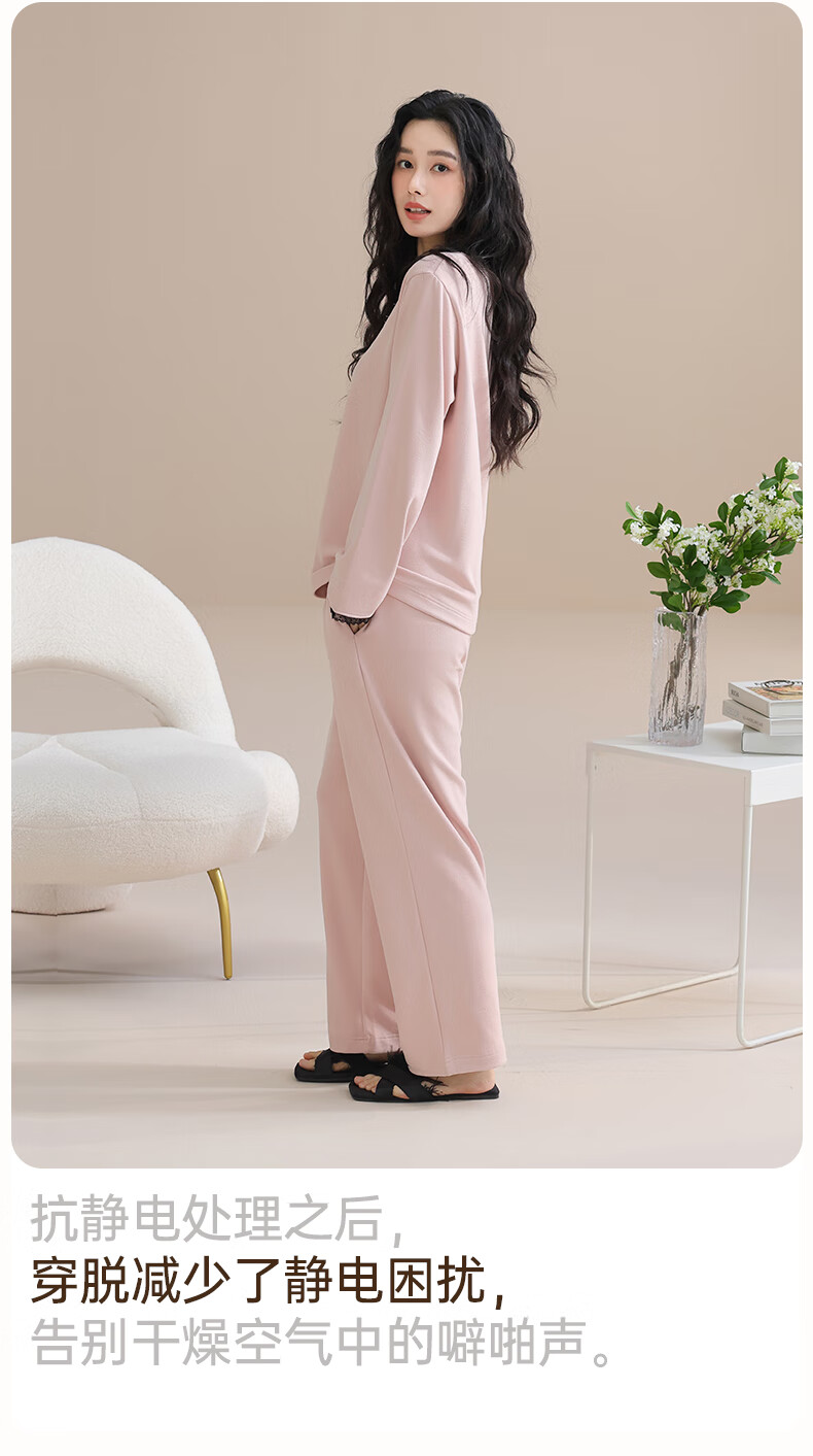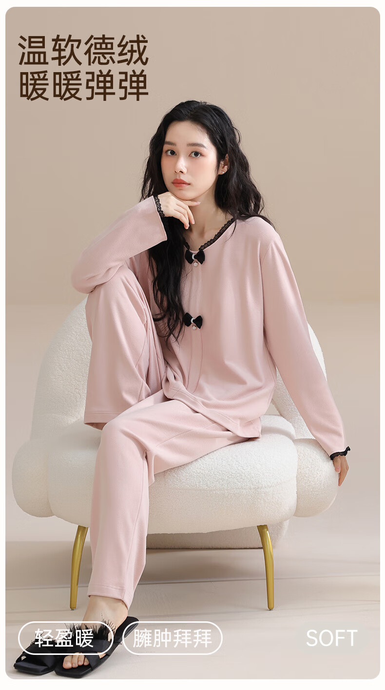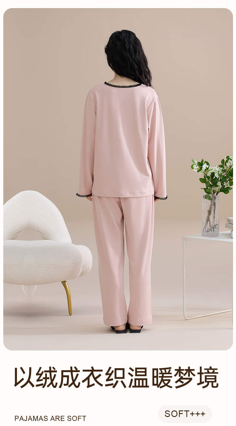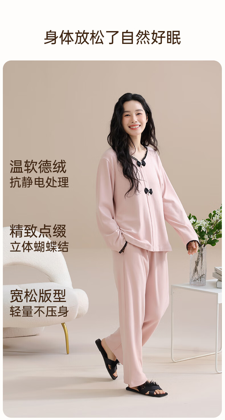 玛伦萨【抗静电】德绒睡衣女秋冬季薄绒保暖2025新款可外穿女士家居服 樱花粉 M