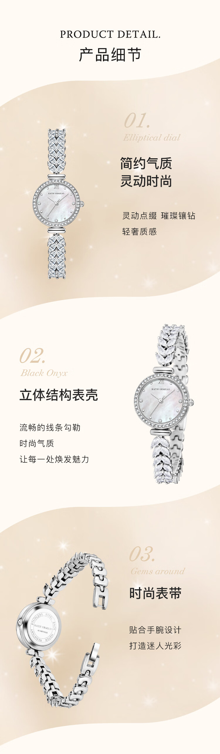 KATIE ERMILIO闪耀气质轻奢满钻腕表气质精致鱼尾手链手表七夕情人节礼物送女友