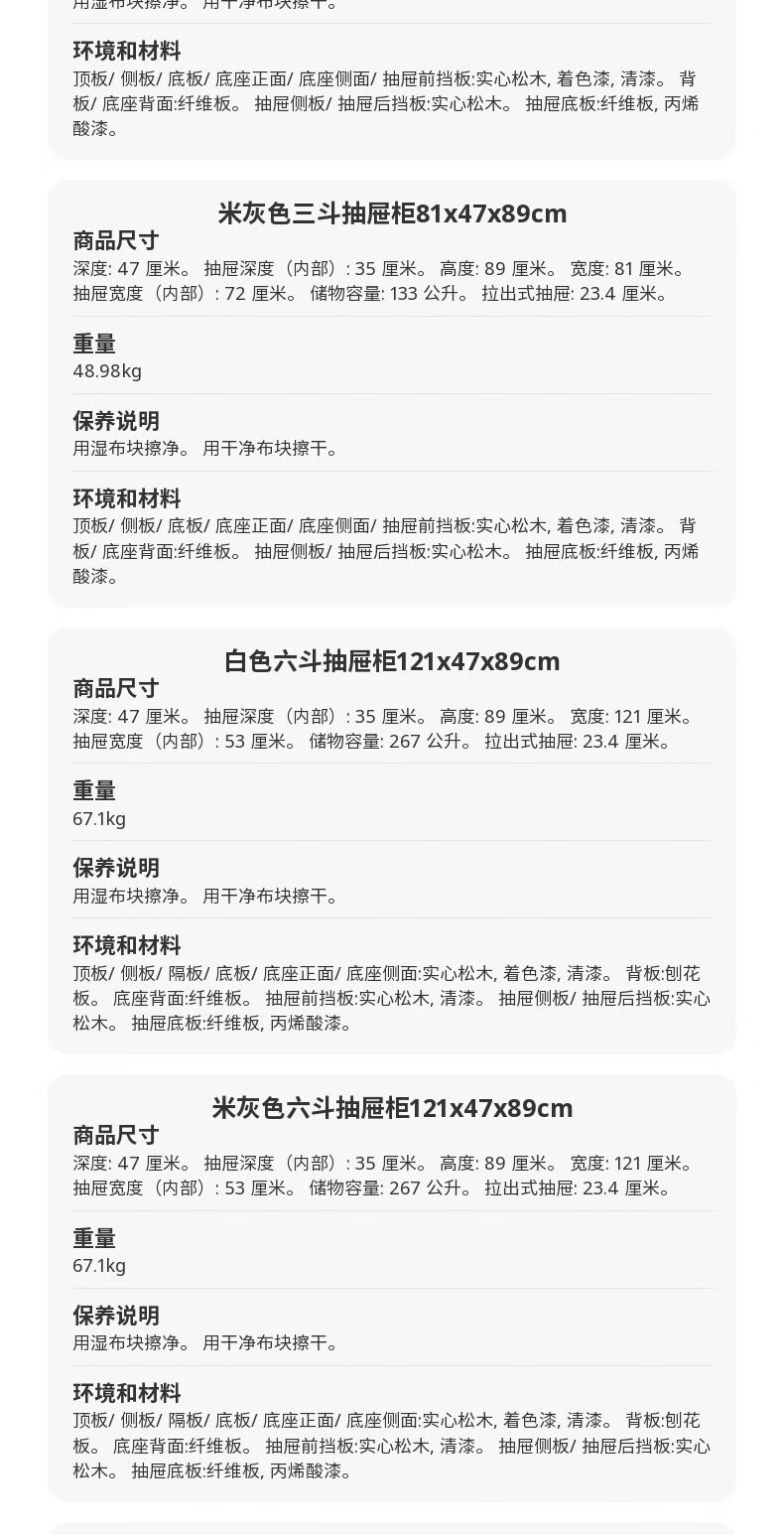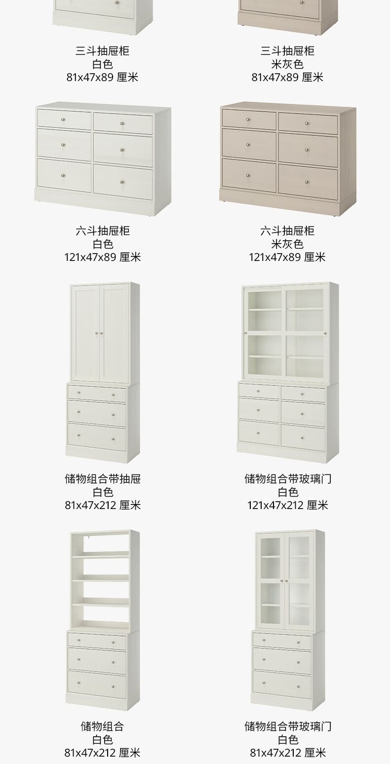 宜家(IKEA)【新品】HAVSTA海思塔三斗抽屉柜储物柜床头柜收纳柜 【新品】六斗抽屉柜米灰色121x47x89cm