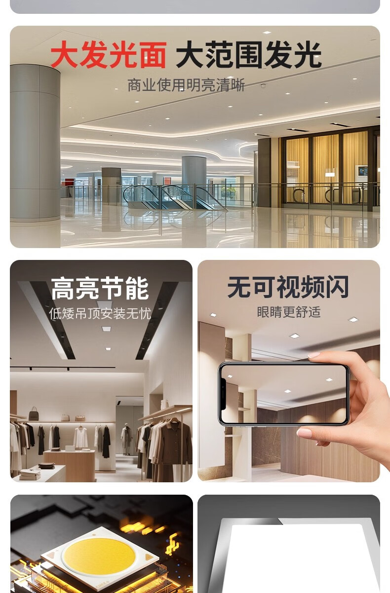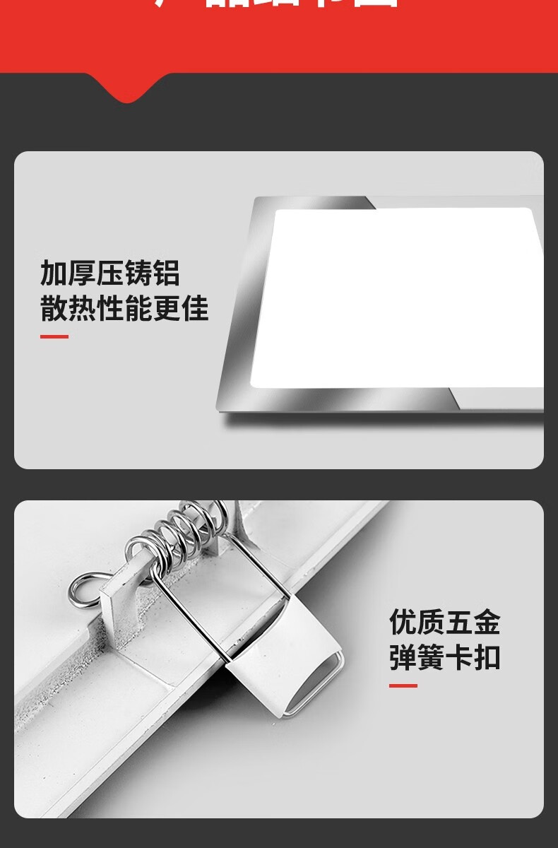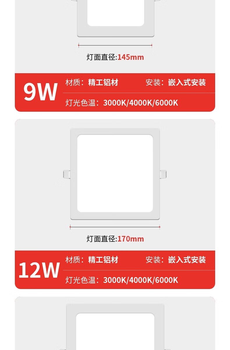 拉伯塔LED正方形筒灯嵌入式客厅18W24瓦超薄四方吊顶天花孔灯厨卫面板灯 12W【16.8*16.8开孔15-16cm】 暖光