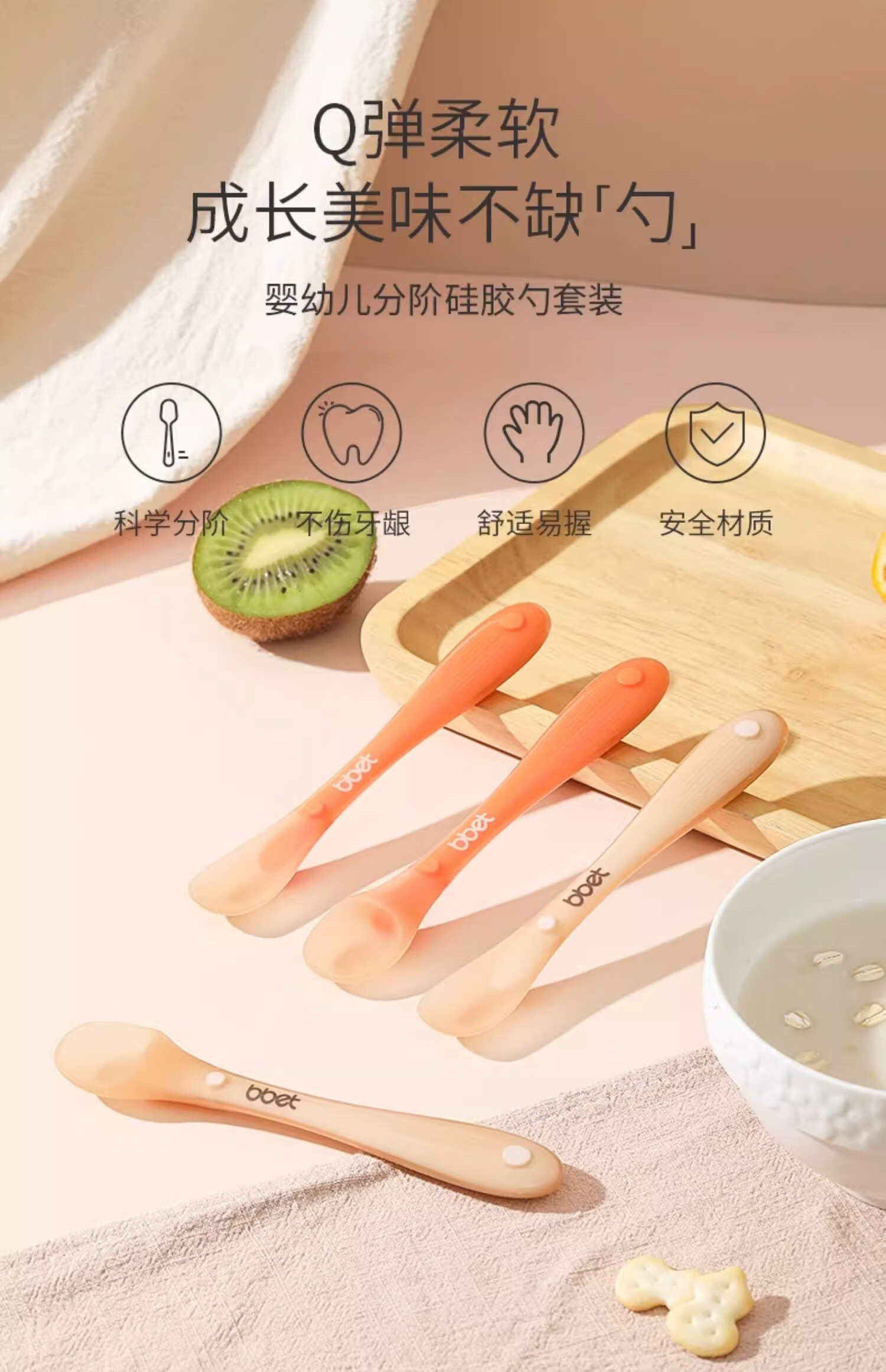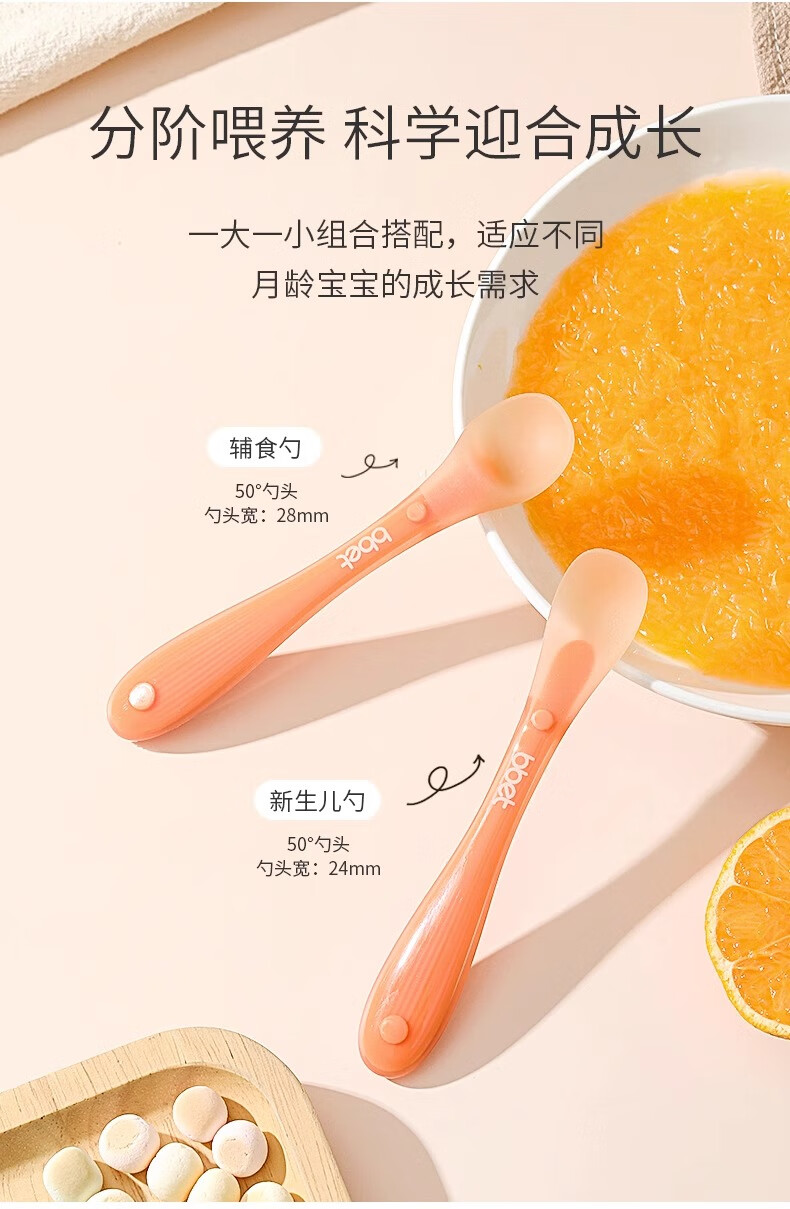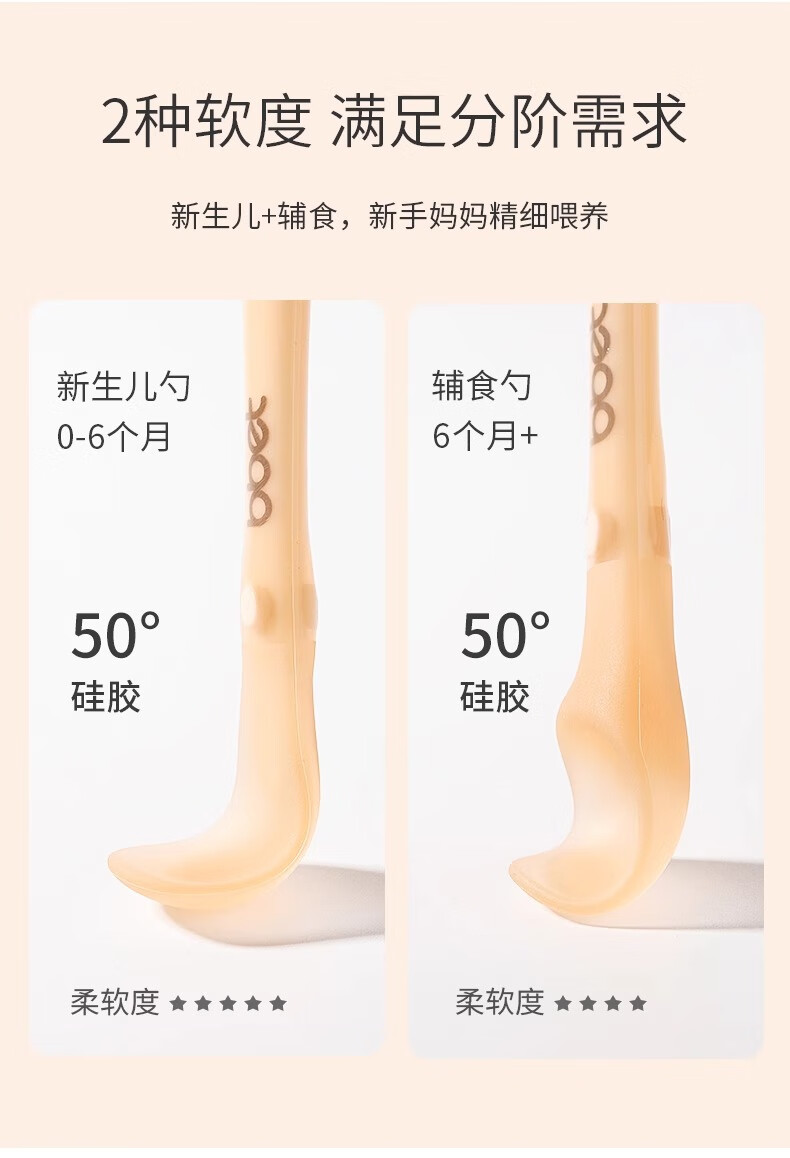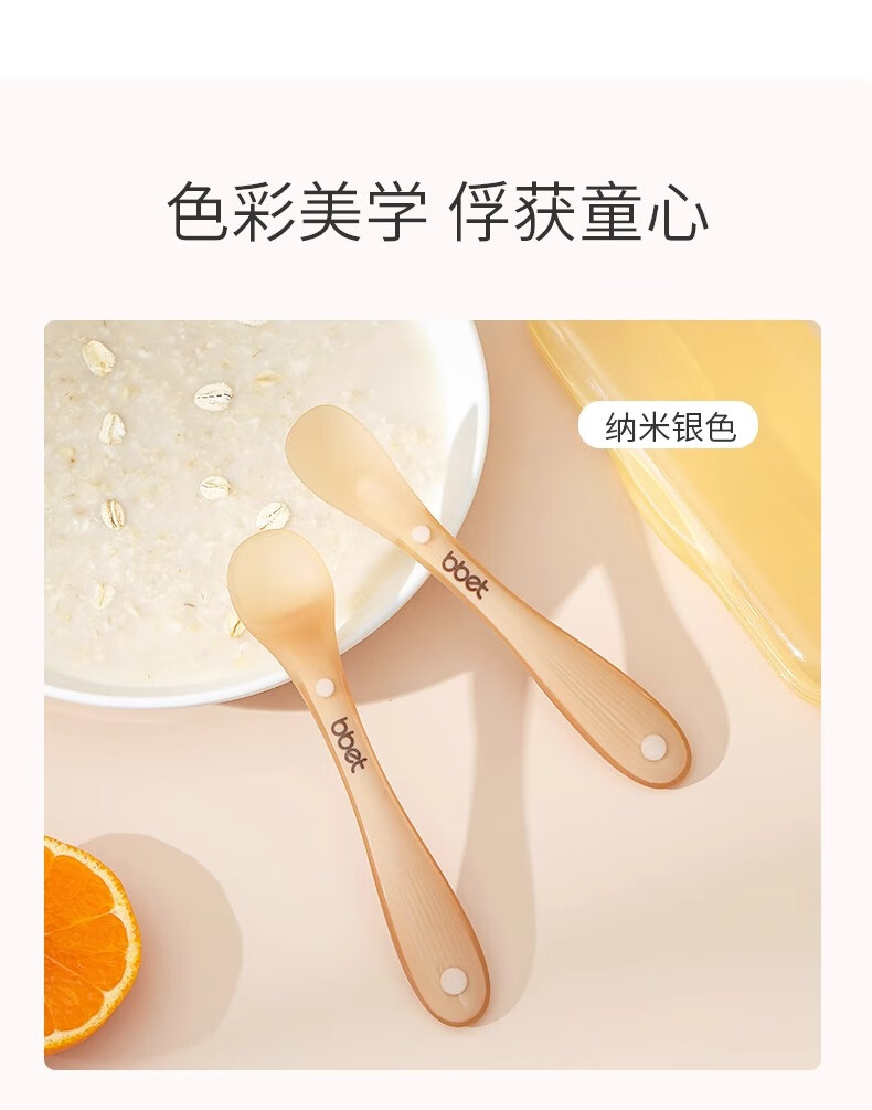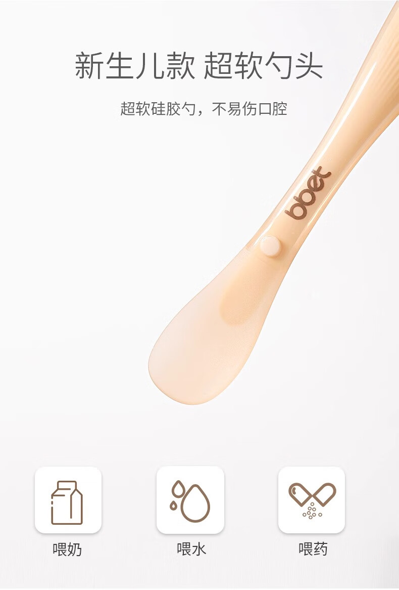 BBET新生儿硅胶软勺宝宝辅食勺子辅食勺+新生儿勺组合2支装 纳米银色