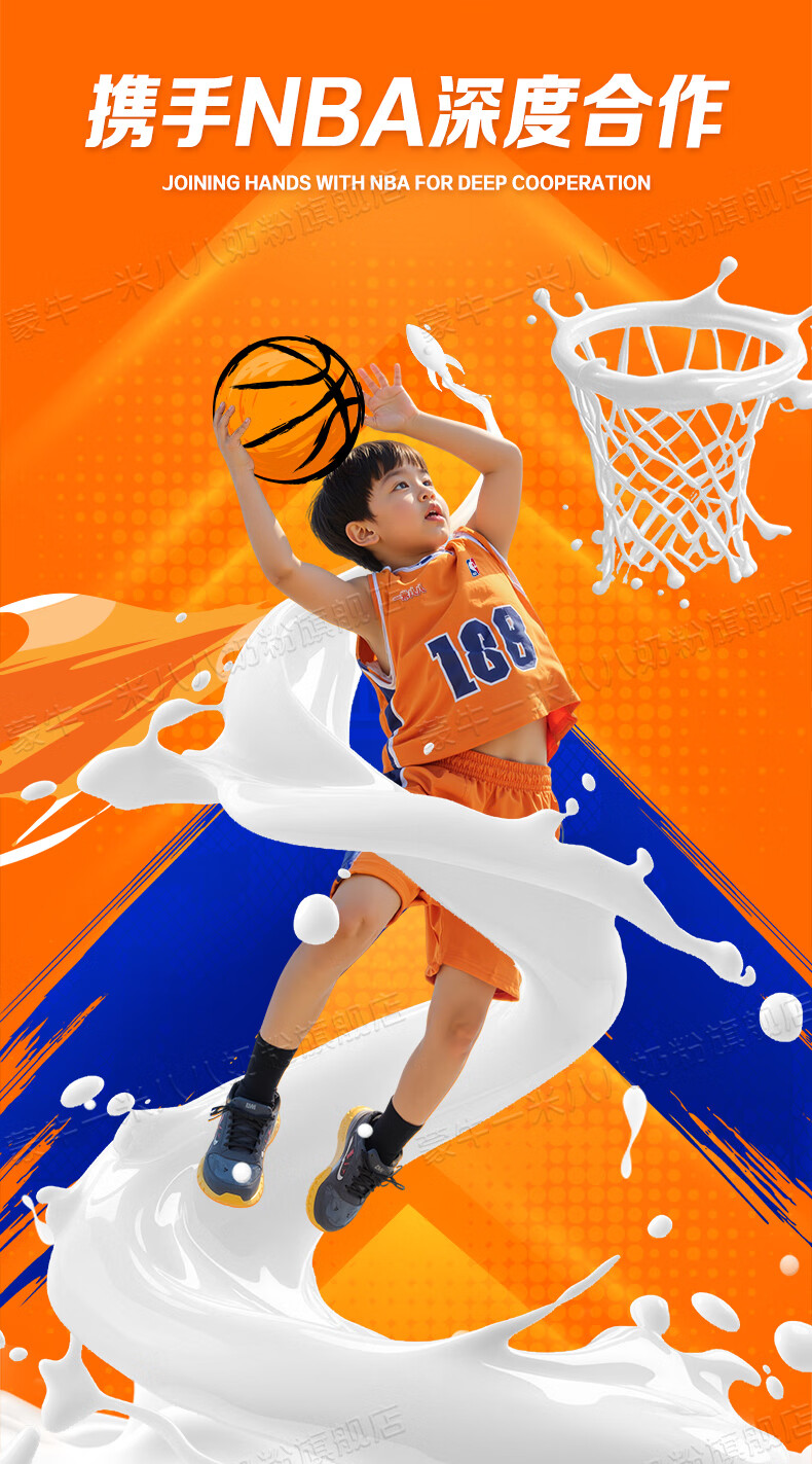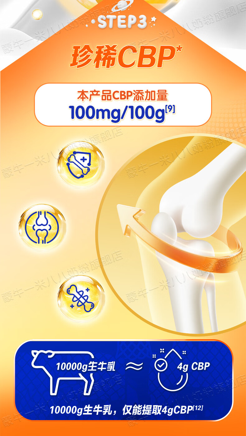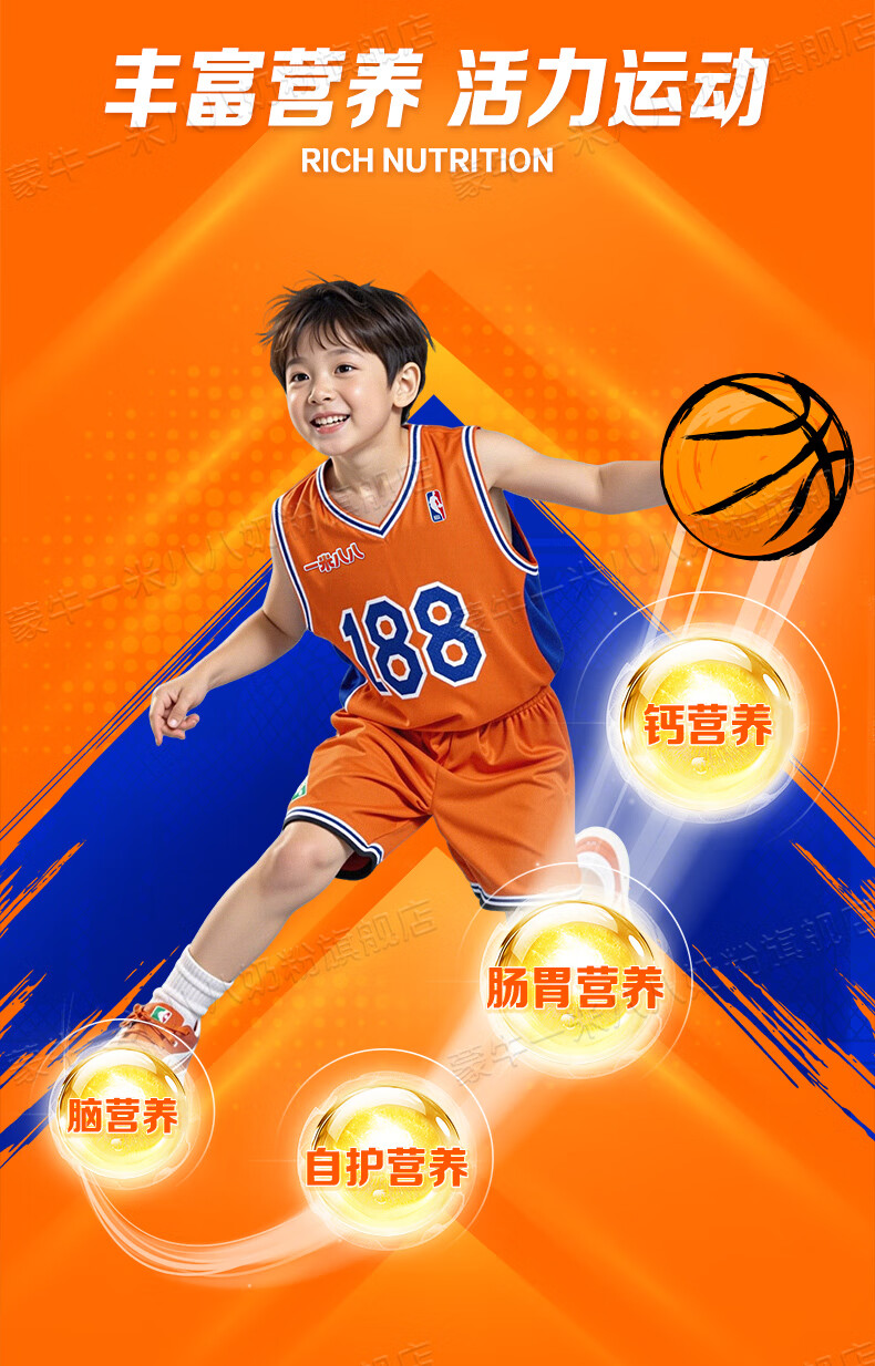 蒙牛一米八八【NBA联名】儿童成长奶粉CBP赖氨酸高钙3-15岁800g*2罐