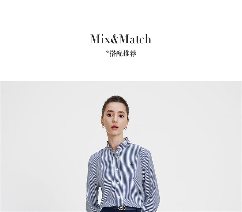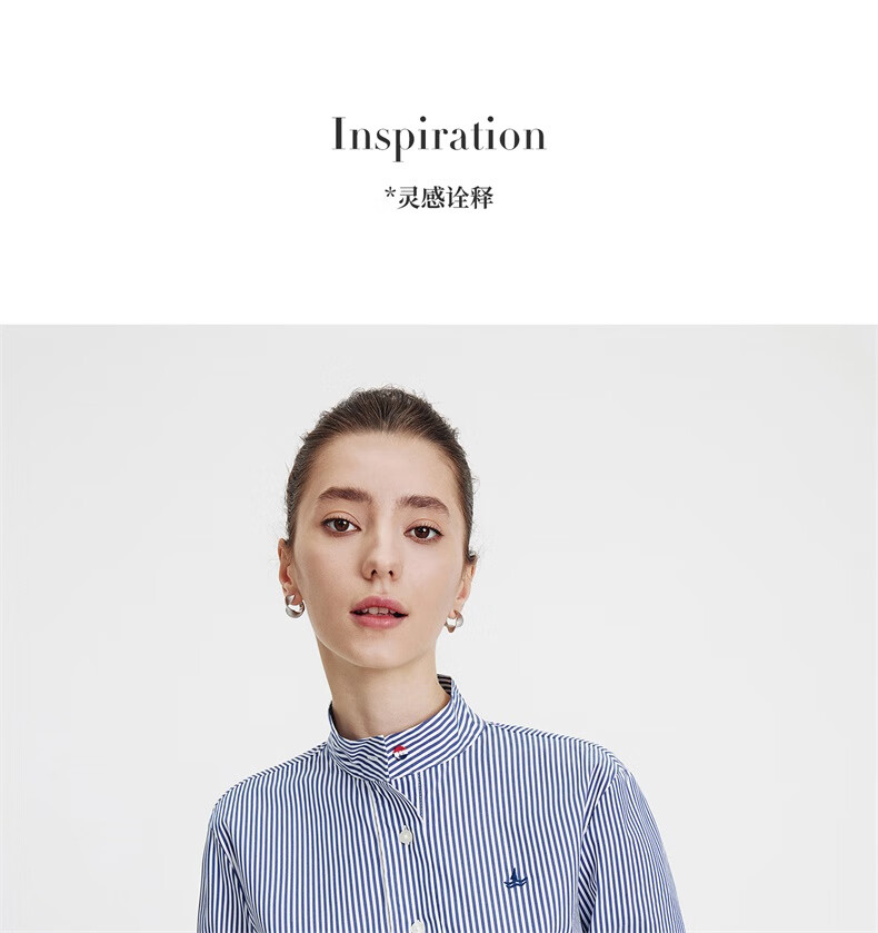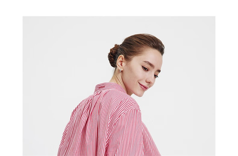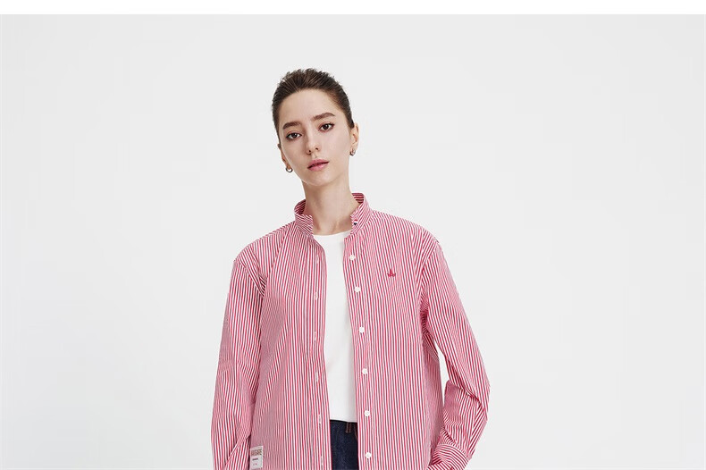 Navigare意大利小帆船女士长袖衬衫宽松版立领衬衣2333043502 红/白 L