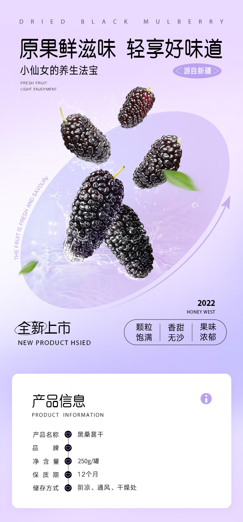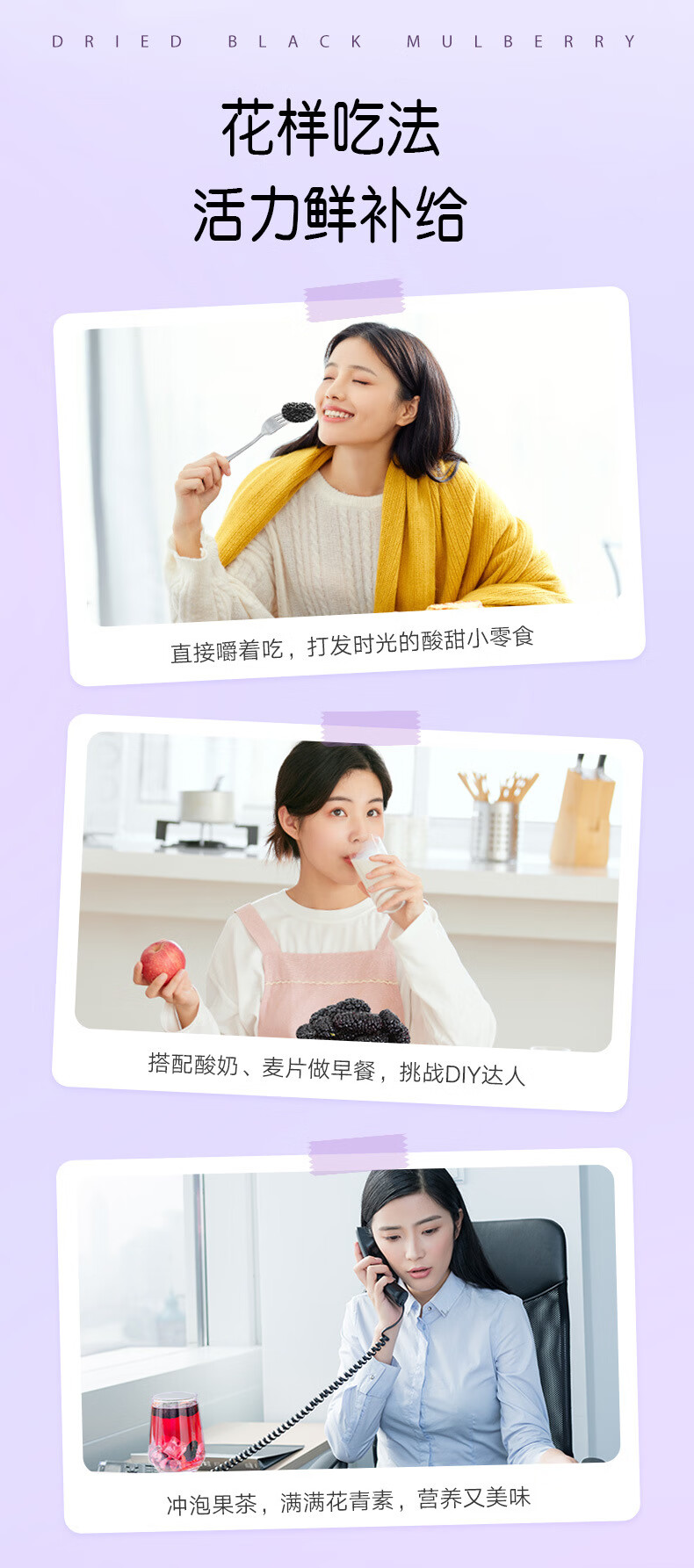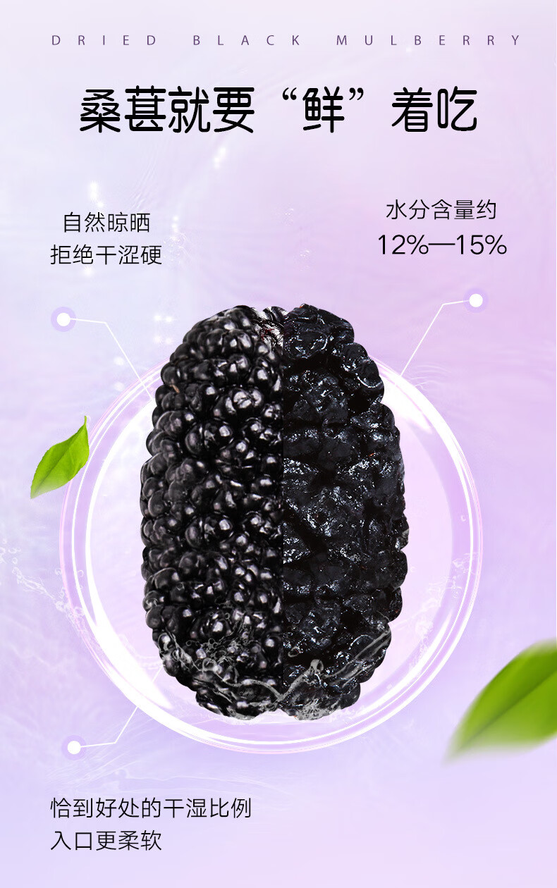 佰利红叶桑葚干新疆黑桑椹干黑桑葚汁官方特级免洗即食100%泡水泡酒0添加