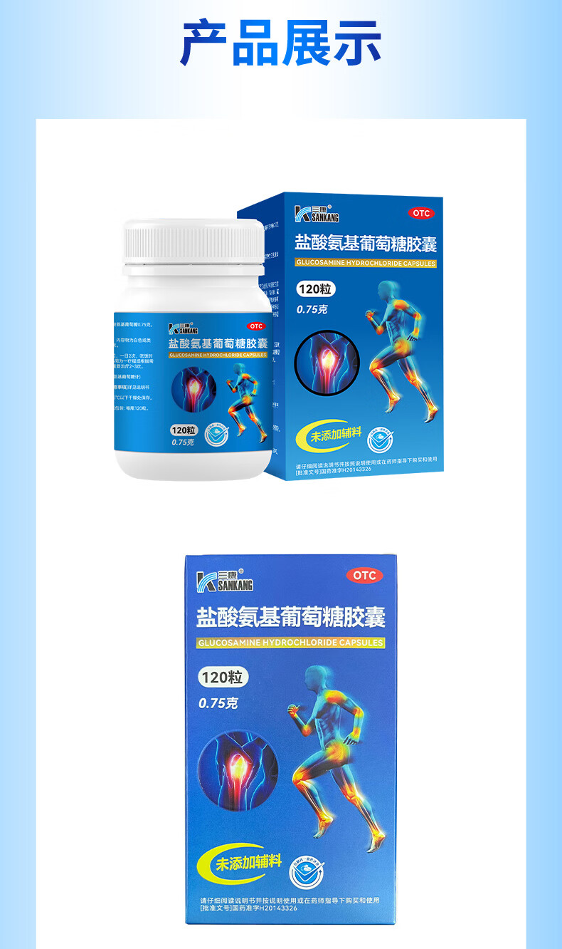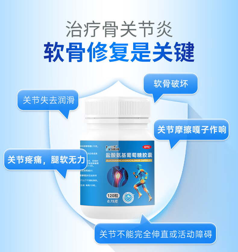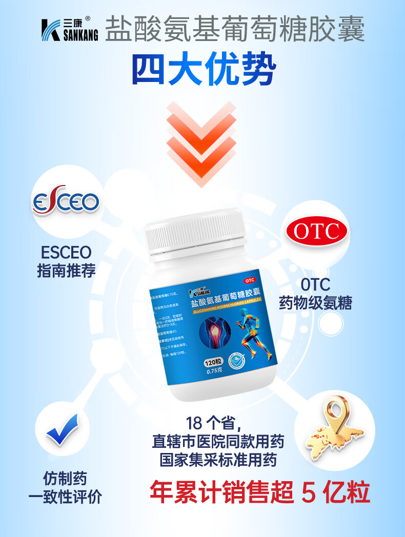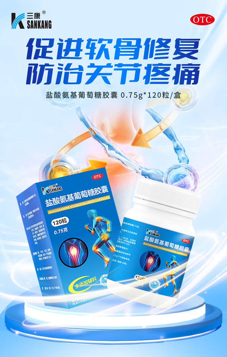 【三康】盐酸氨基葡萄糖胶囊 0.75g*120粒 氨糖 治疗骨关节炎 预防骨关节炎