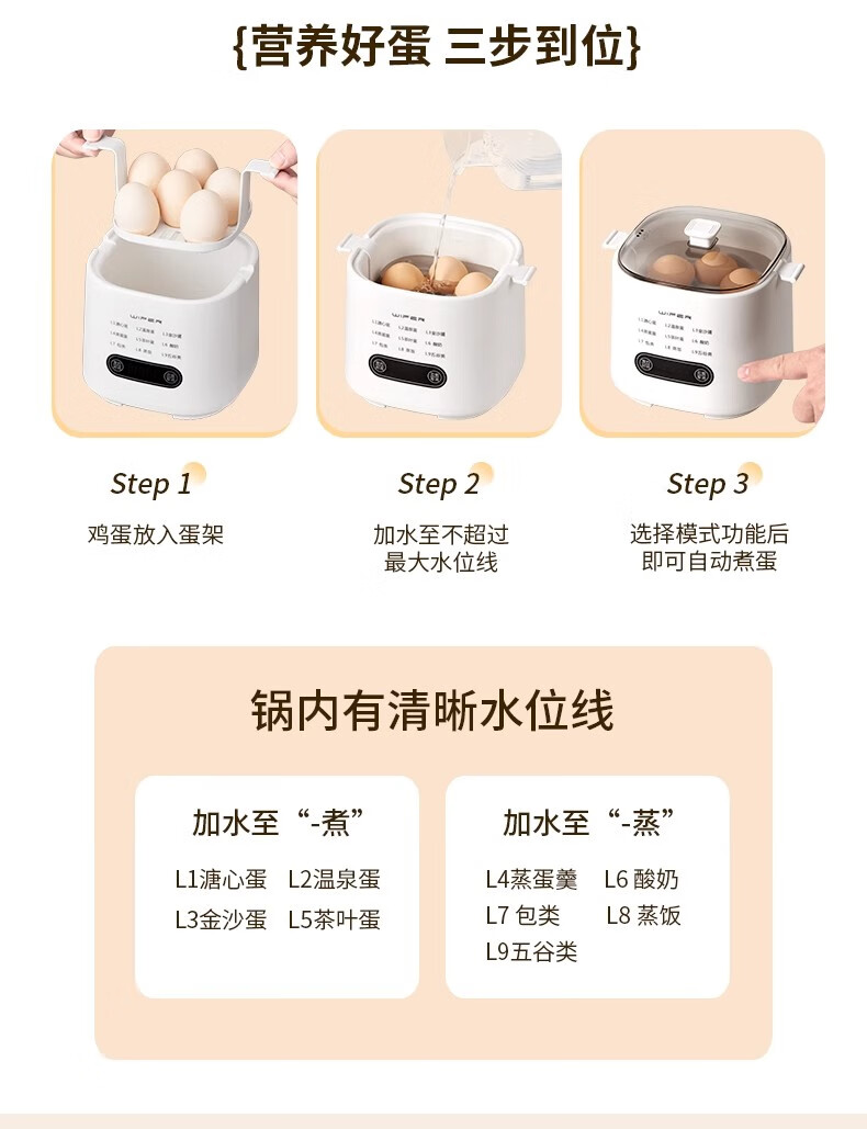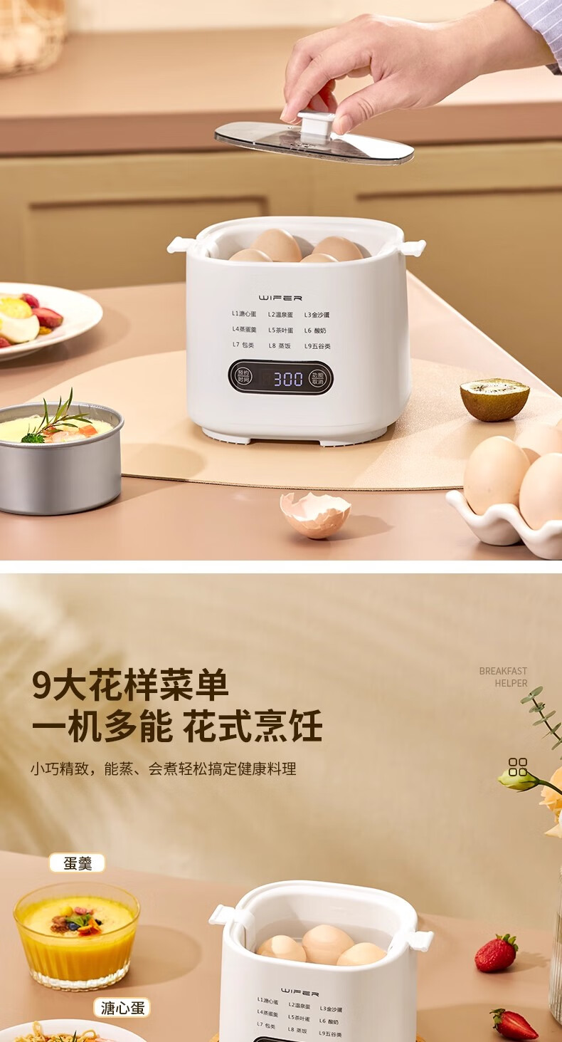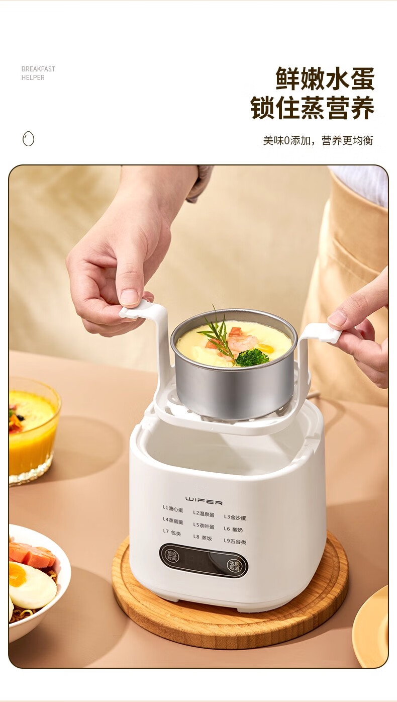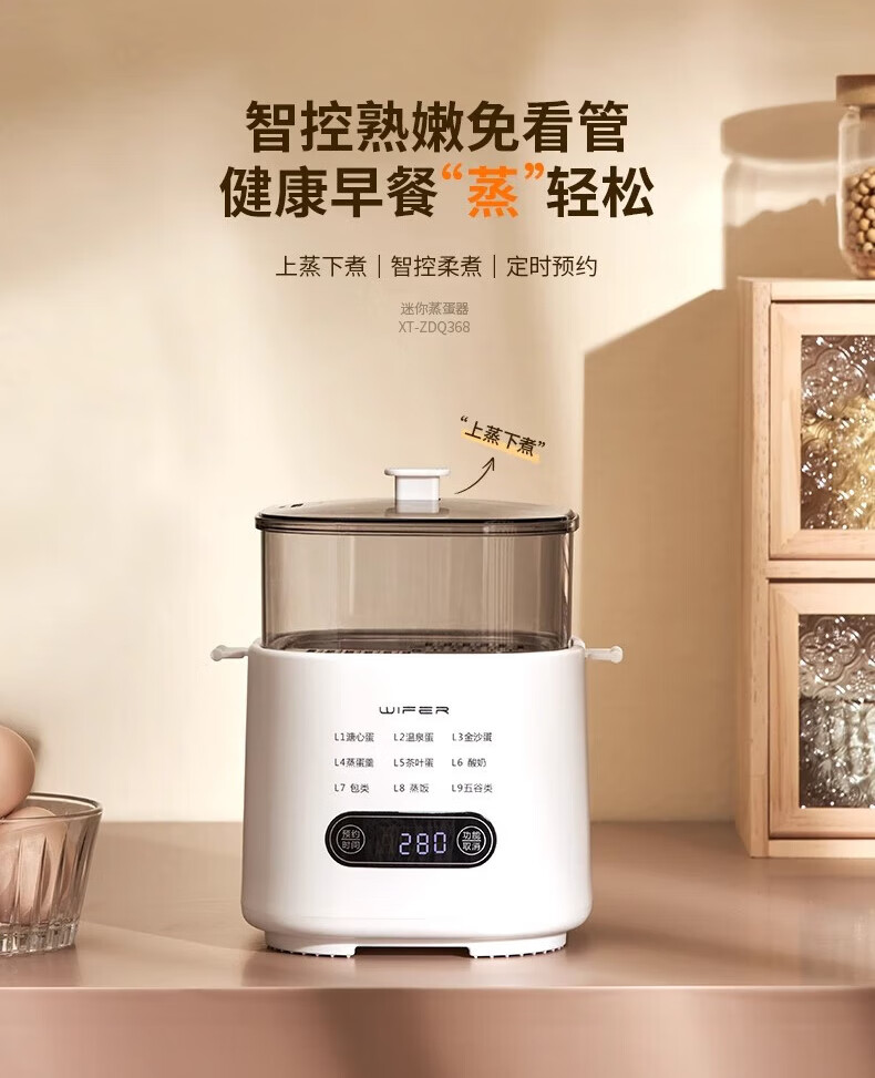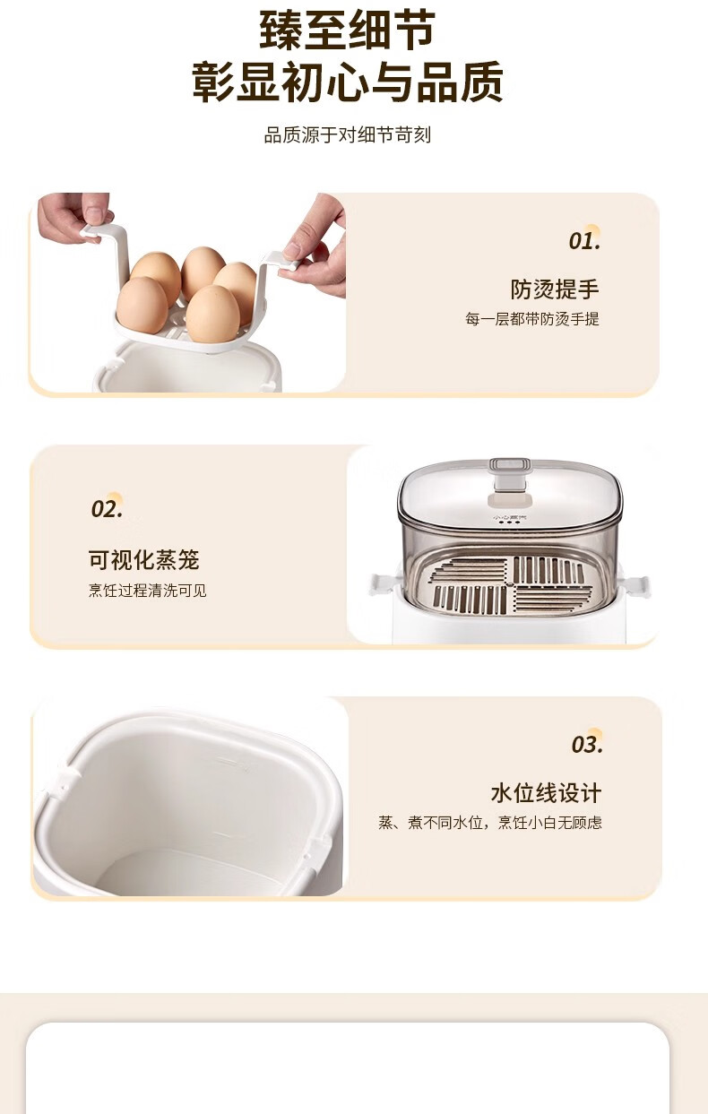 AILUKI日本煮蛋器2025新款自动断电家用小型一人多功能定时预约宿舍迷你 双层 顶配带蒸笼+蒸碗+大容量+24H预约