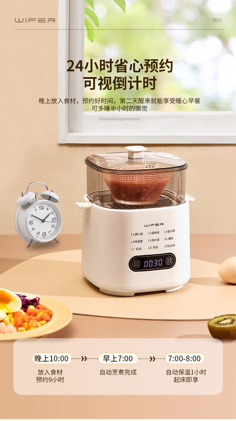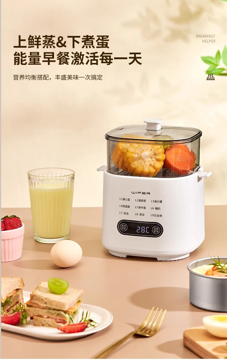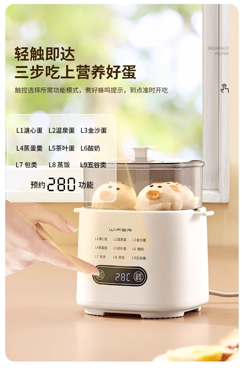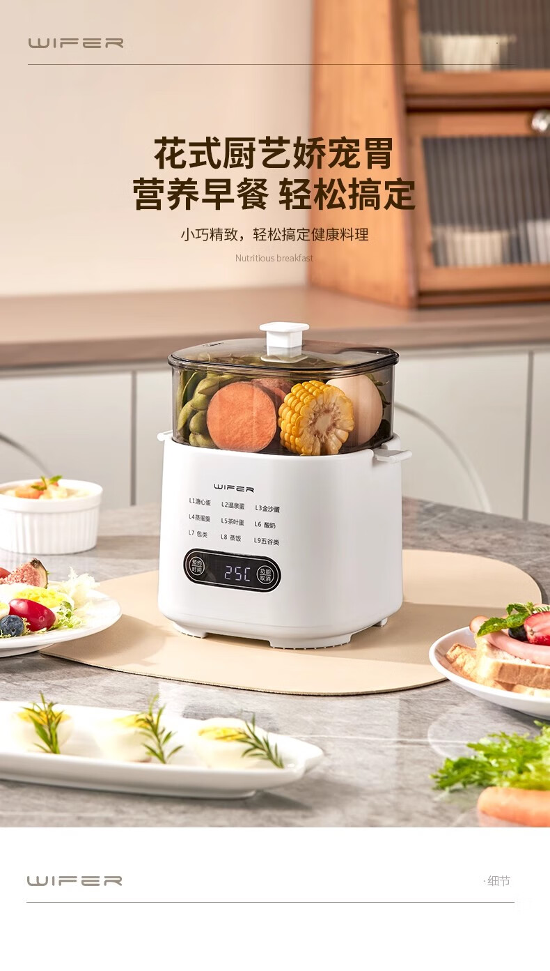 AILUKI日本煮蛋器2025新款自动断电家用小型一人多功能定时预约宿舍迷你 双层 顶配带蒸笼+蒸碗+大容量+24H预约