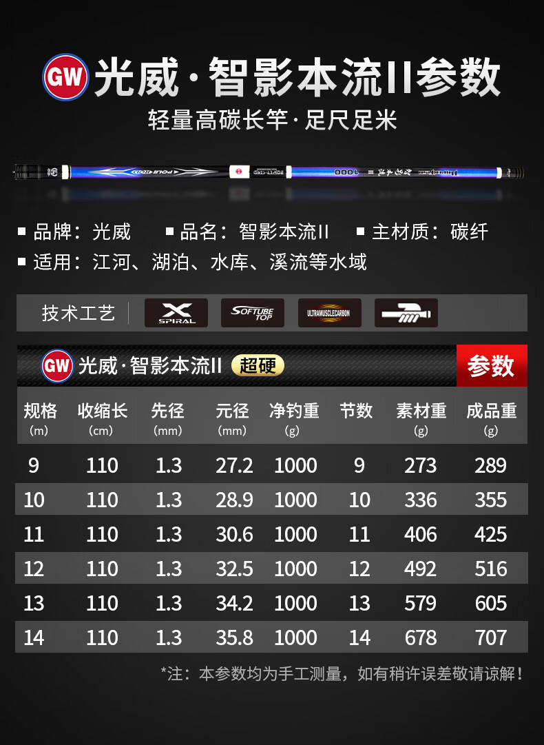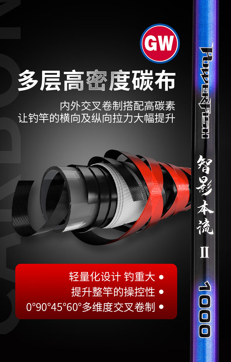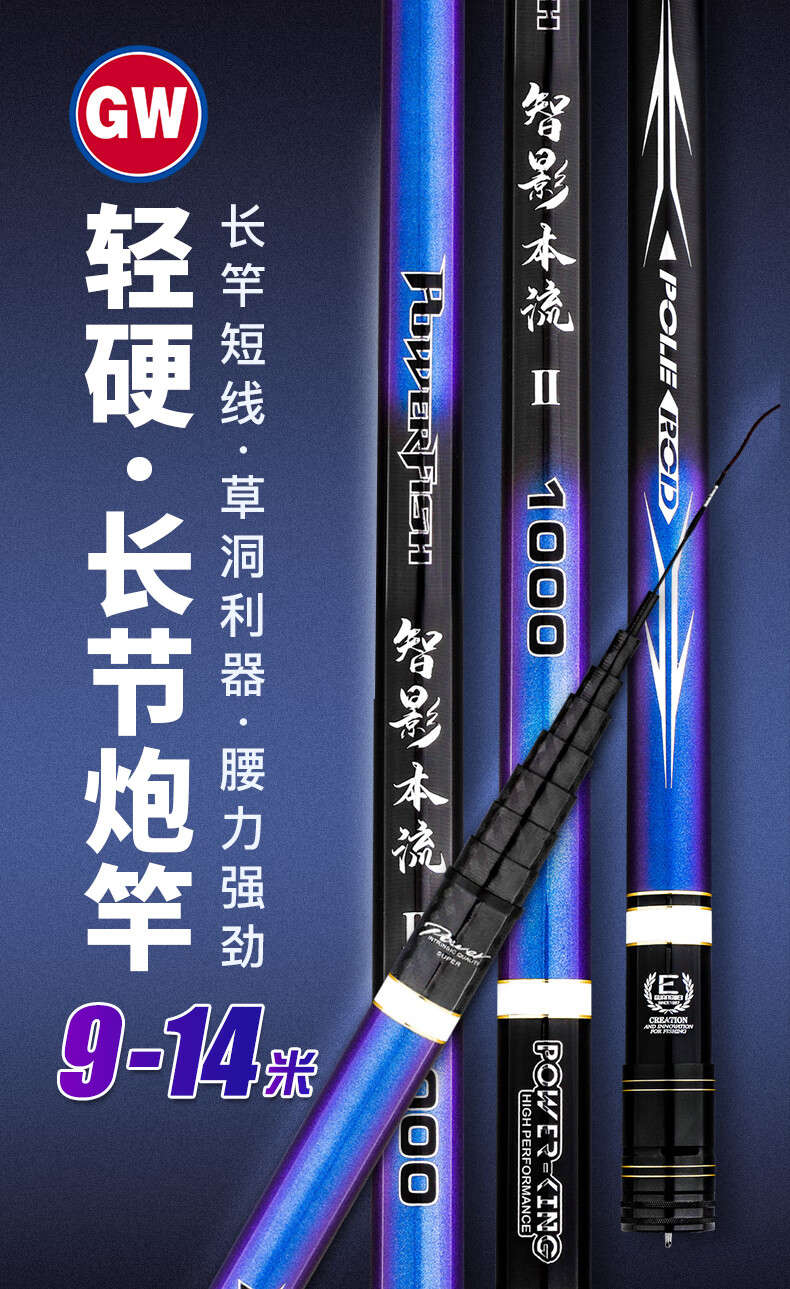 光威(GW)智影本流二代鱼竿炮竿碳素轻硬19调钓鱼竿手竿传统钓长杆打窝竿 10m 智影本流二代+硬竿梢+礼包