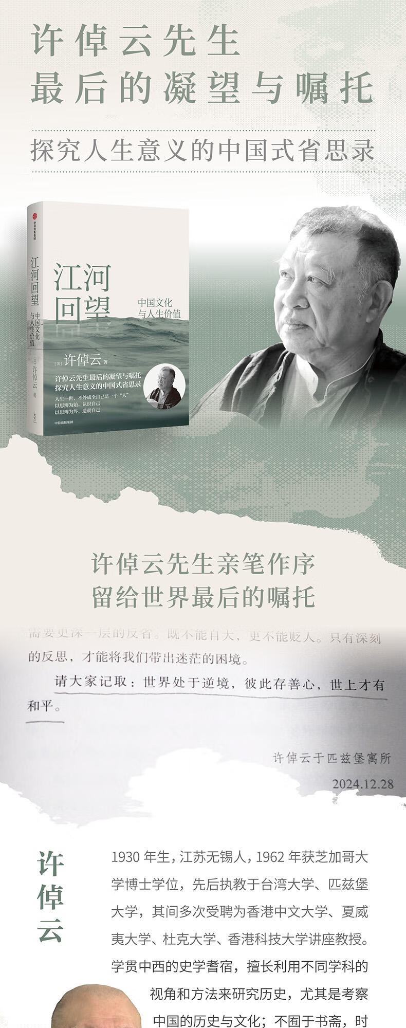 江河回望 中国文化与人生价值 许倬云先生后的凝望与嘱托 许倬云著 中信出版社正版图书