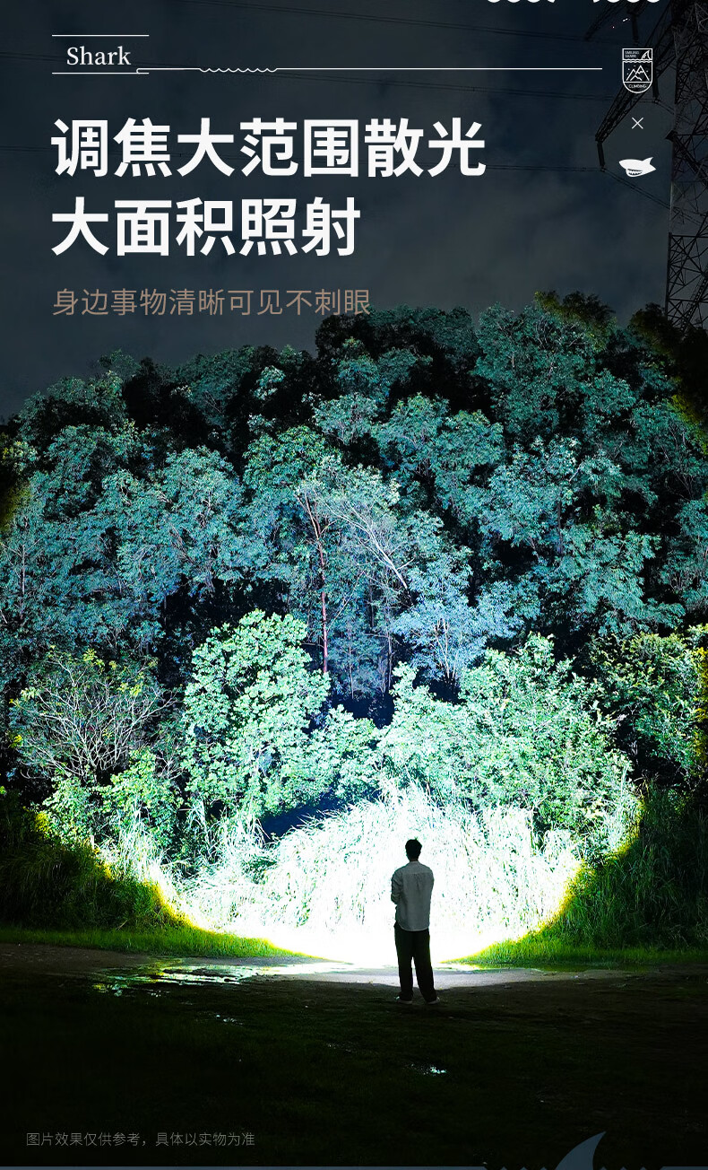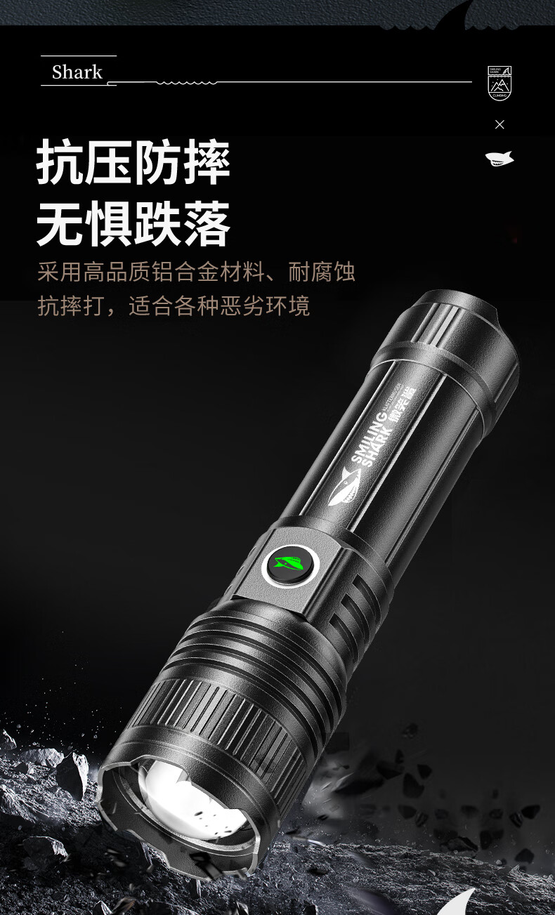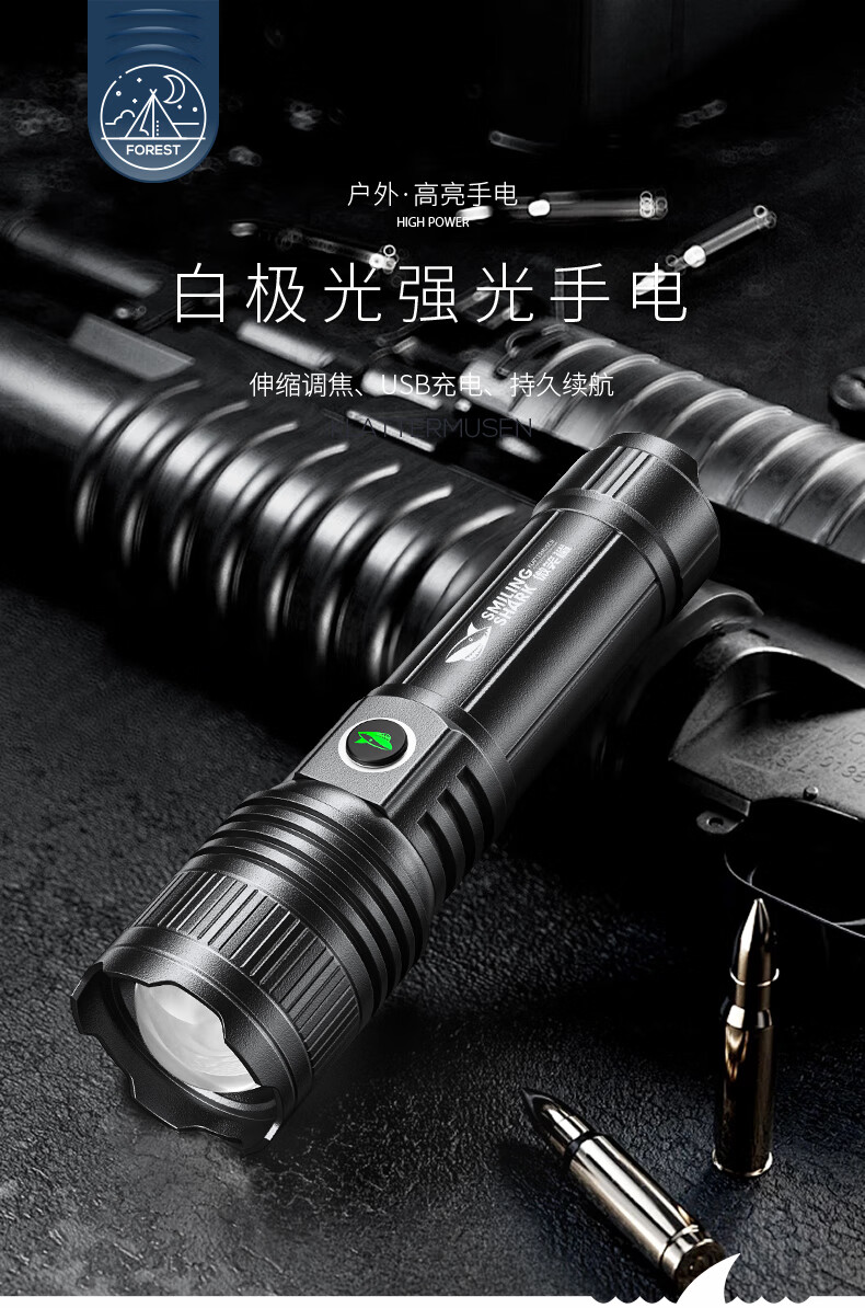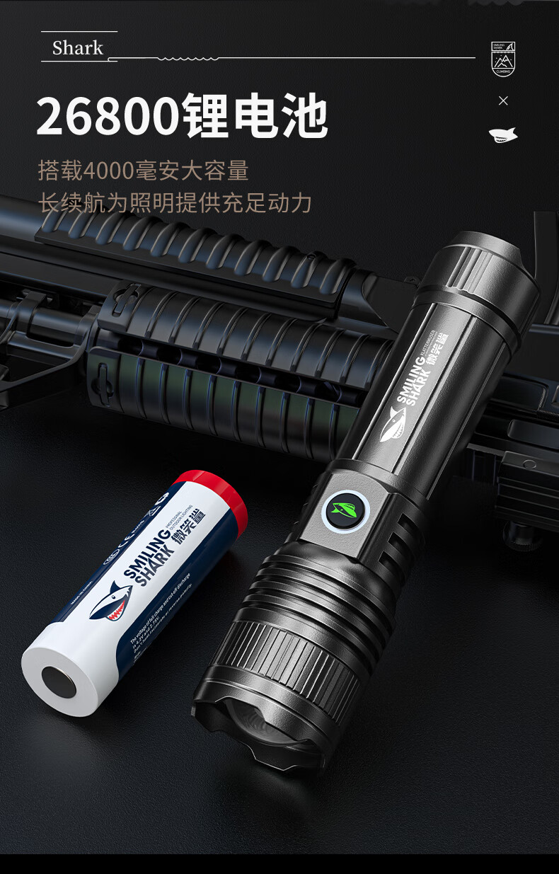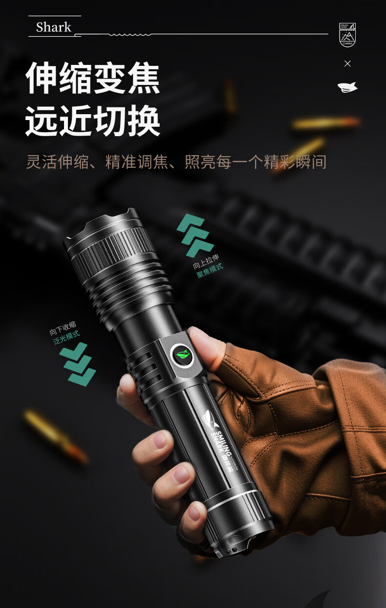 微笑鲨夜爬登山强光超亮手电筒户外防水大功率便携长续航变焦充电激光灯 伸缩变焦【5500毫安】26800电池