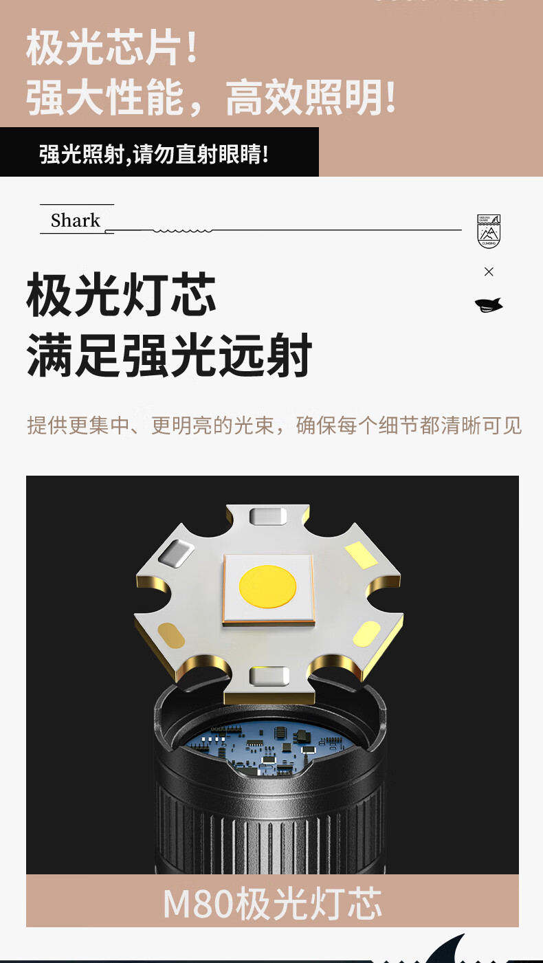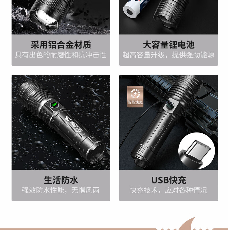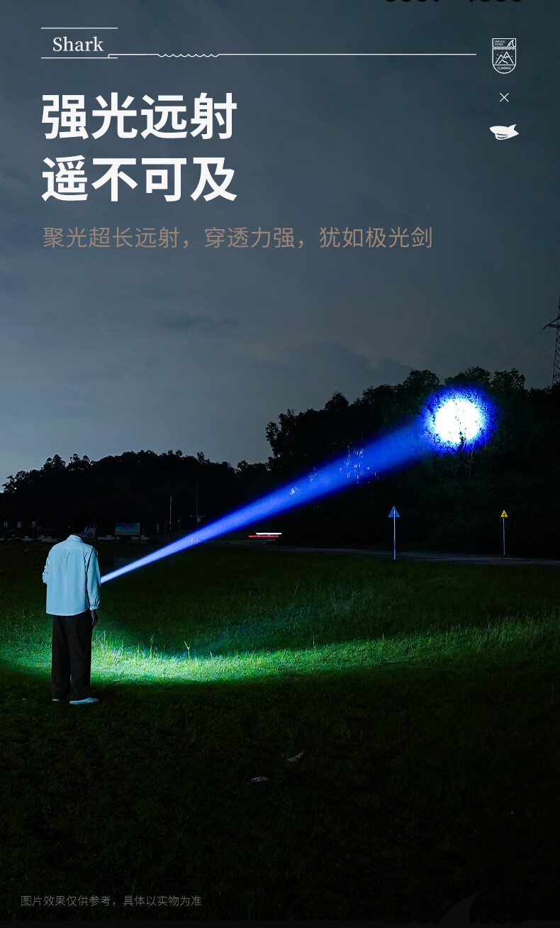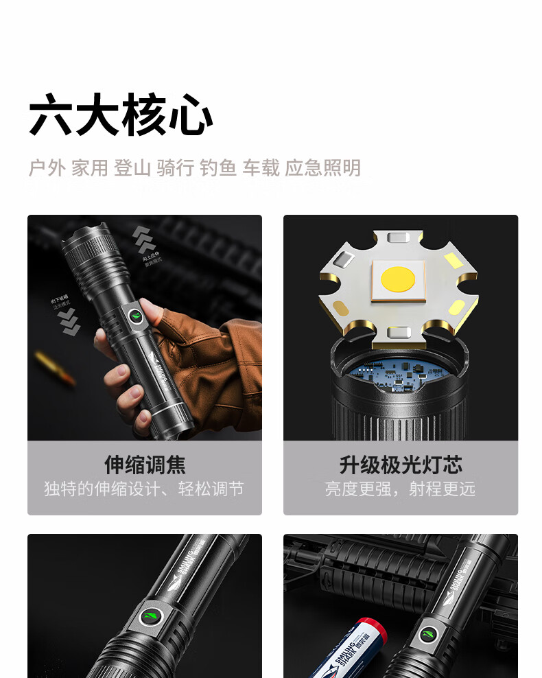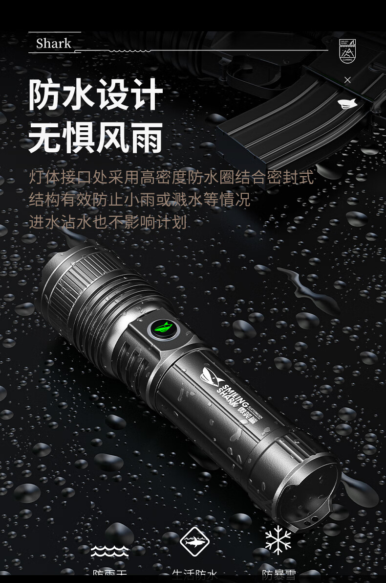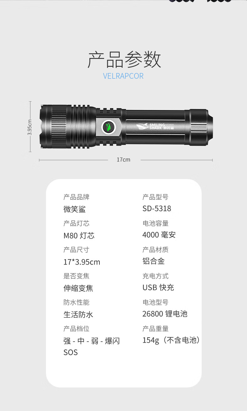 微笑鲨夜爬登山强光超亮手电筒户外防水大功率便携长续航变焦充电激光灯 伸缩变焦【5500毫安】26800电池