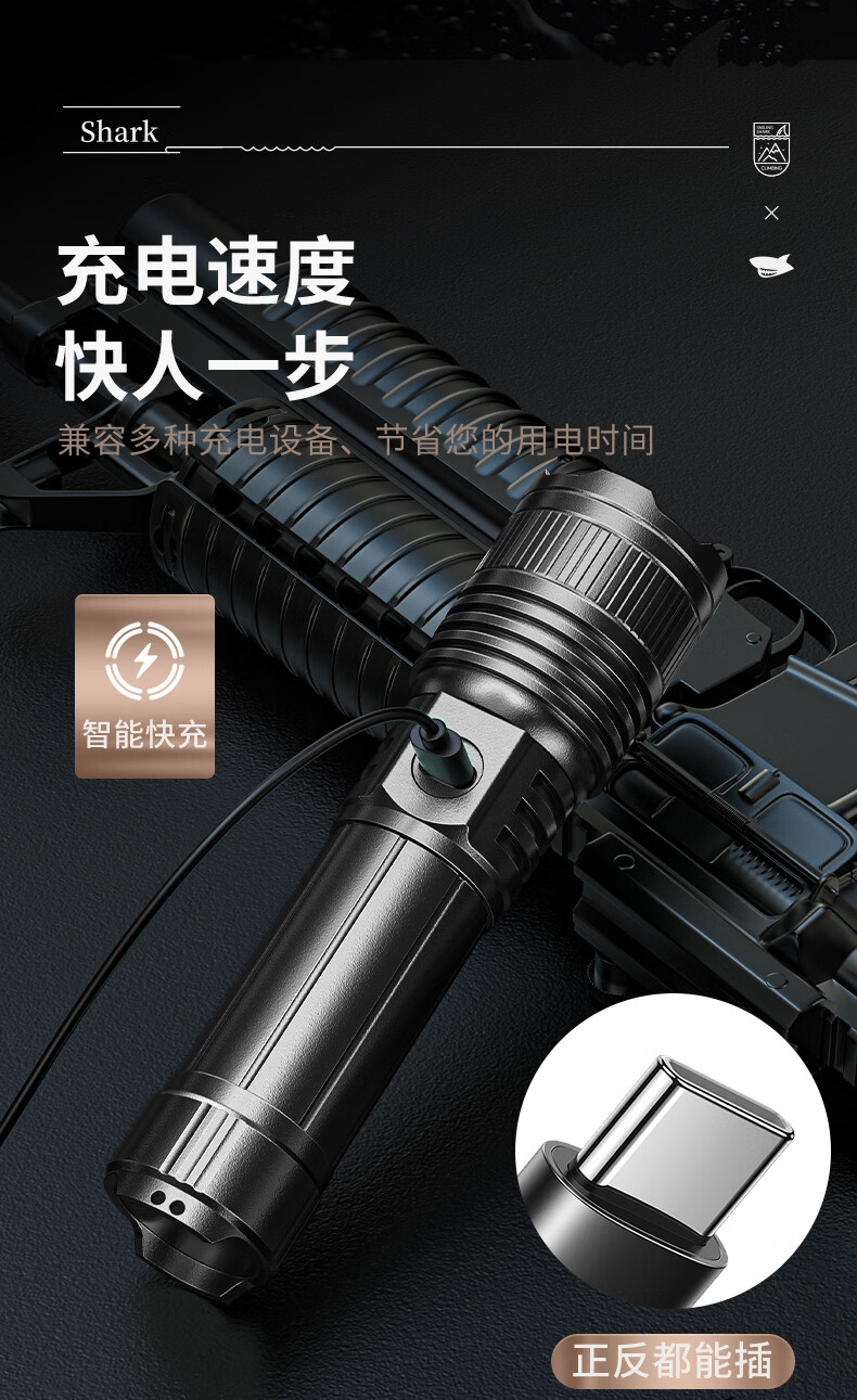Aic手电筒强光充电式便携户外远射超亮白激光多功能家用耐用应急 【升级款】爆亮远射/TYPE-C充电