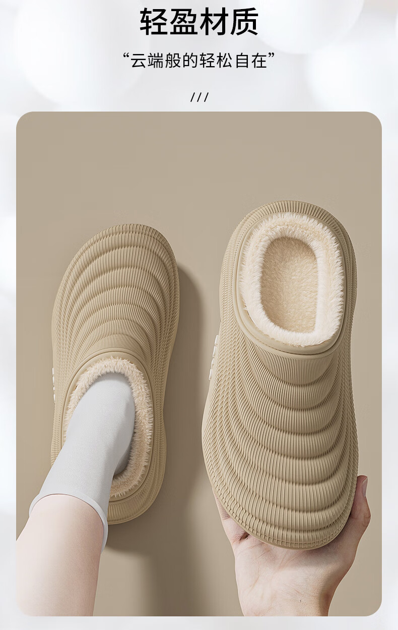 DEATKN德国麂皮绒棉拖鞋女士冬季2025新款室内家居防水防滑厚底棉鞋 主图款-杏色细密麂皮绒不掉毛 可 38-39 适合37-38脚