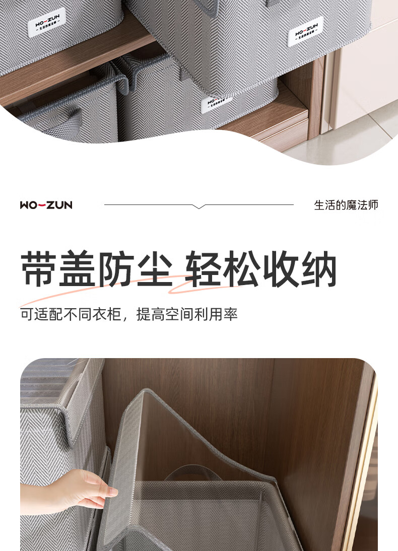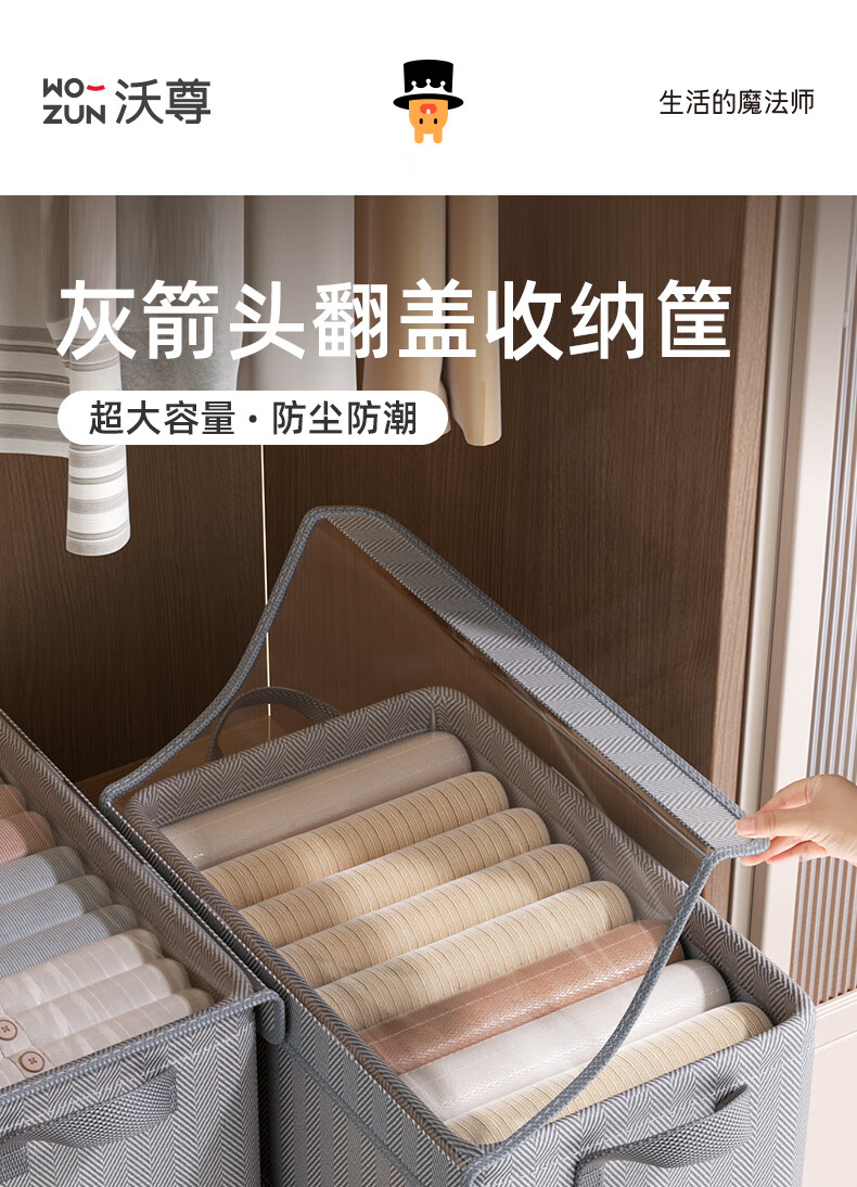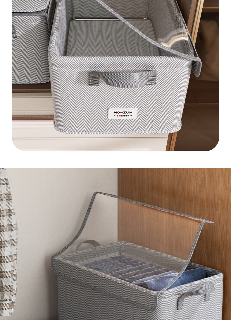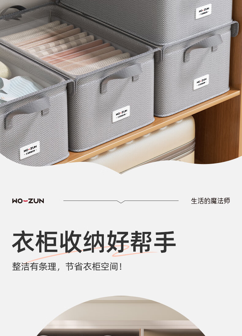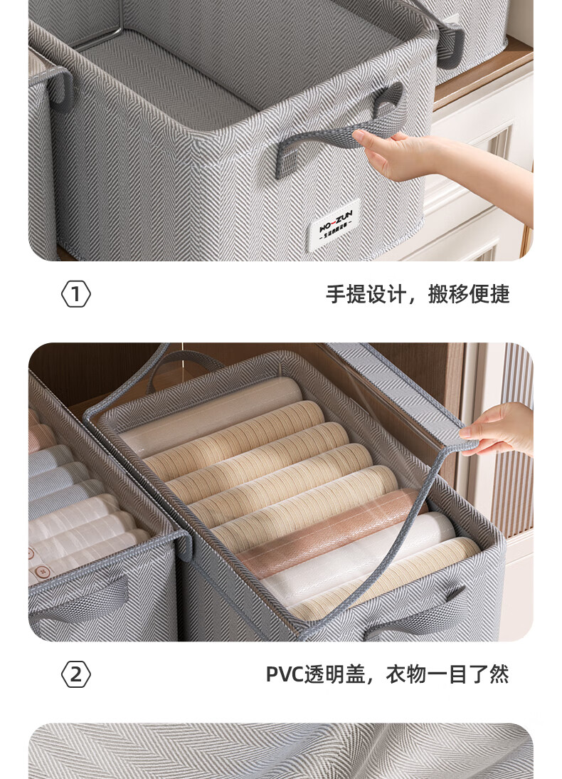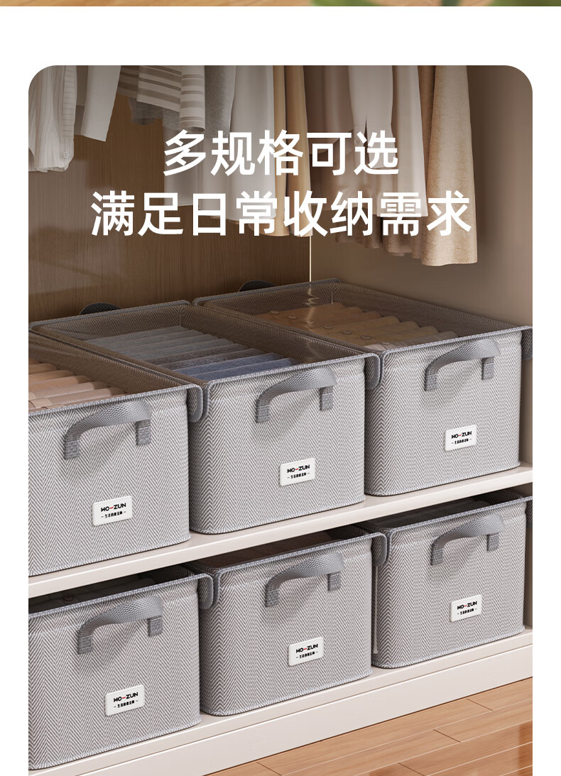 沃尊衣柜衣服收纳盒大容量放在衣柜里的整理盒布艺分层裤子神器储物筐 米色中号【可视透窗】40*25*20cm