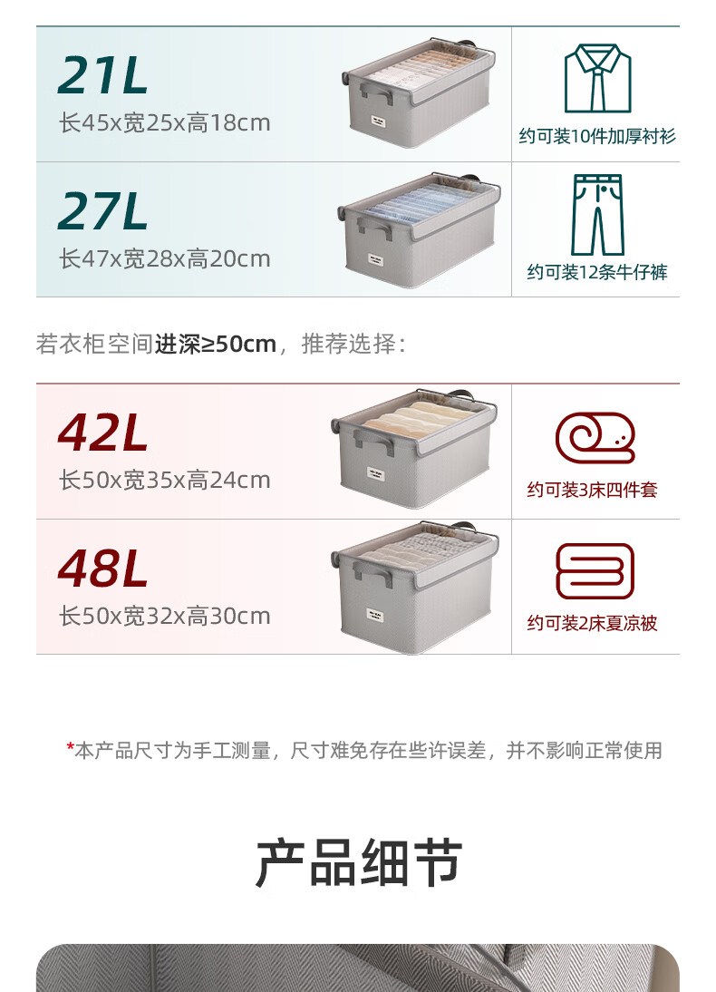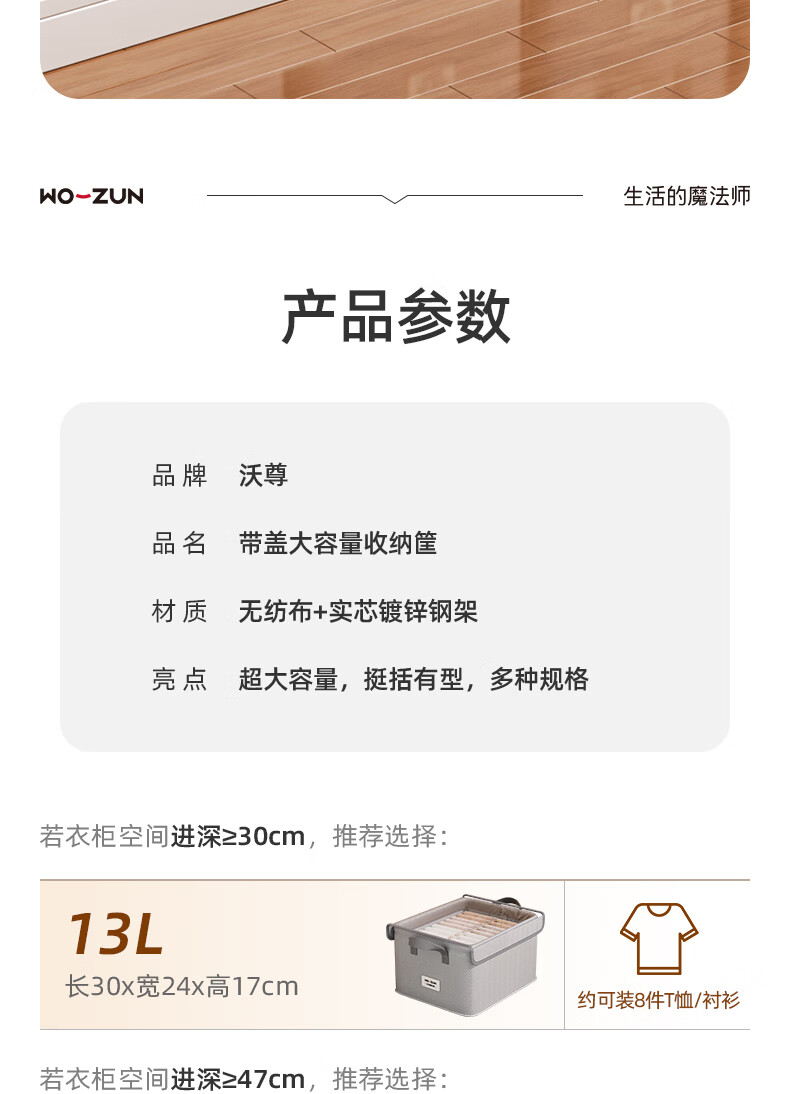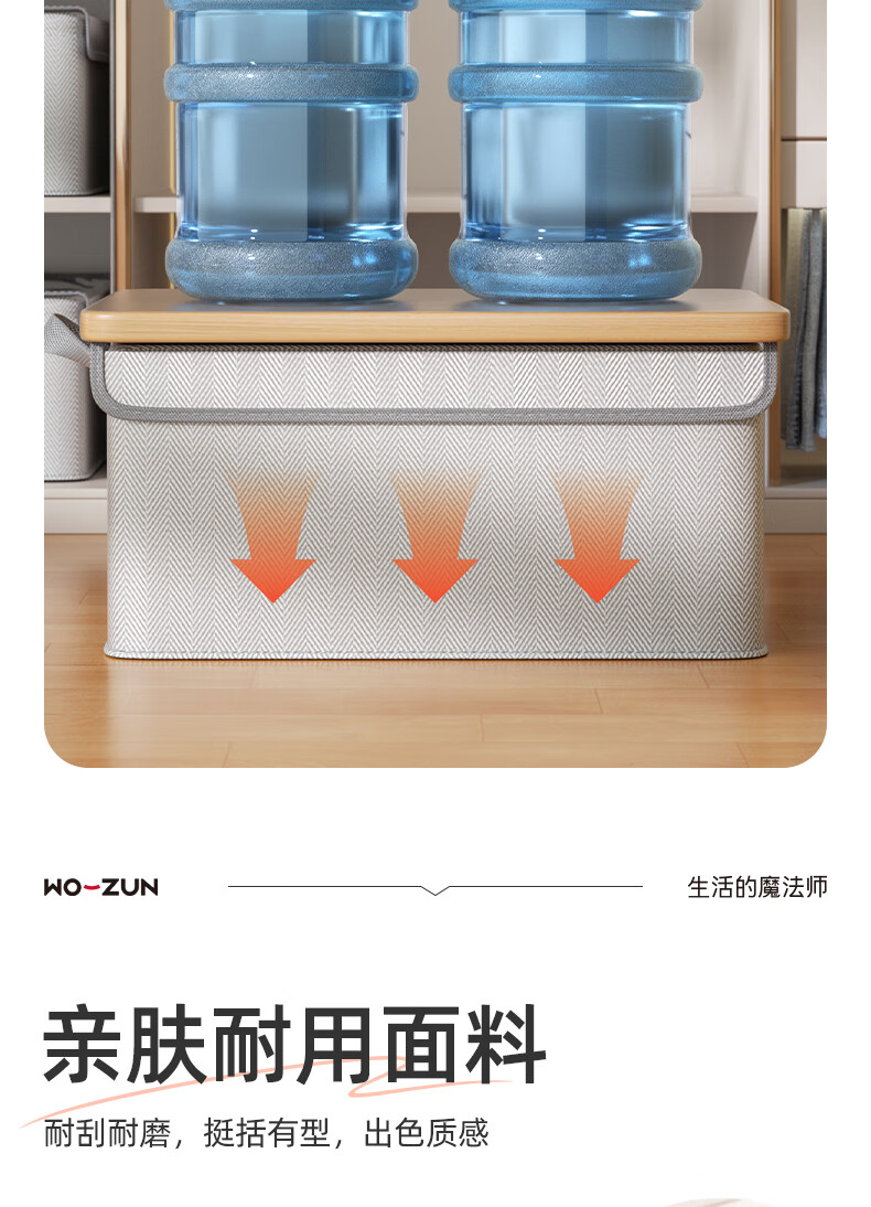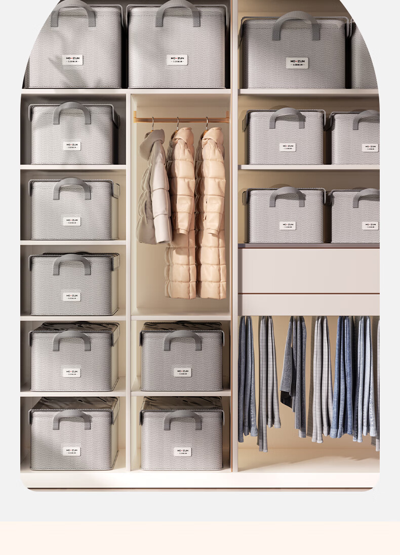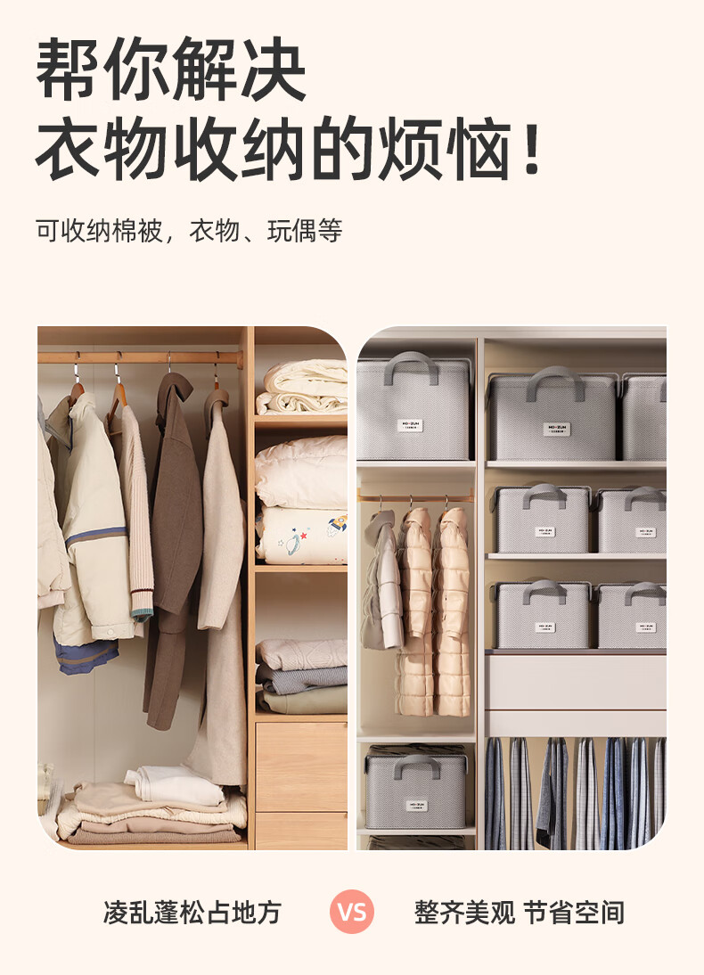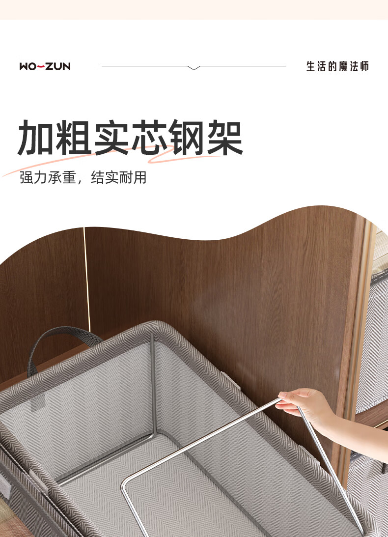 沃尊衣柜衣服收纳盒大容量放在衣柜里的整理盒布艺分层裤子神器储物筐 米色中号【可视透窗】40*25*20cm