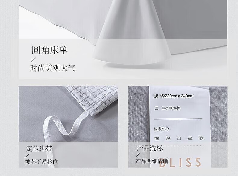 百丽丝三四件套60S全棉贡缎透气干爽床单被套床上四件套 60S贡缎套件 床单款 (被套150*210cm)