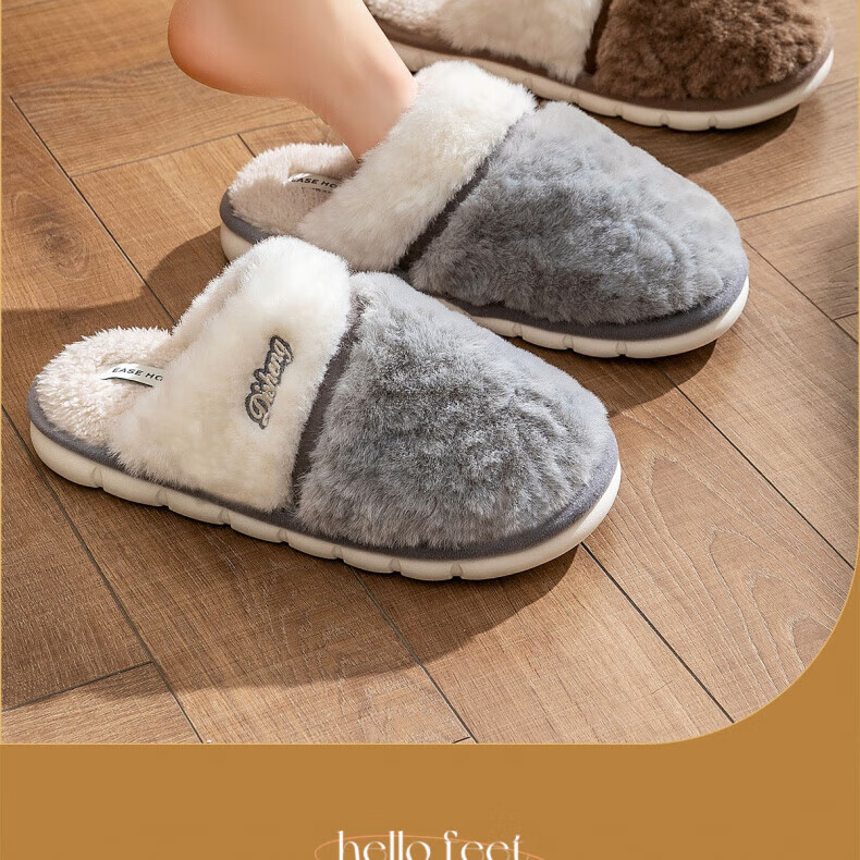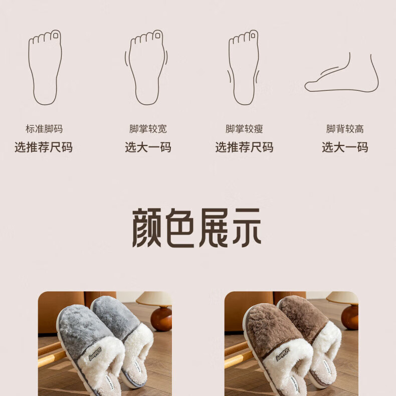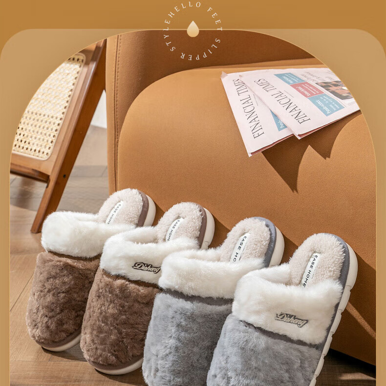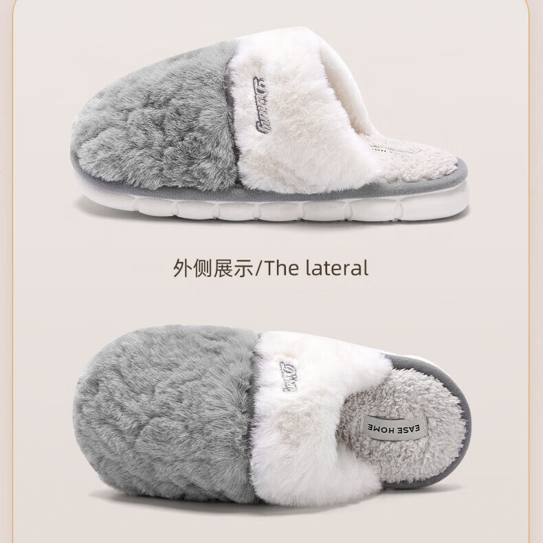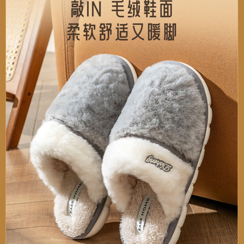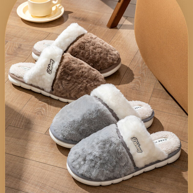 AILUKI日本保暖棉拖鞋男士秋冬季室内家居情侣厚底防滑毛绒棉拖男款 米白【不掉毛】 37-38 38_-39【适合】