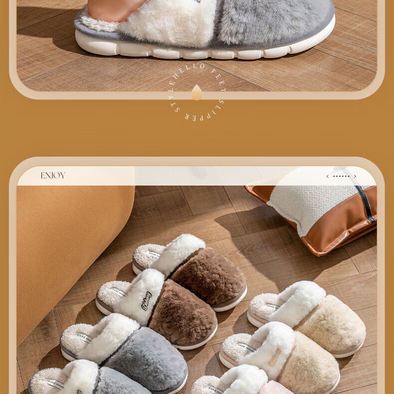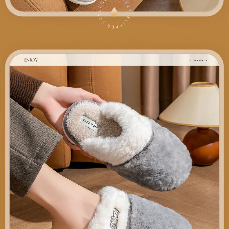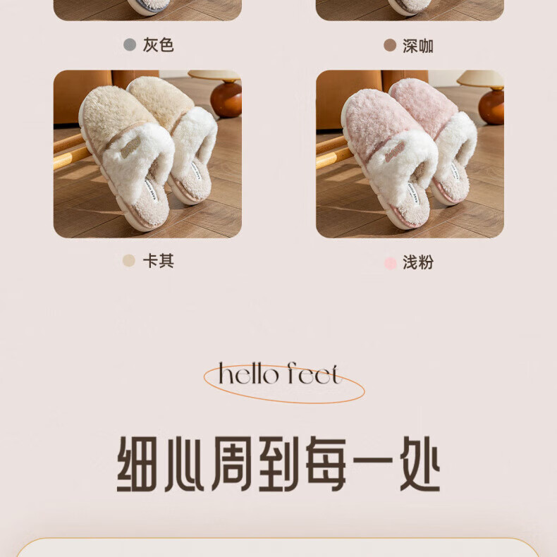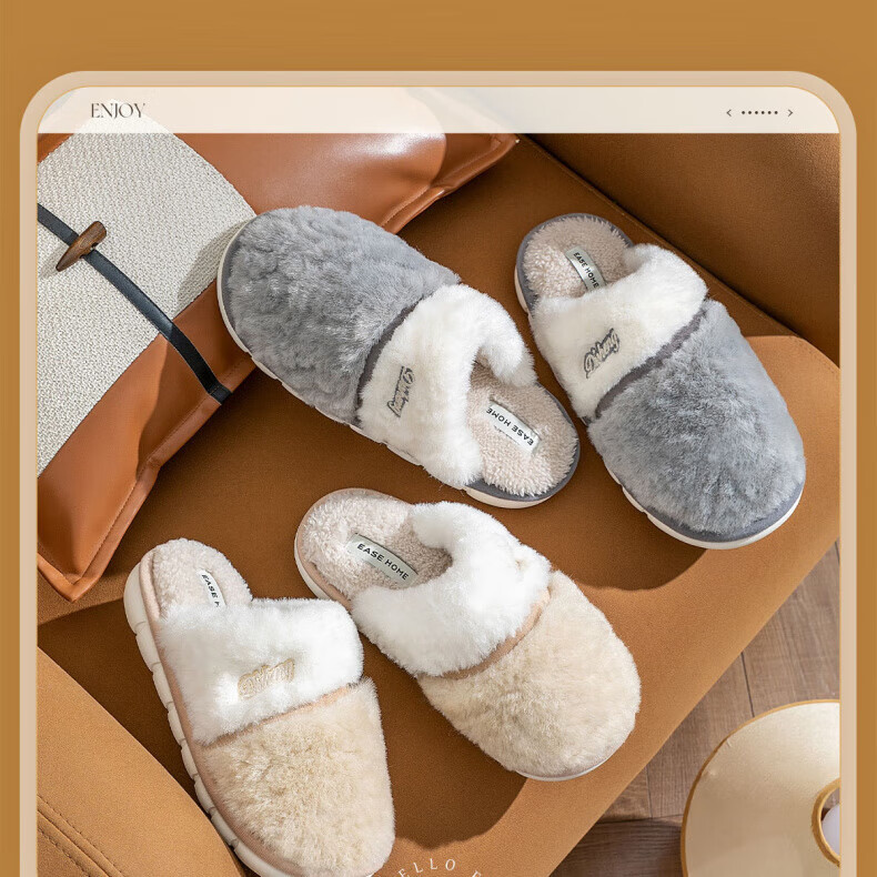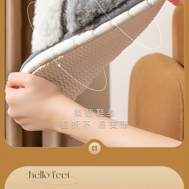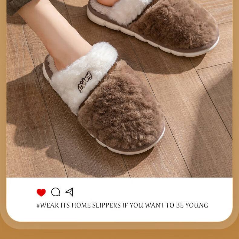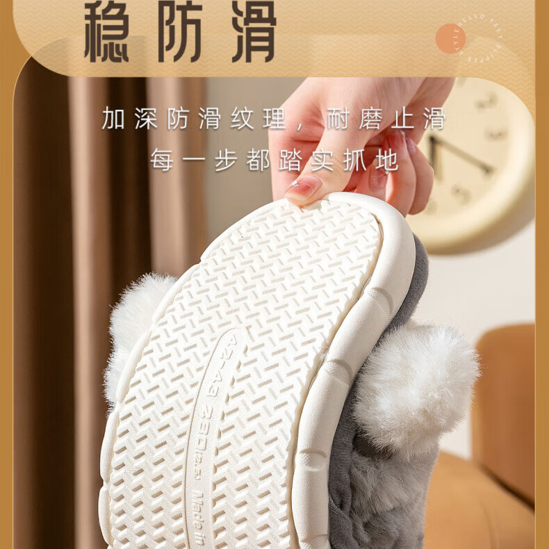 AILUKI日本保暖棉拖鞋男士秋冬季室内家居情侣厚底防滑毛绒棉拖男款 米白【不掉毛】 37-38 38_-39【适合】