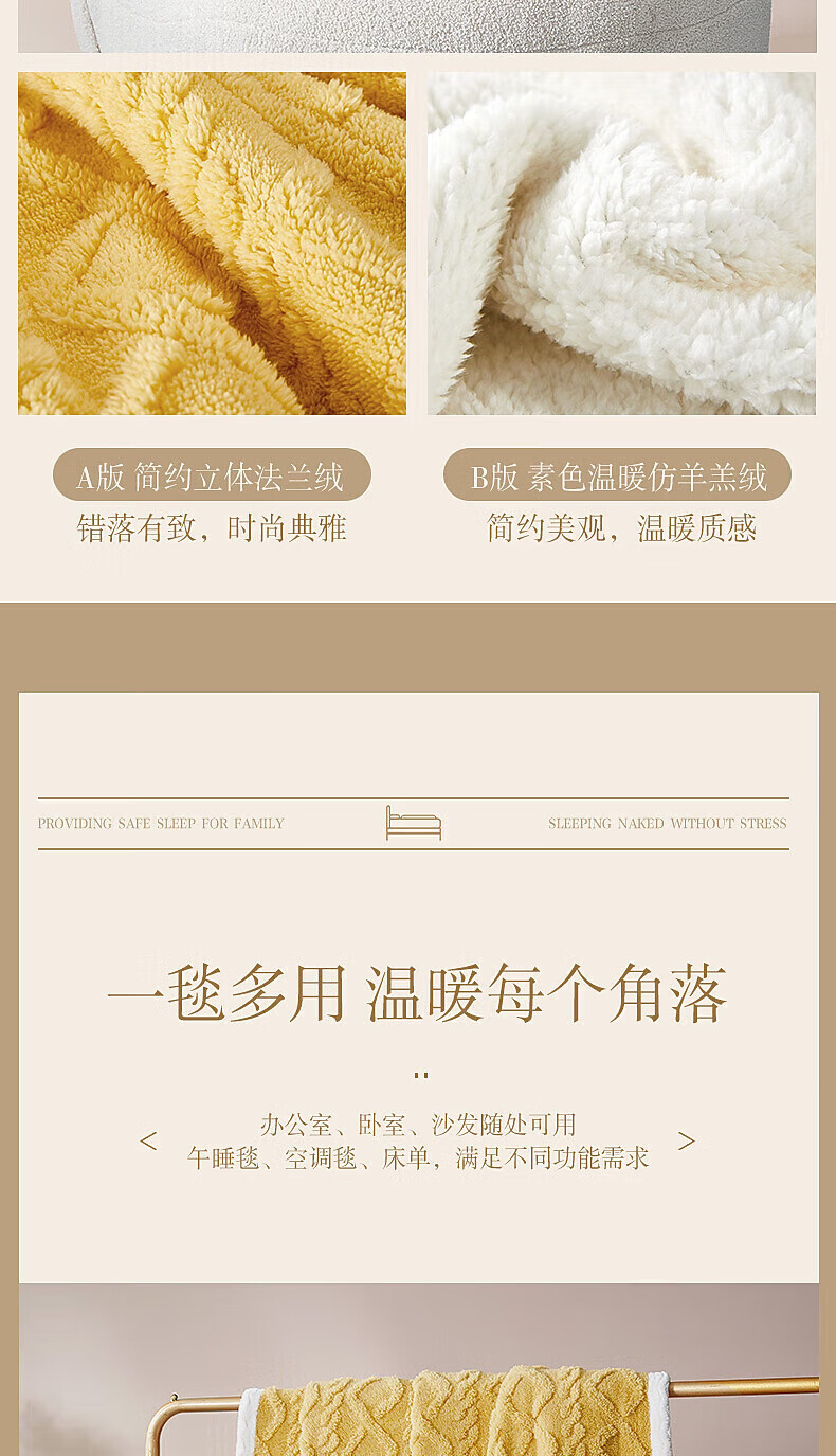 百丽丝毛毯双面绒感复合毯子蓄温保暖宿舍办公家用毛毯 复合毯(玉粉色) 200cm×230cm
