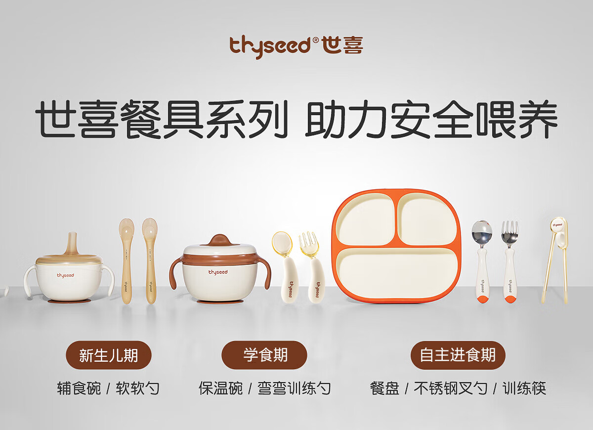 世喜婴儿餐盘分格带吸盘 宝宝训练弯弯辅食勺学吃饭叉子 儿童餐具套装