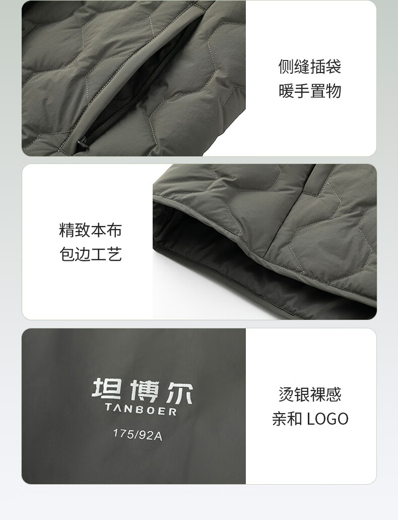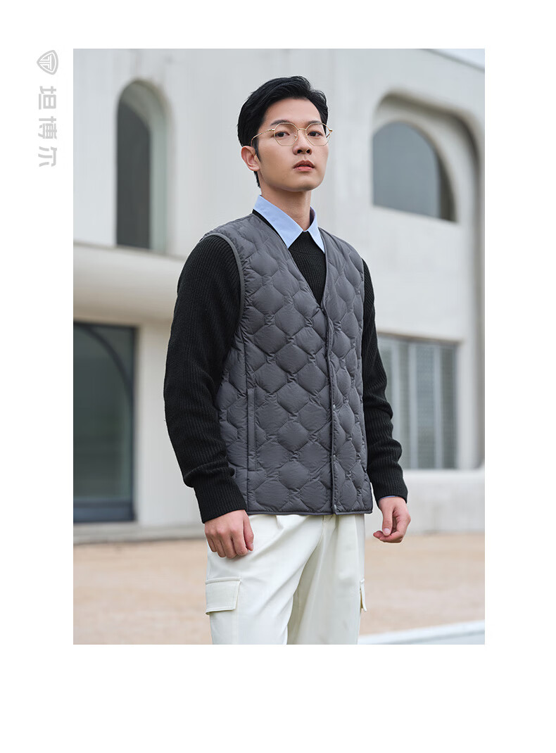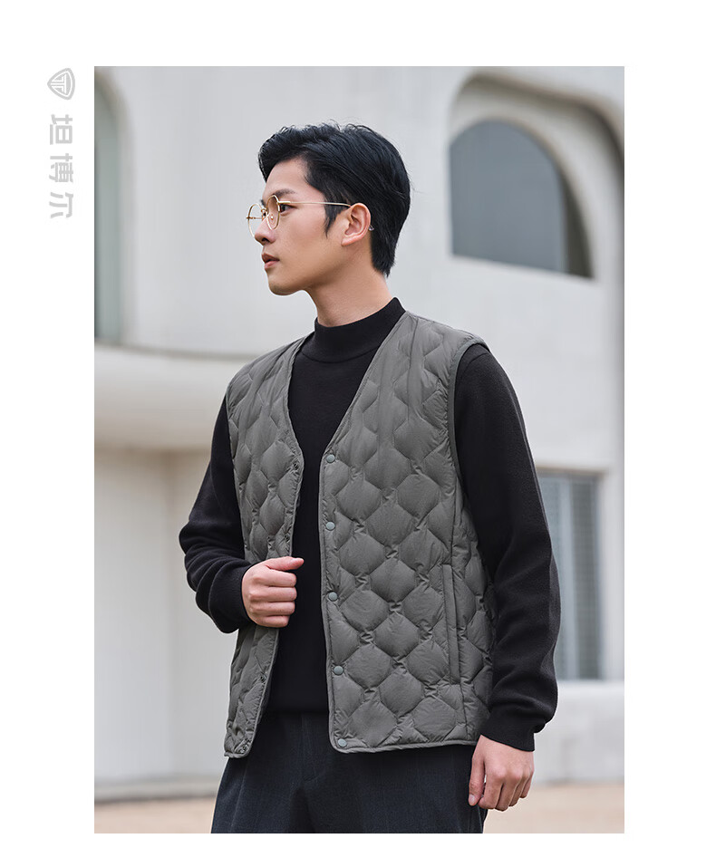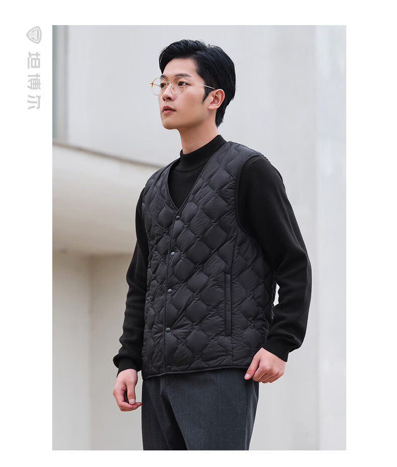 坦博尔羽绒马甲男短款内穿保暖百搭男士马夹背心TF236011 黑色 175