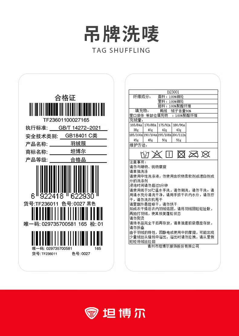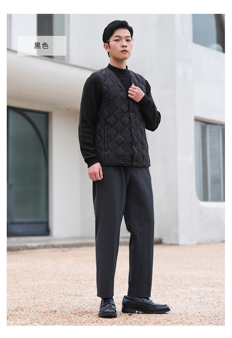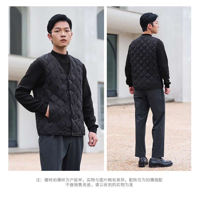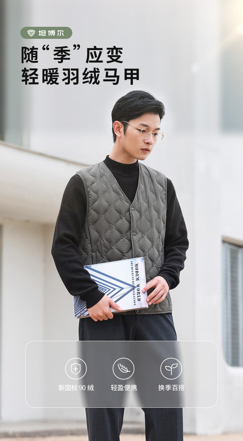 坦博尔羽绒马甲男短款内穿保暖百搭男士马夹背心TF236011 黑色 175