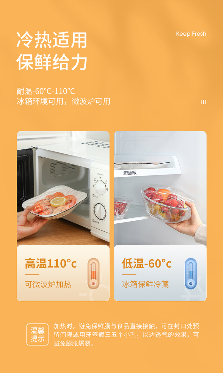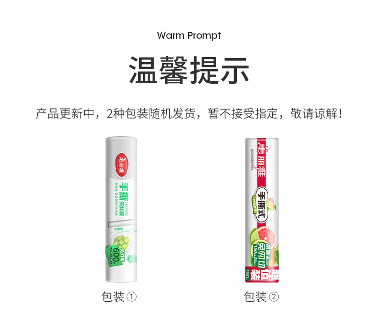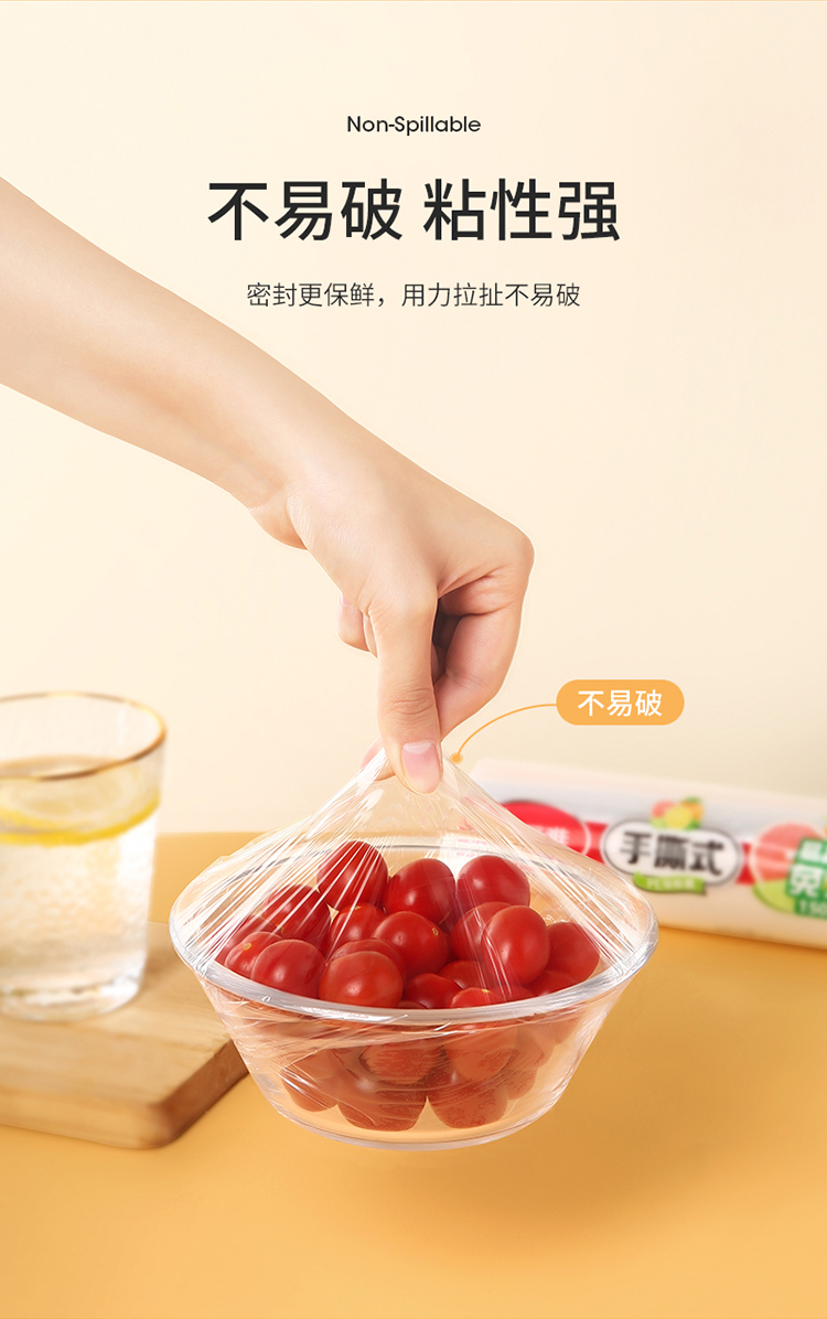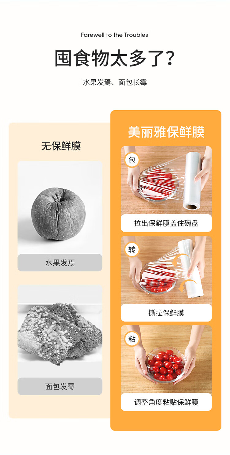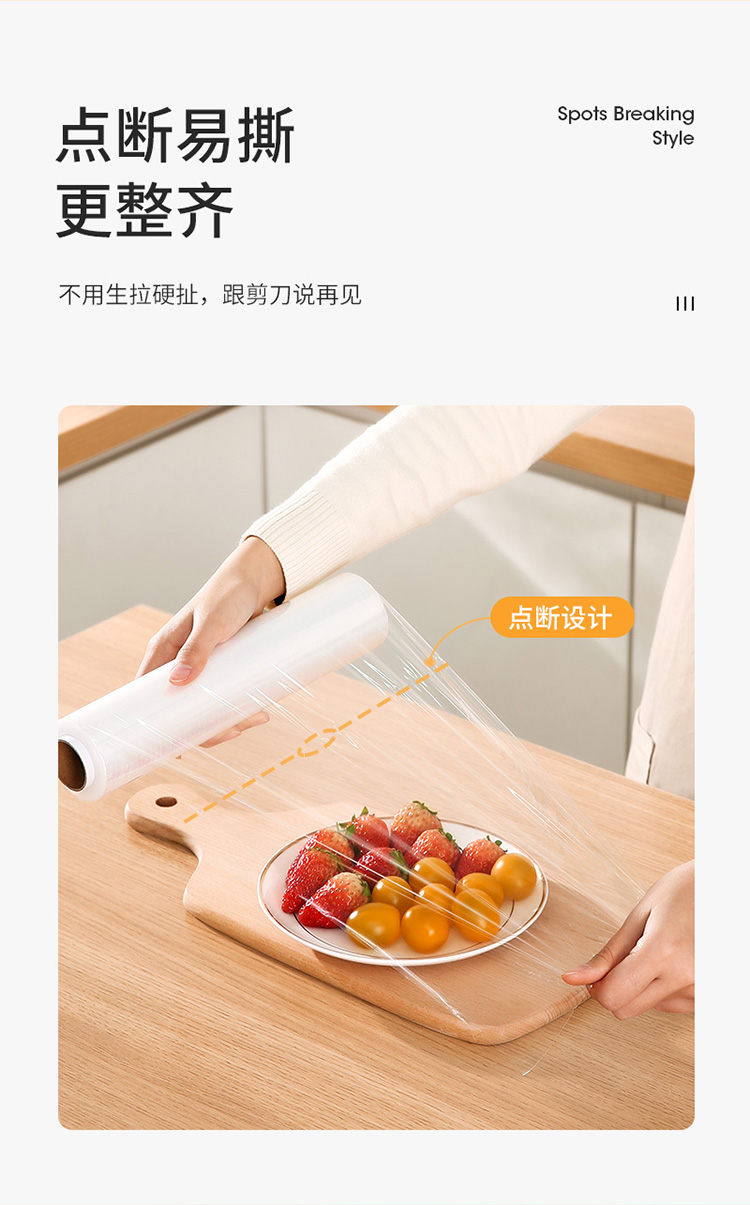 美丽雅 耐高温保鲜膜食品用 微波炉冰箱适用 中号断点式25cm*150米
