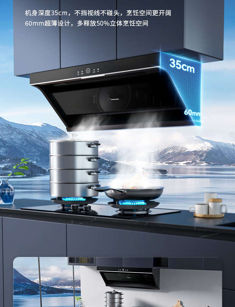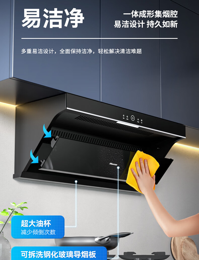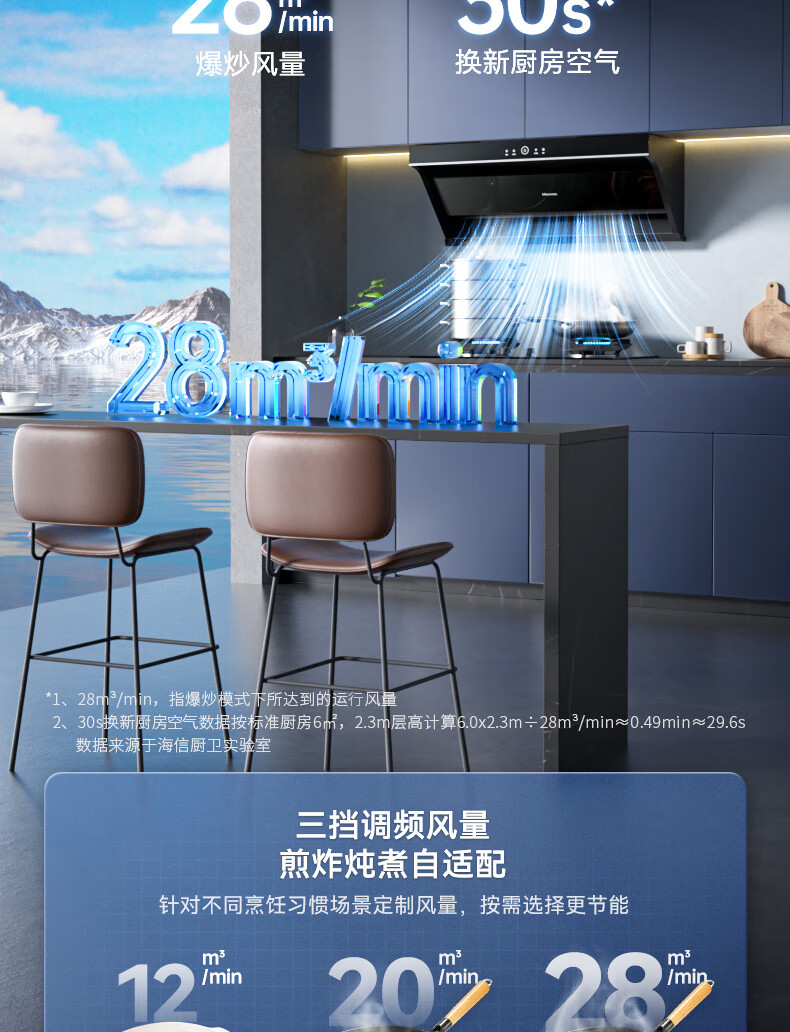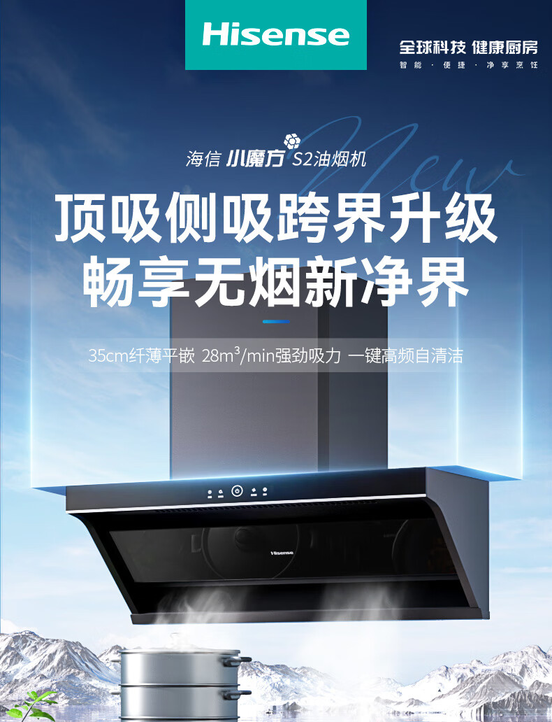 海信(Hisense)小魔方顶侧双吸侧吸跨界28立方大吸力家用抽排吸油烟机挥手自清洁S2配燃气灶国家补贴20%换新优选