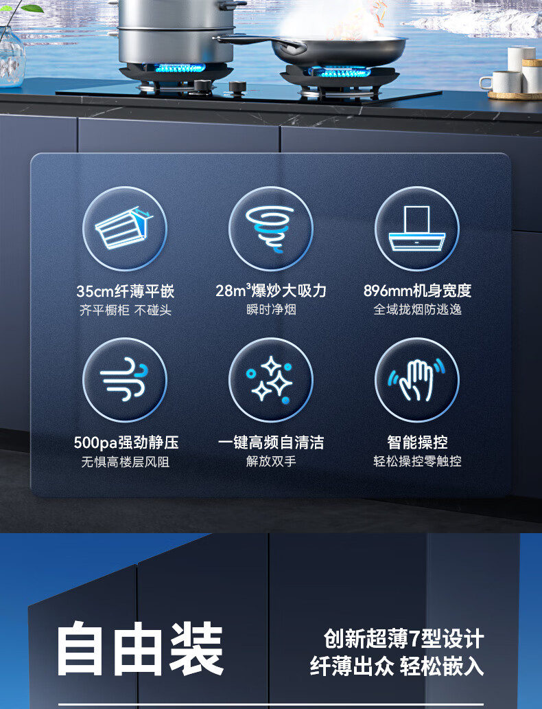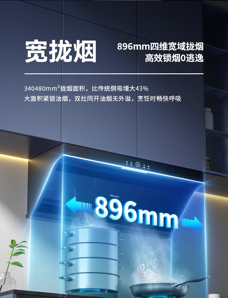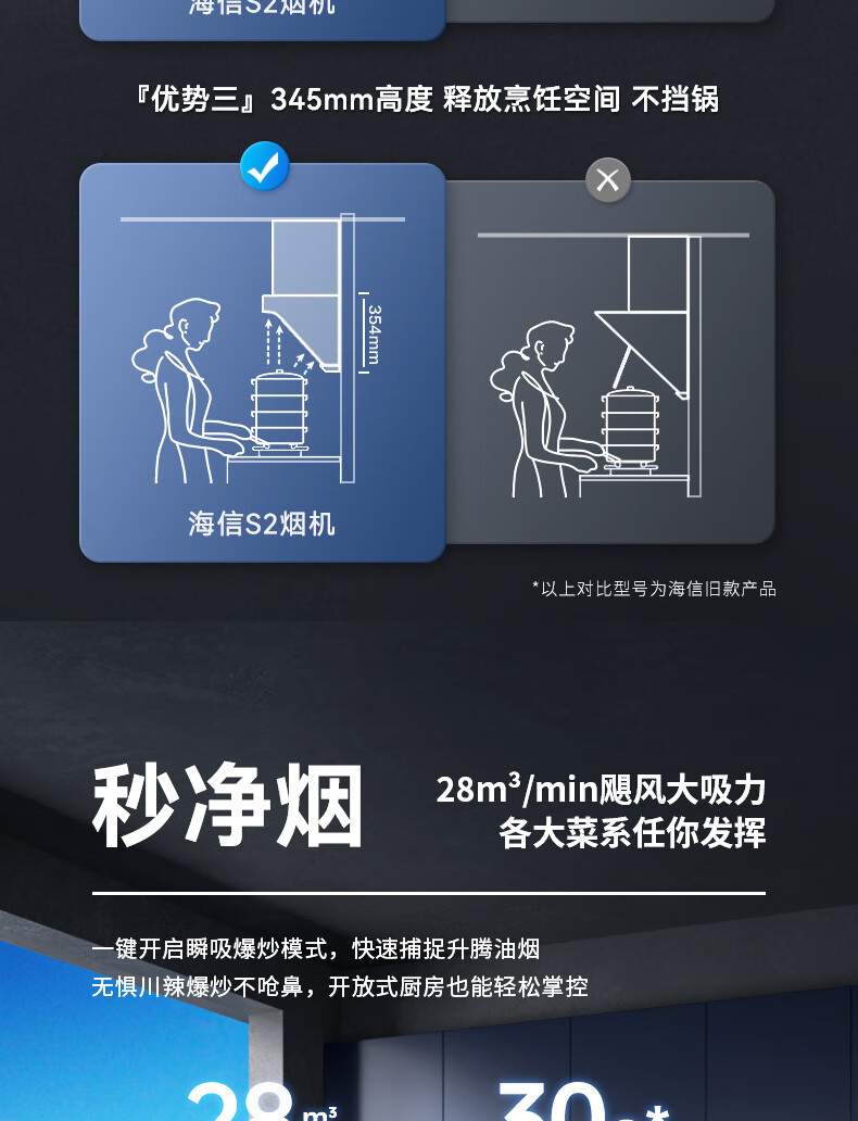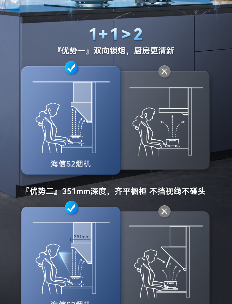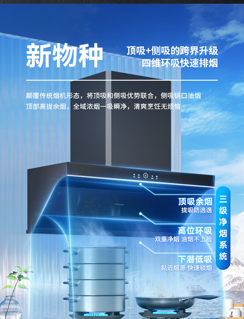 海信(Hisense)小魔方顶侧双吸侧吸跨界28立方大吸力家用抽排吸油烟机挥手自清洁S2配燃气灶国家补贴20%换新优选