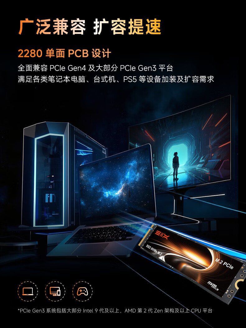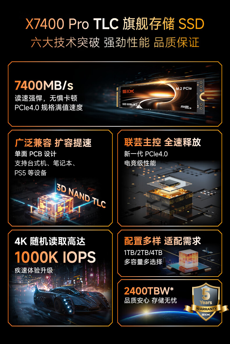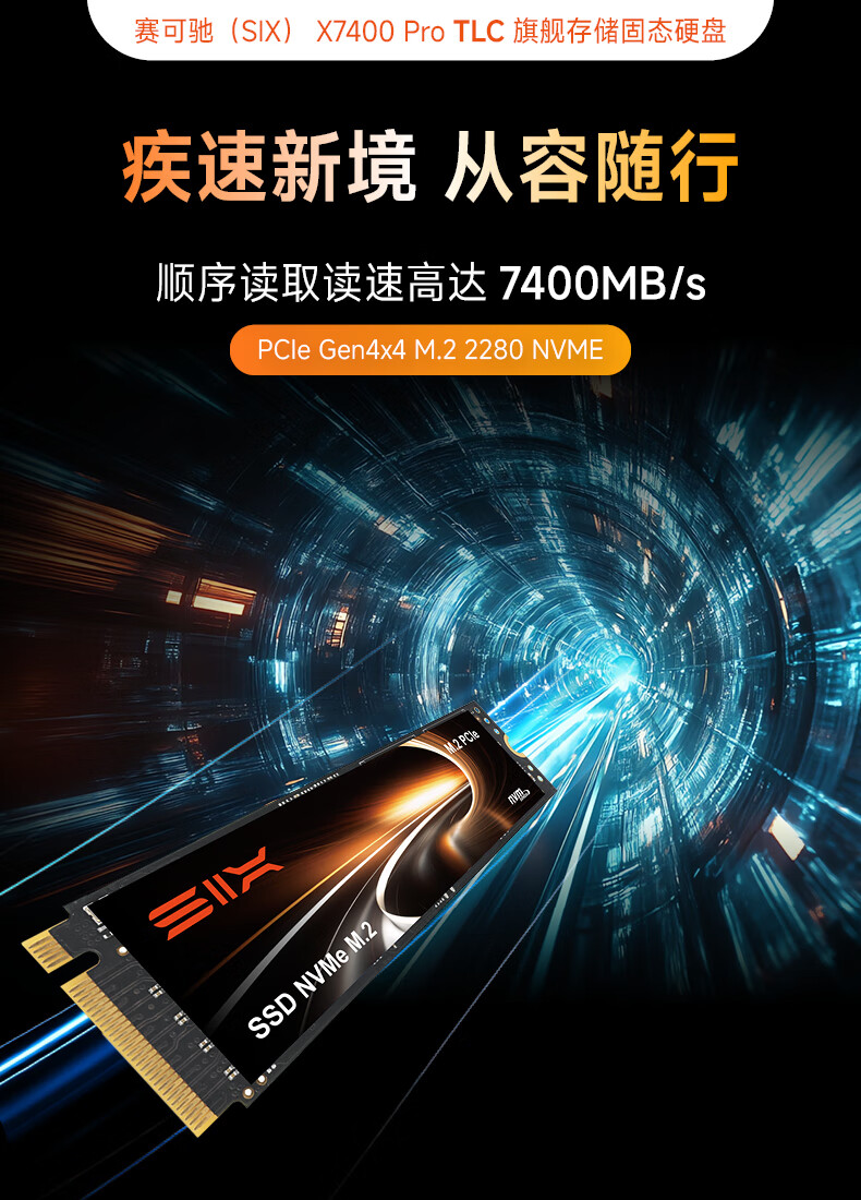赛可驰(SIX)PCIe4.0固态硬盘 NVMe M.2 SSD 7400MB/s读速 笔记本台式机PS5通用 优质TLC颗粒 X7400 |PCle4.0-7350MB/s读速 【1TB】赠散热马甲