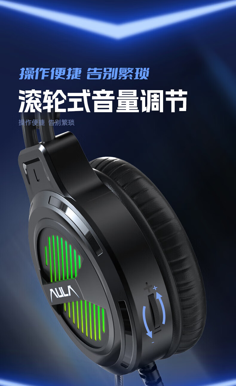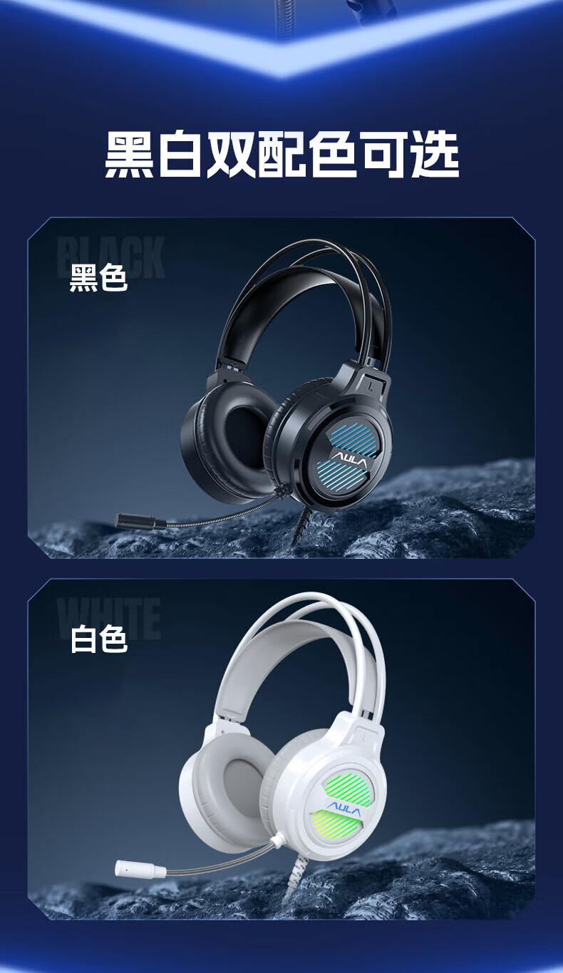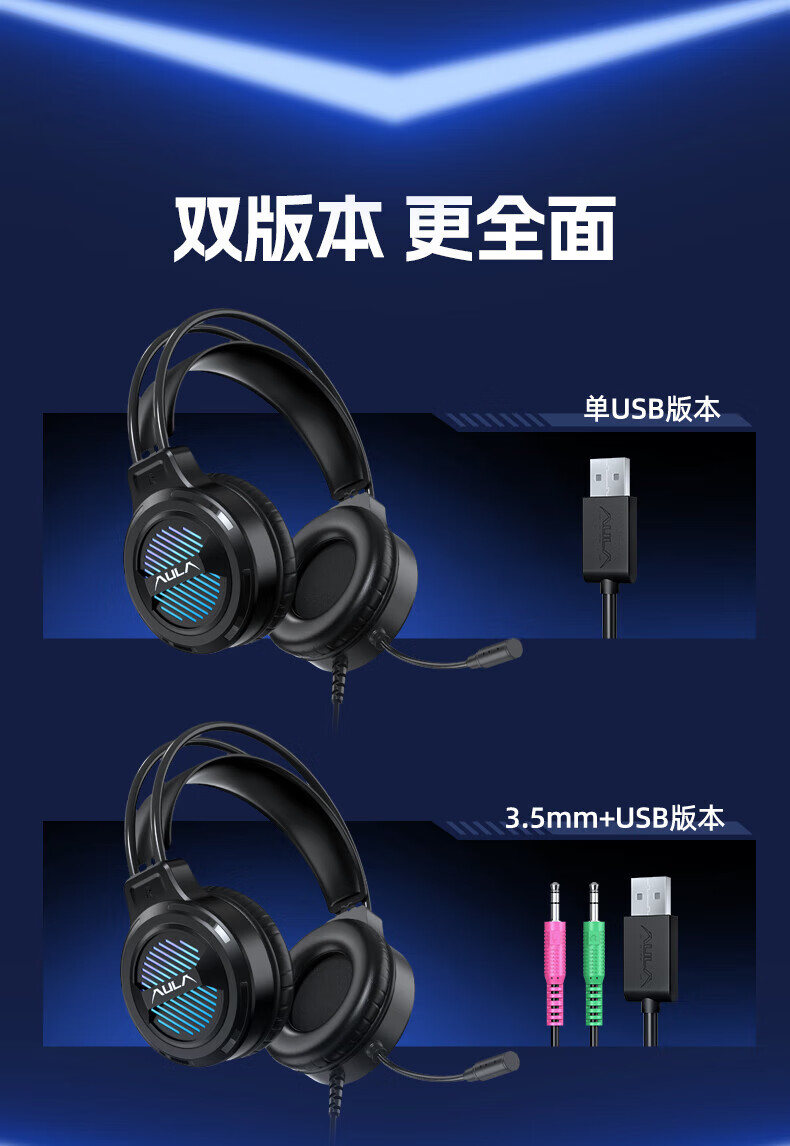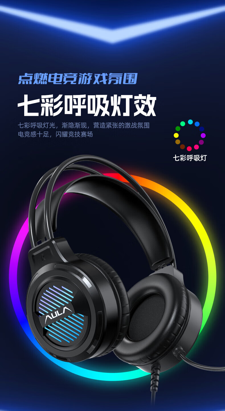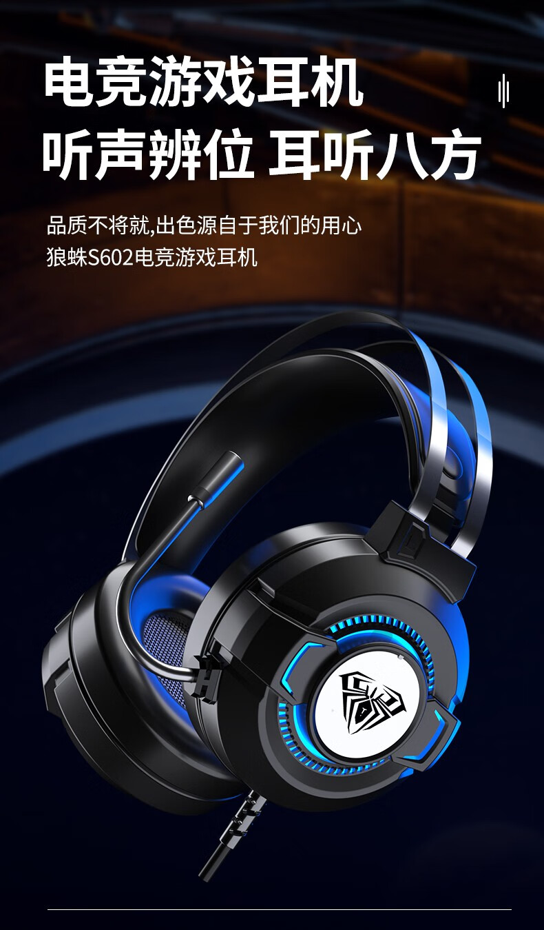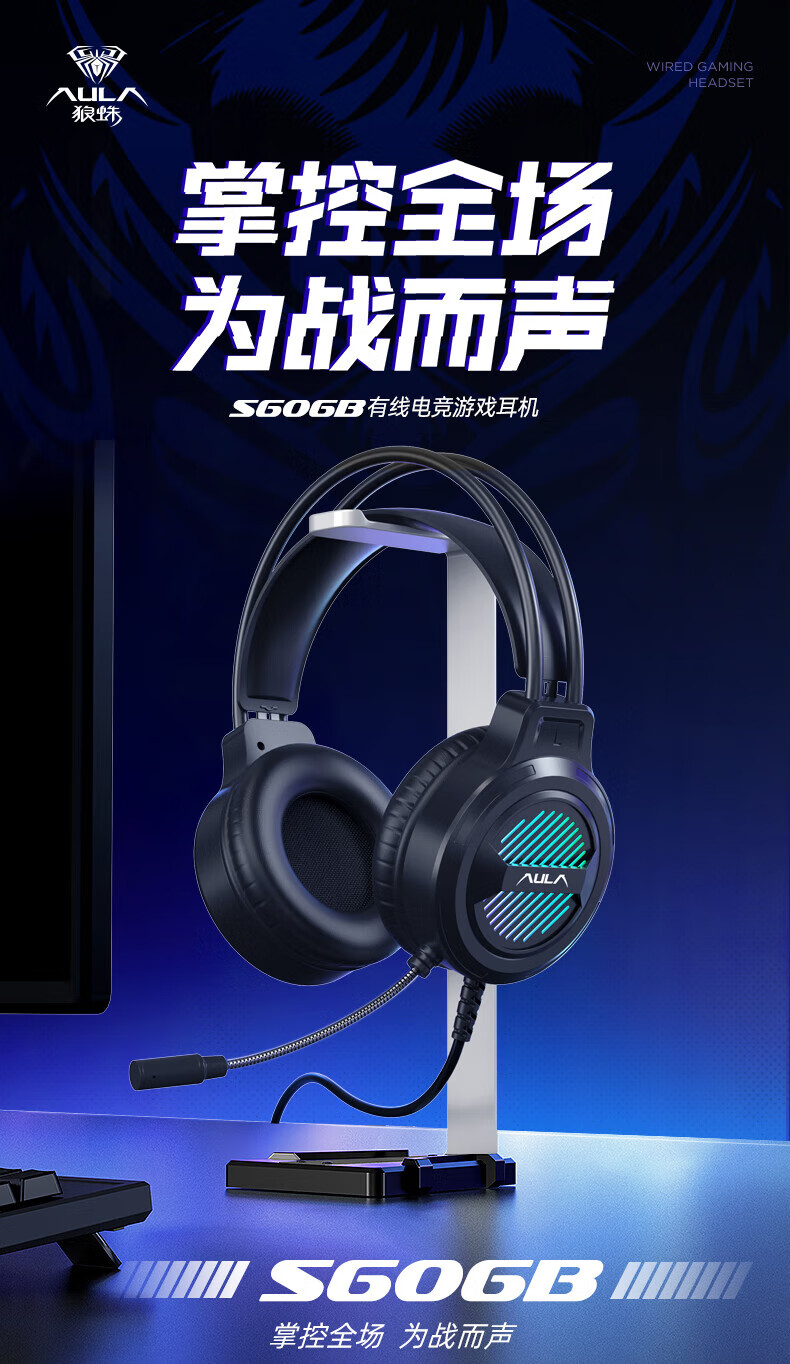 狼蛛(AULA)S606B 台式电脑耳机头戴式耳麦 游戏电竞耳机吃鸡7.1笔记本电脑耳麦重低音有线降噪听声辩位 S606B梦幻黑【USB+3.5接口】