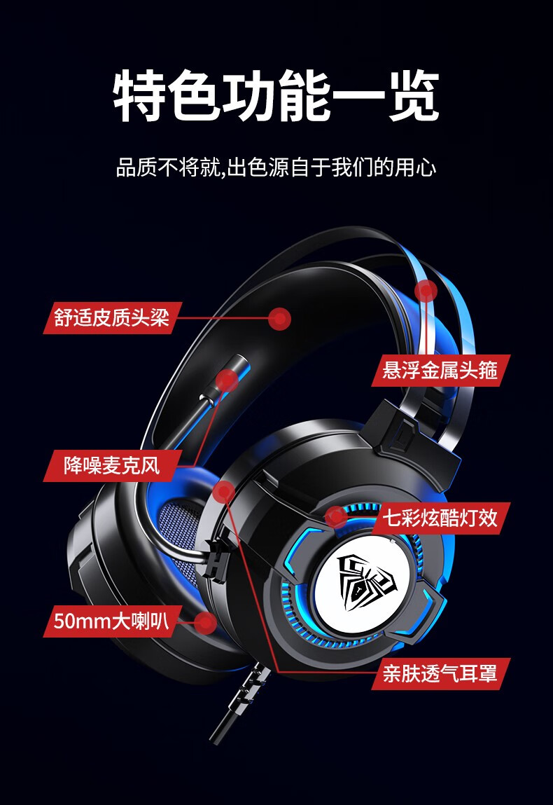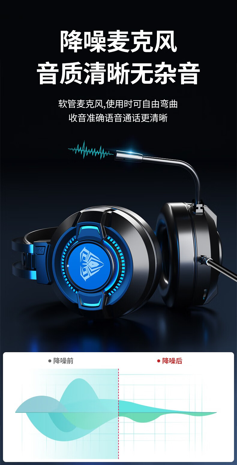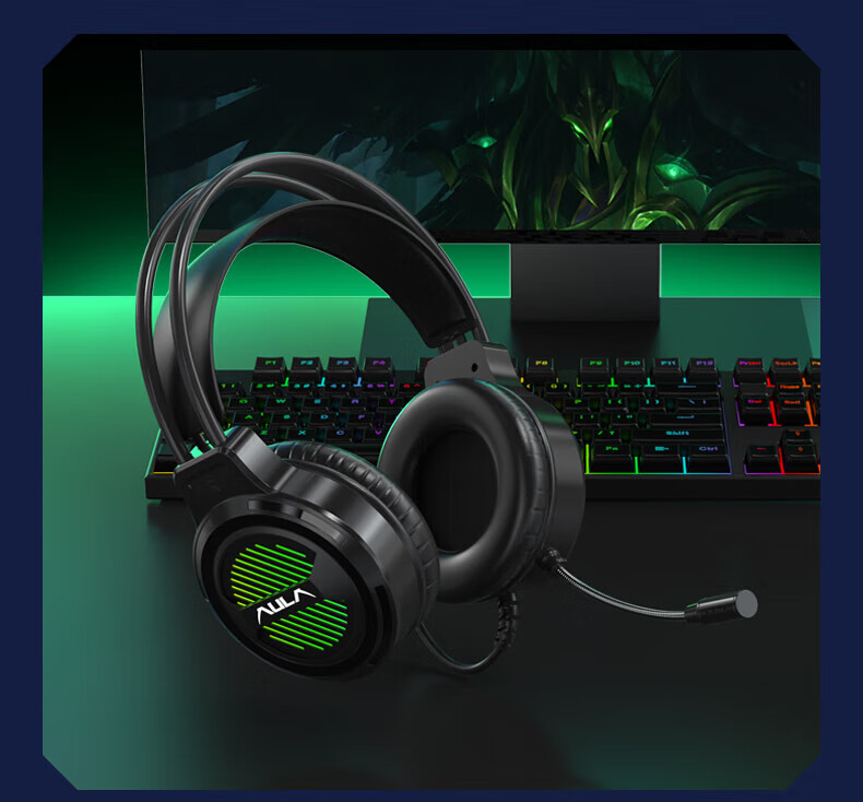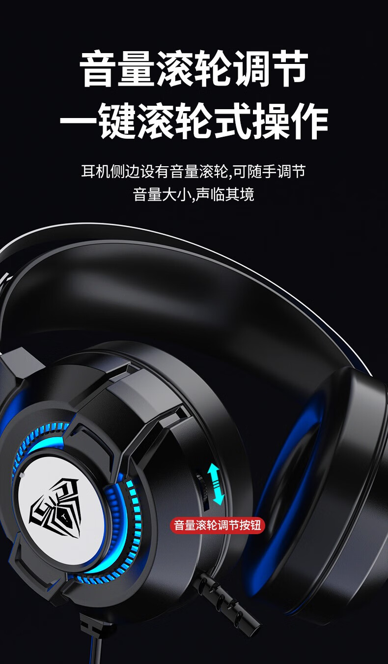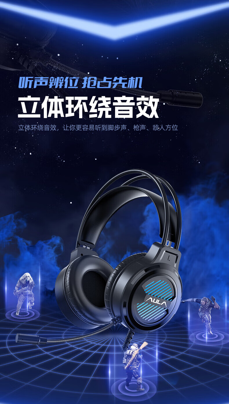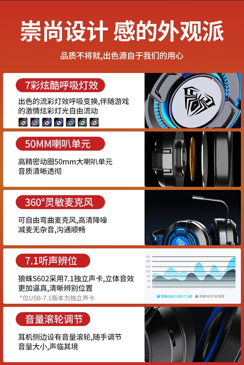狼蛛(AULA)S606B 台式电脑耳机头戴式耳麦 游戏电竞耳机吃鸡7.1笔记本电脑耳麦重低音有线降噪听声辩位 S606B梦幻黑【USB+3.5接口】