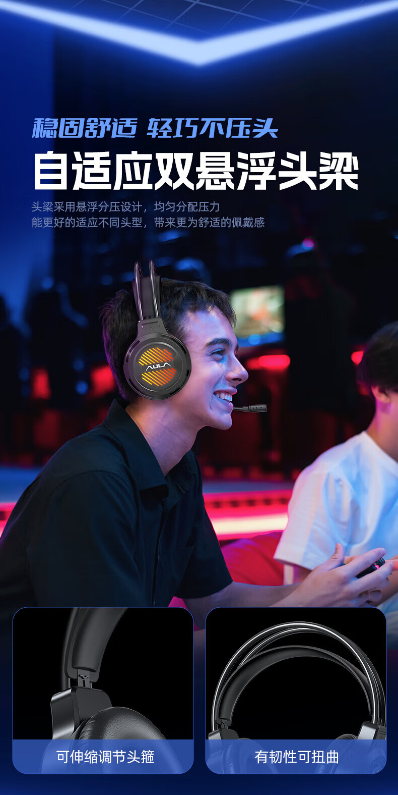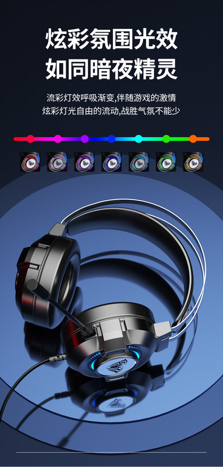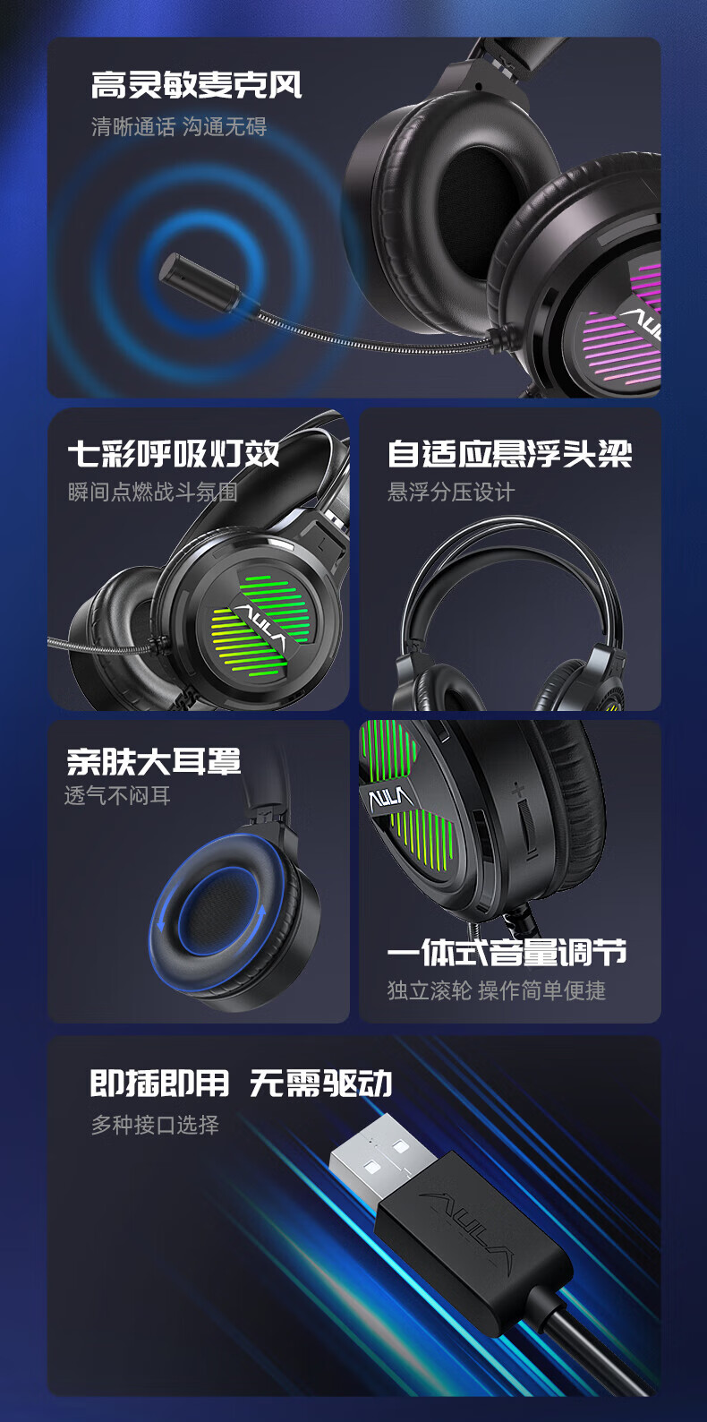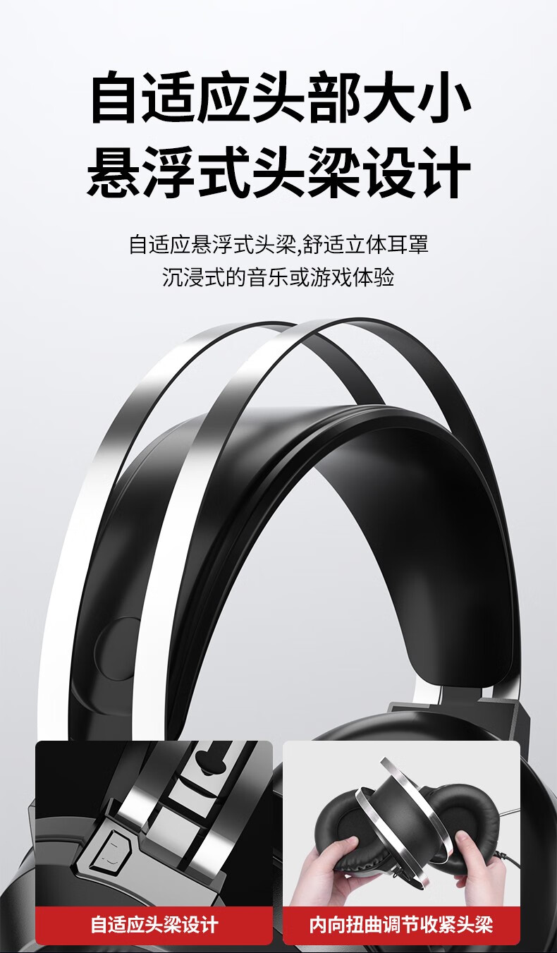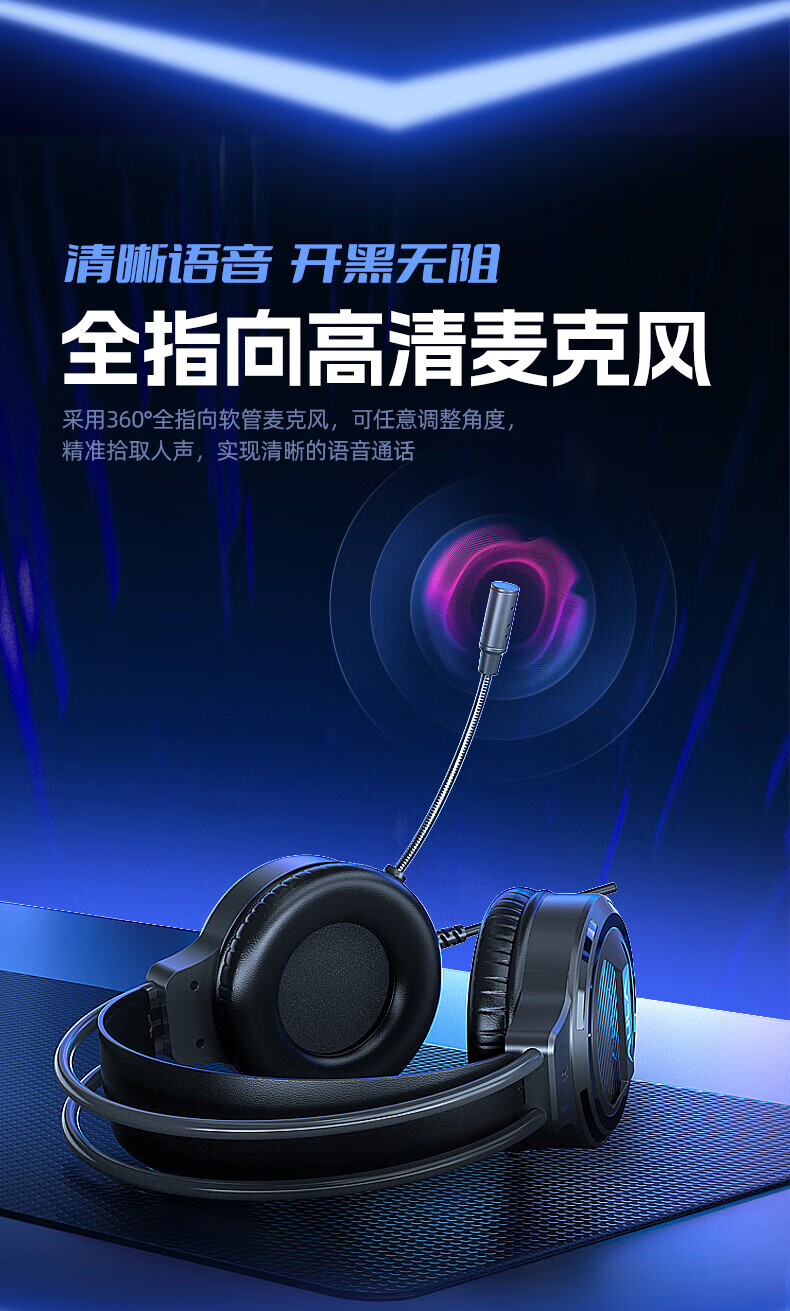 狼蛛(AULA)S606B 台式电脑耳机头戴式耳麦 游戏电竞耳机吃鸡7.1笔记本电脑耳麦重低音有线降噪听声辩位 S606B梦幻黑【USB+3.5接口】
