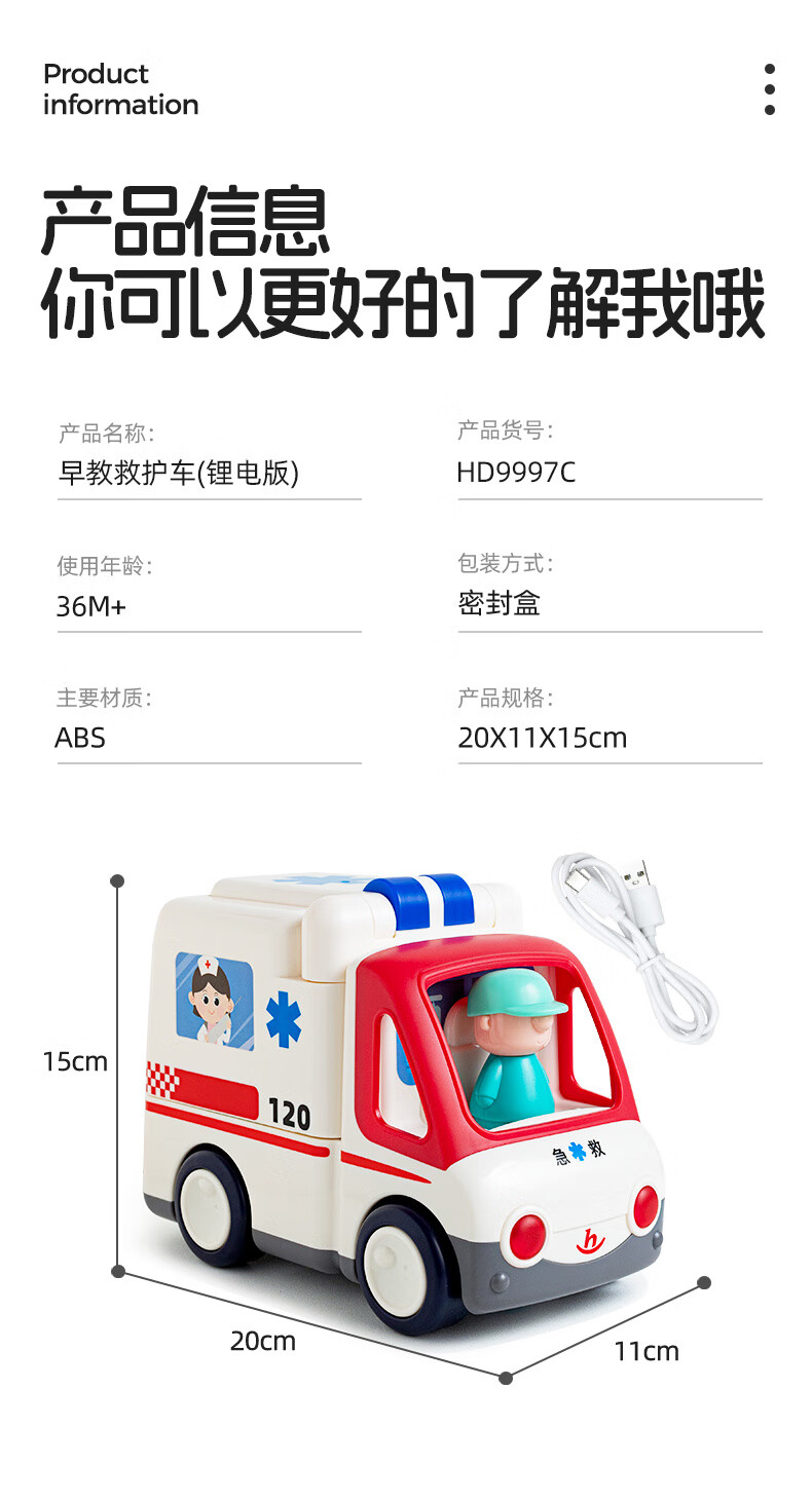 汇乐玩具拆装组合工具卡车救护消防警车儿童玩具车男女孩宝宝圣诞礼物 汇乐早教救护车C9997