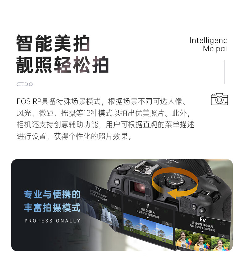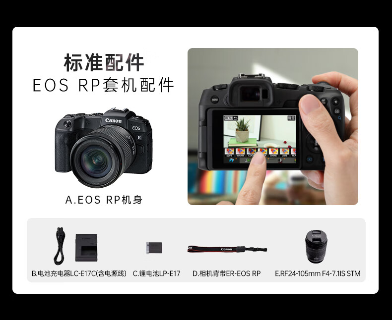 佳能(Canon)EOS RP 全画幅微单数码相机 24-105标准镜头套装 (约2620万像素/轻巧便携)
