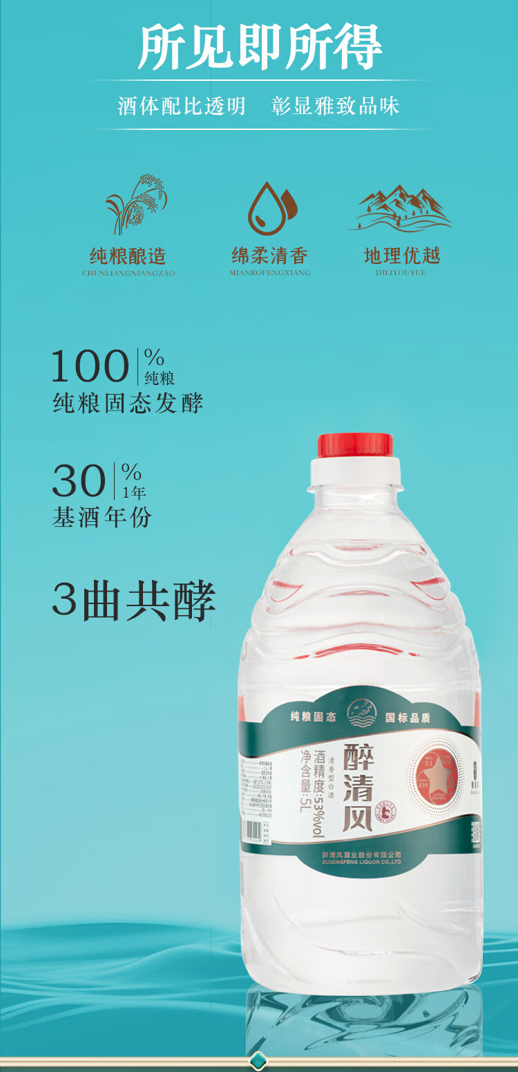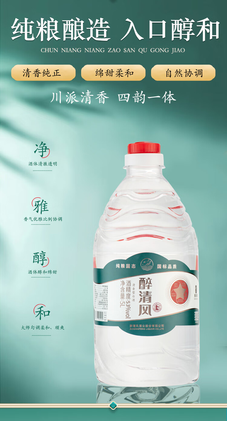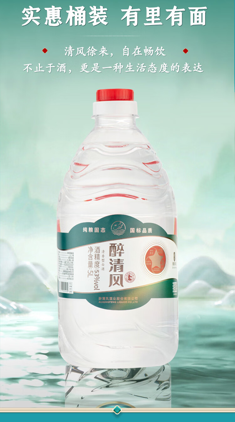 醉清风53度清香型桶装白酒5000mL纯粮酿造自饮泡水果口粮酒