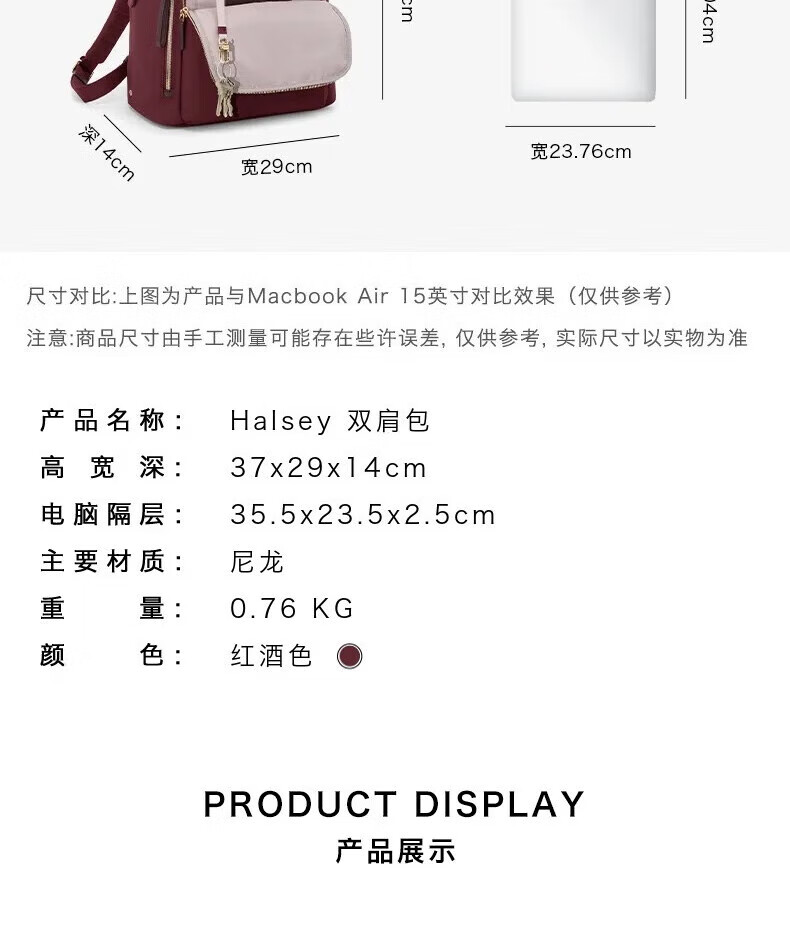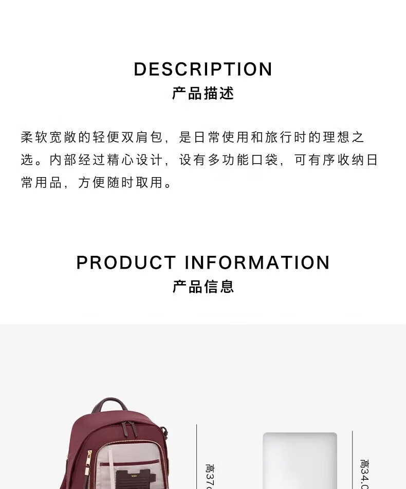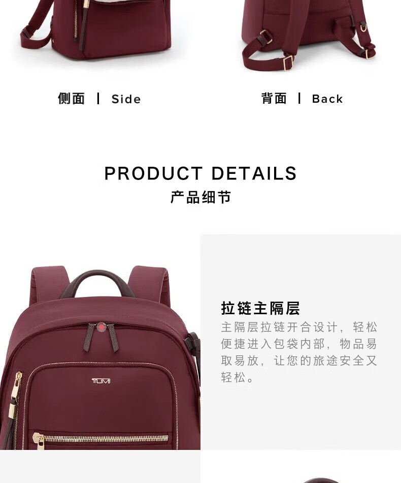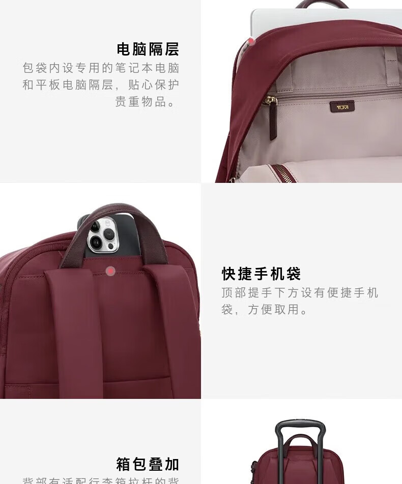 途明(TUMI)VOYAGEUR女士双肩包商务休闲通勤大容量电脑包 酒红色