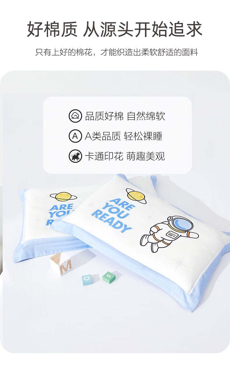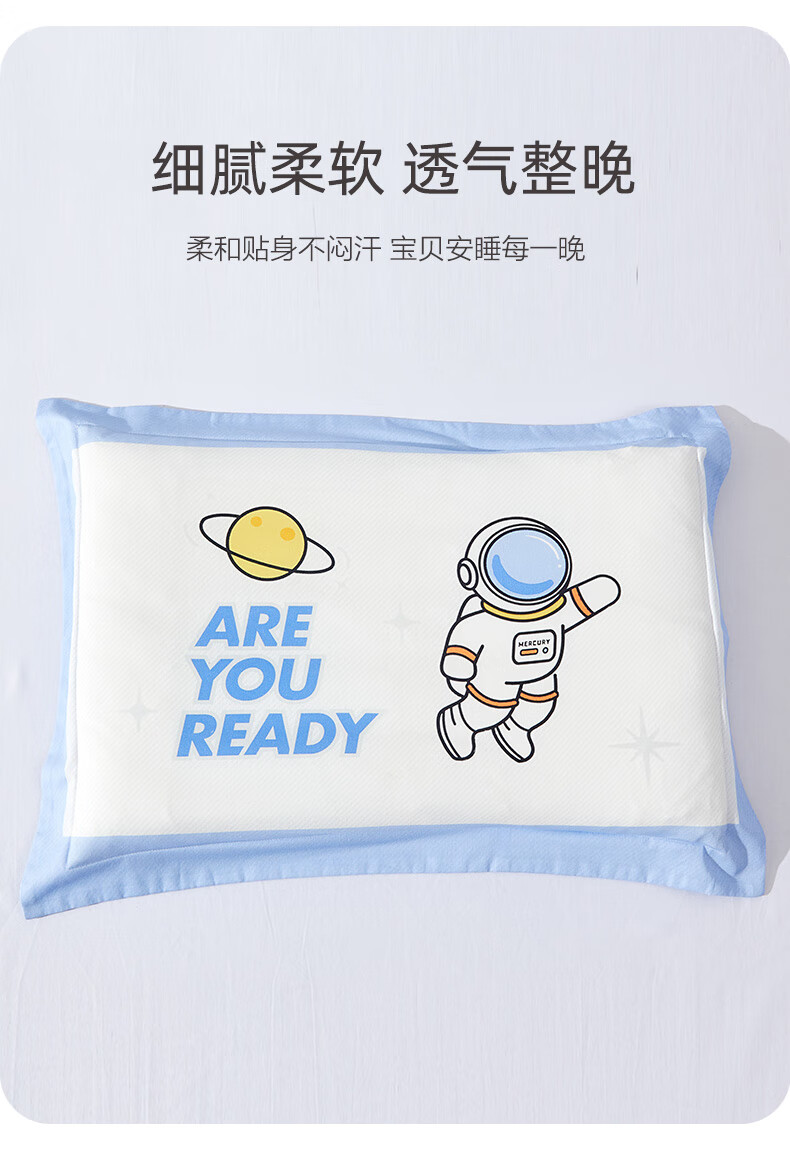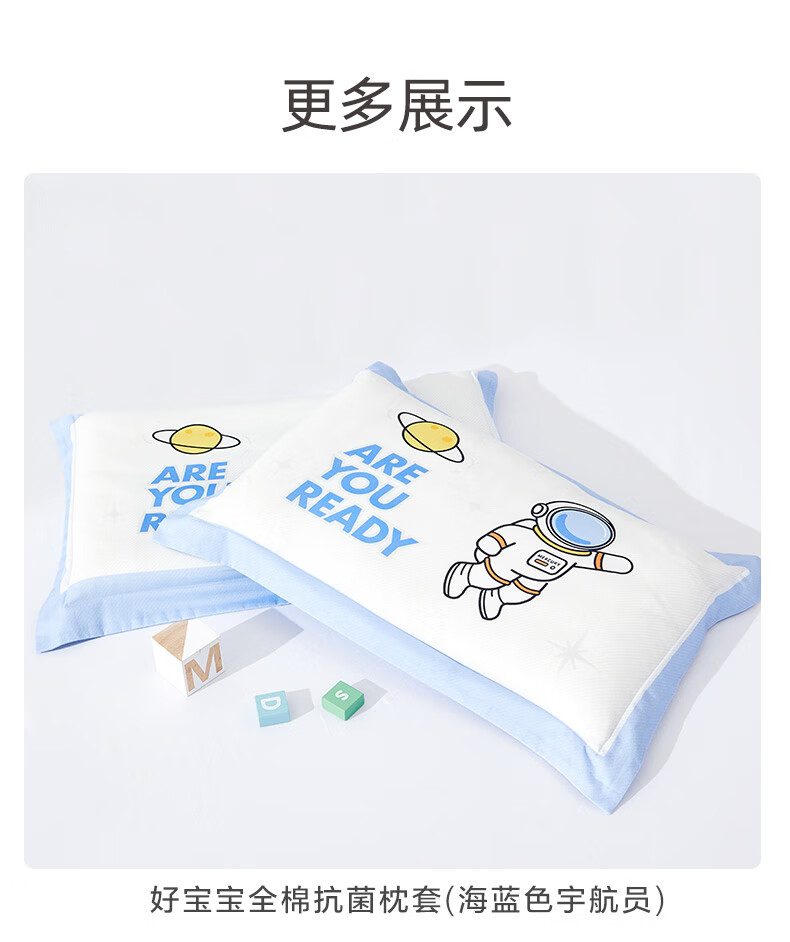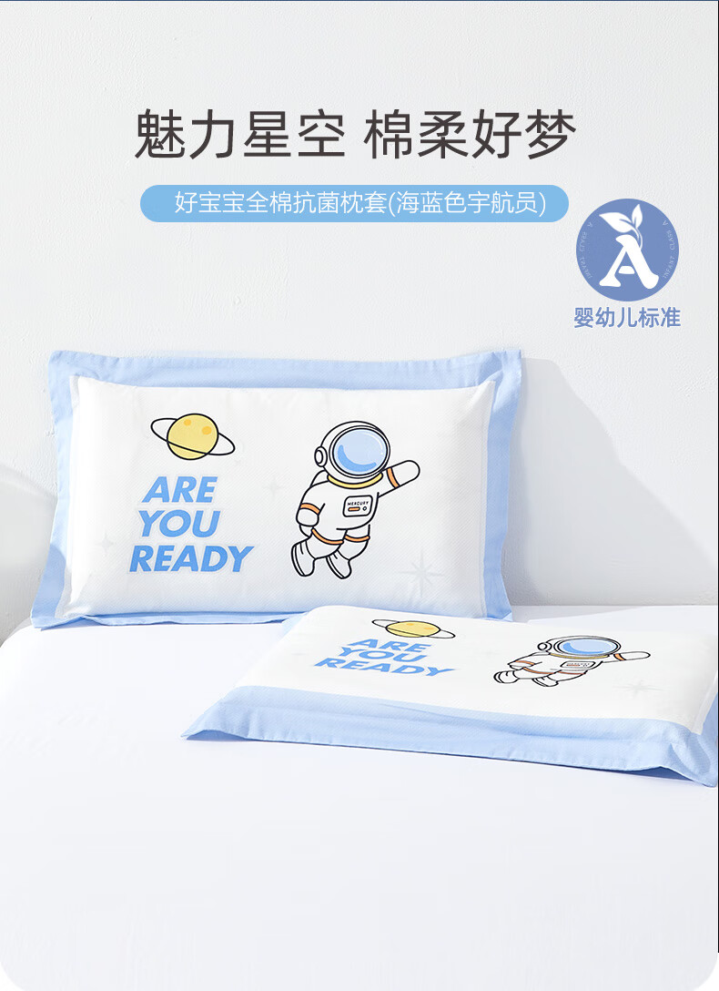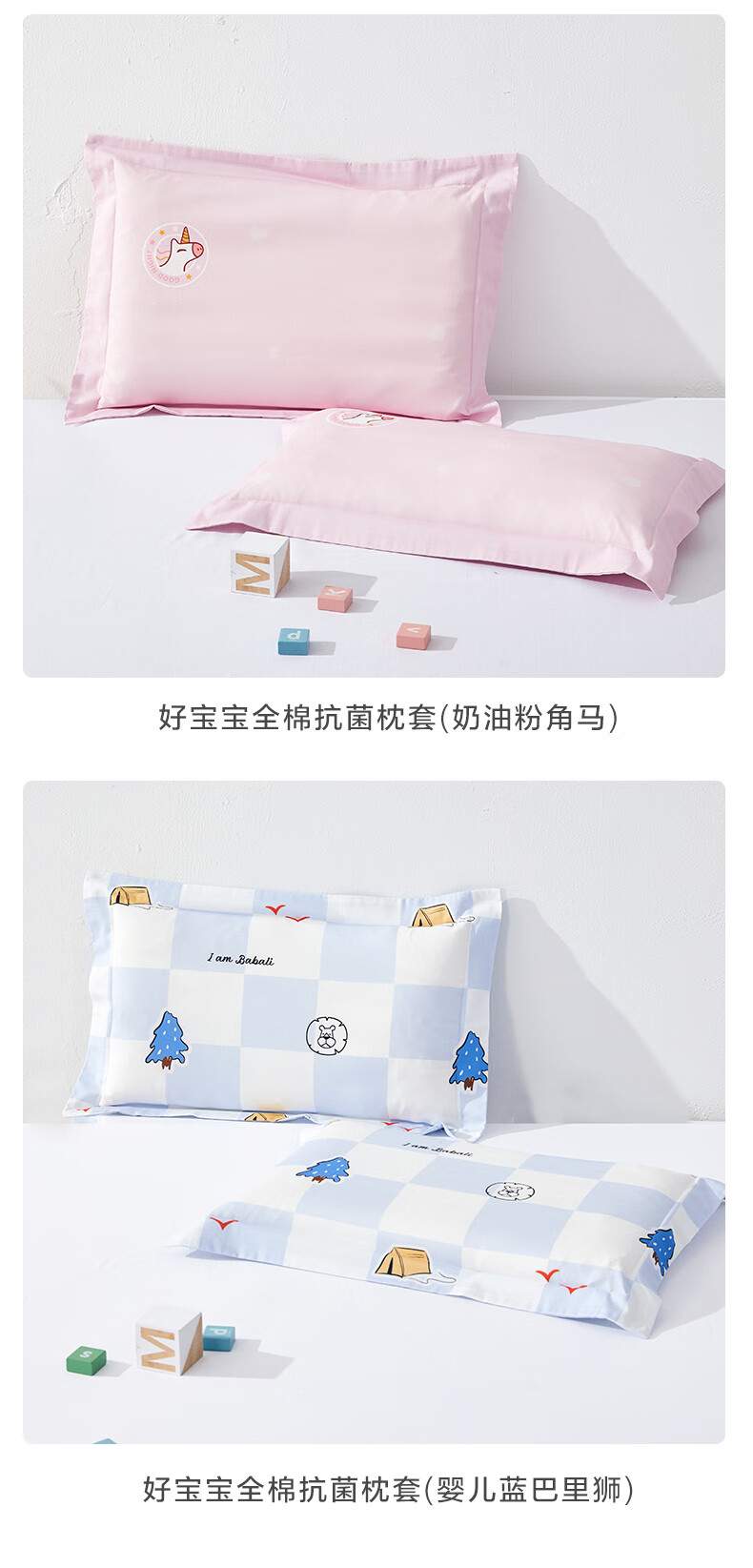 水星家纺枕套 100%全棉枕套 婴幼儿A类标准纯棉印花抗菌枕套单只装 婴幼A类全棉抗菌枕套 单只 50cm*30cm
