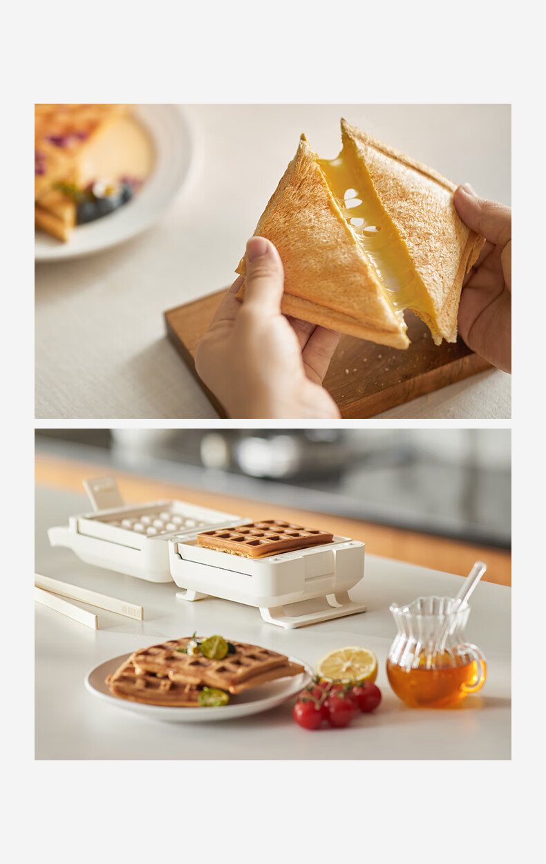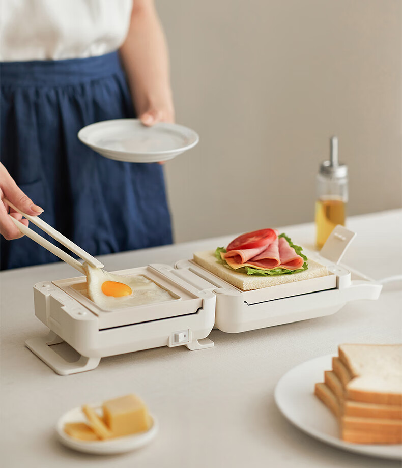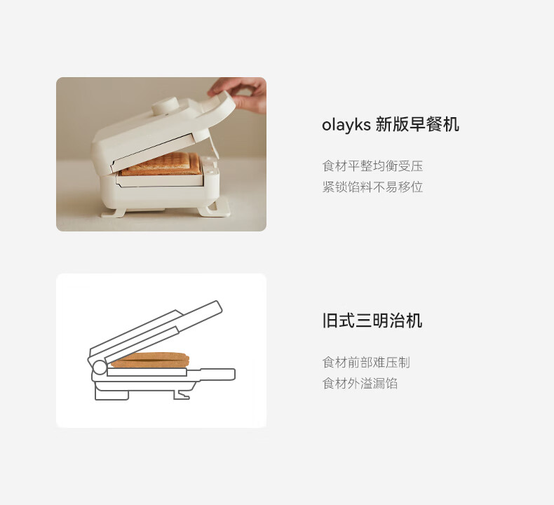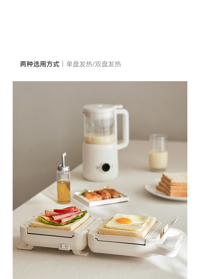 olayks立时 三明治机早餐机多功能华夫饼机面包机小型电饼铛双面热压吐司机加厚封边可拆洗盘