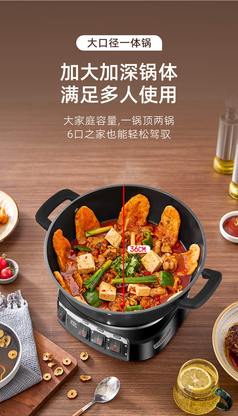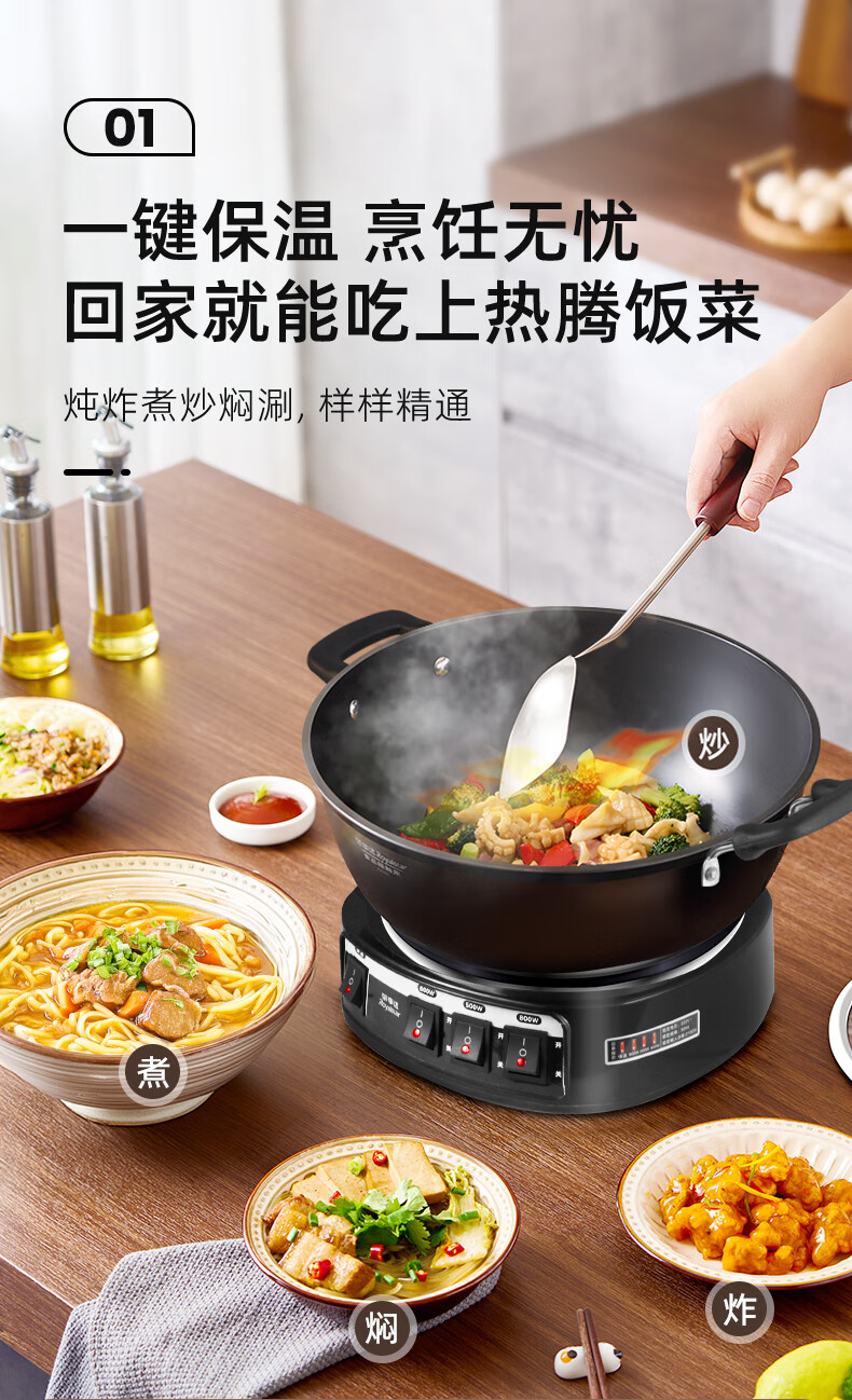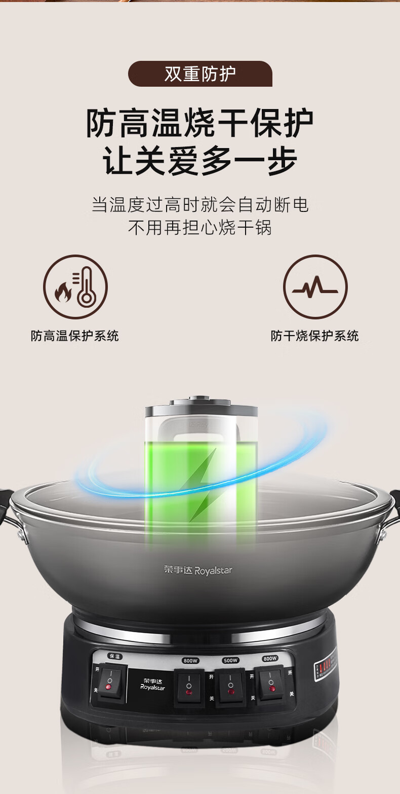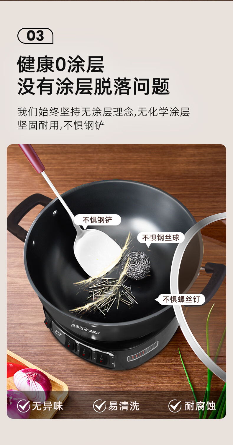 荣事达(Royalstar)电炒锅电蒸锅电煮锅山东锅家用铸铁炖蒸煮不粘锅一体多功能蒸笼蒸包子电火锅RS-FT36