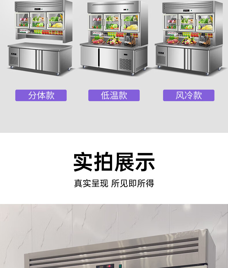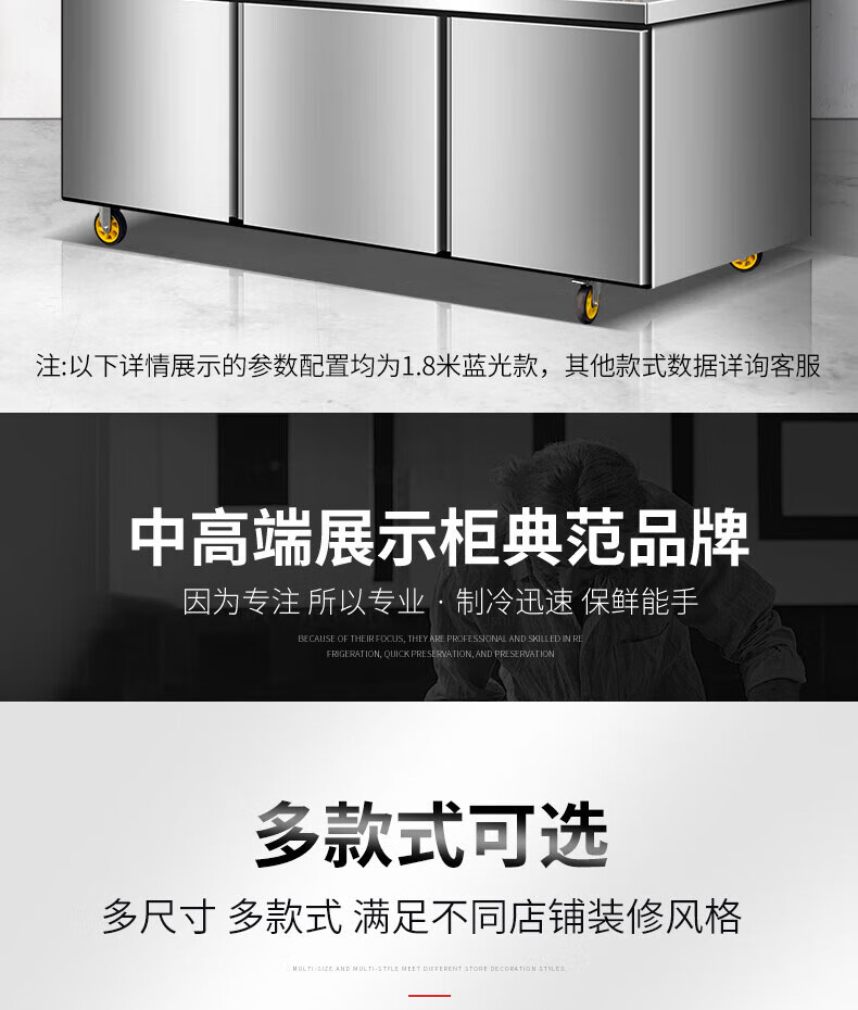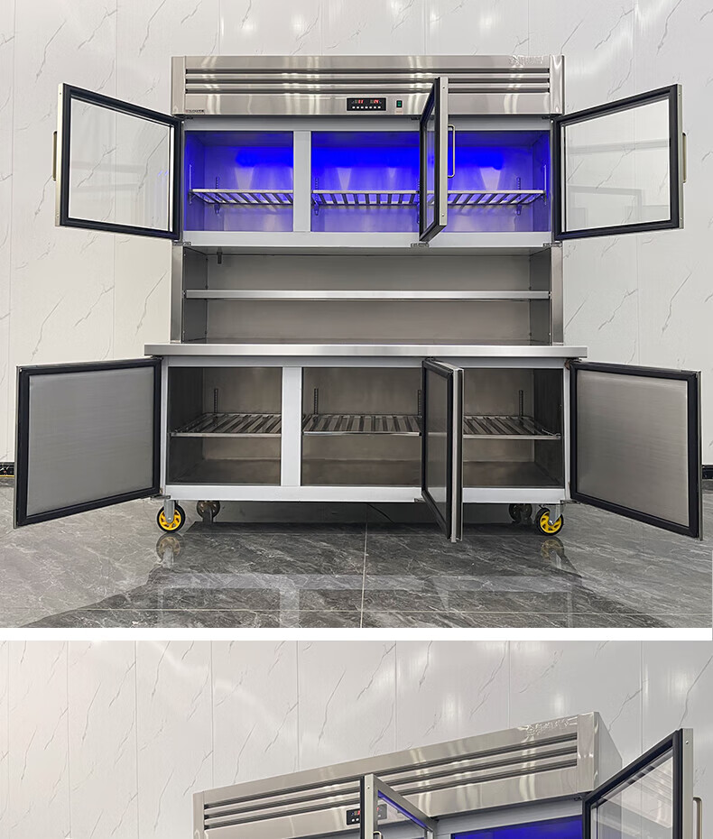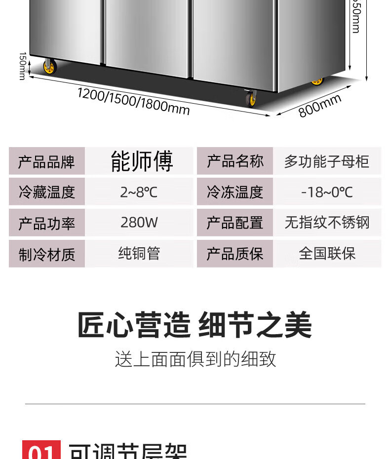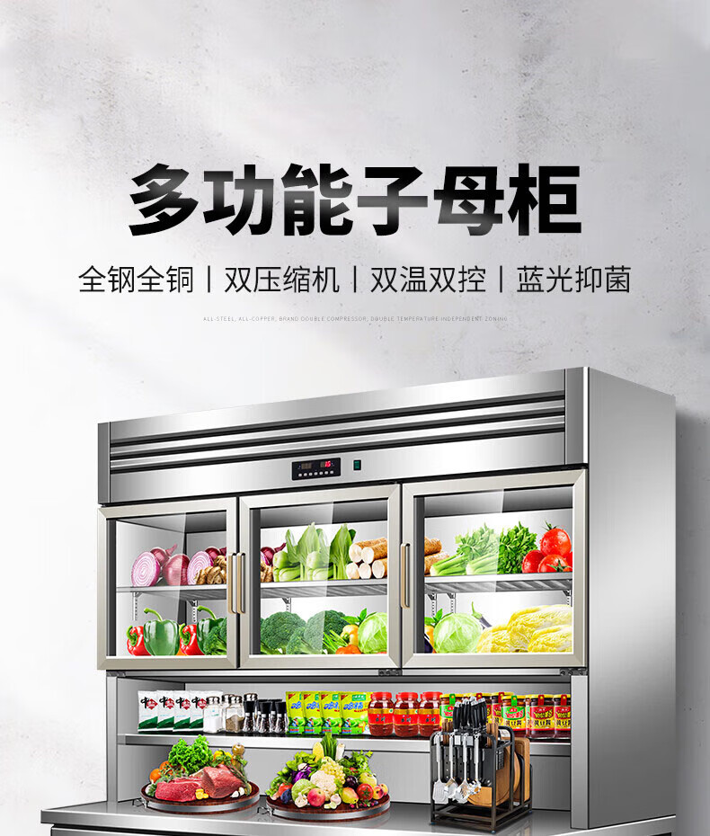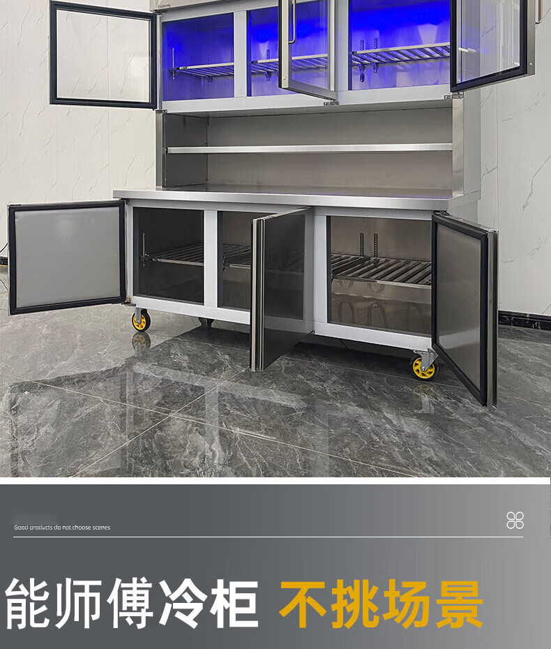 能师傅子母柜冰箱商用风冷无霜冷藏冷冻双温一体餐饮饭店食堂奶茶店厨房专用多功能不锈钢立式操作台冰柜 1.8米蓝光款【上下双温】