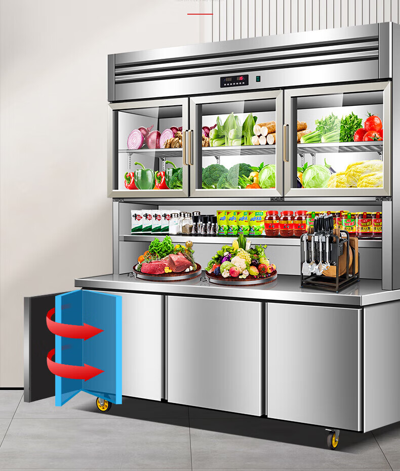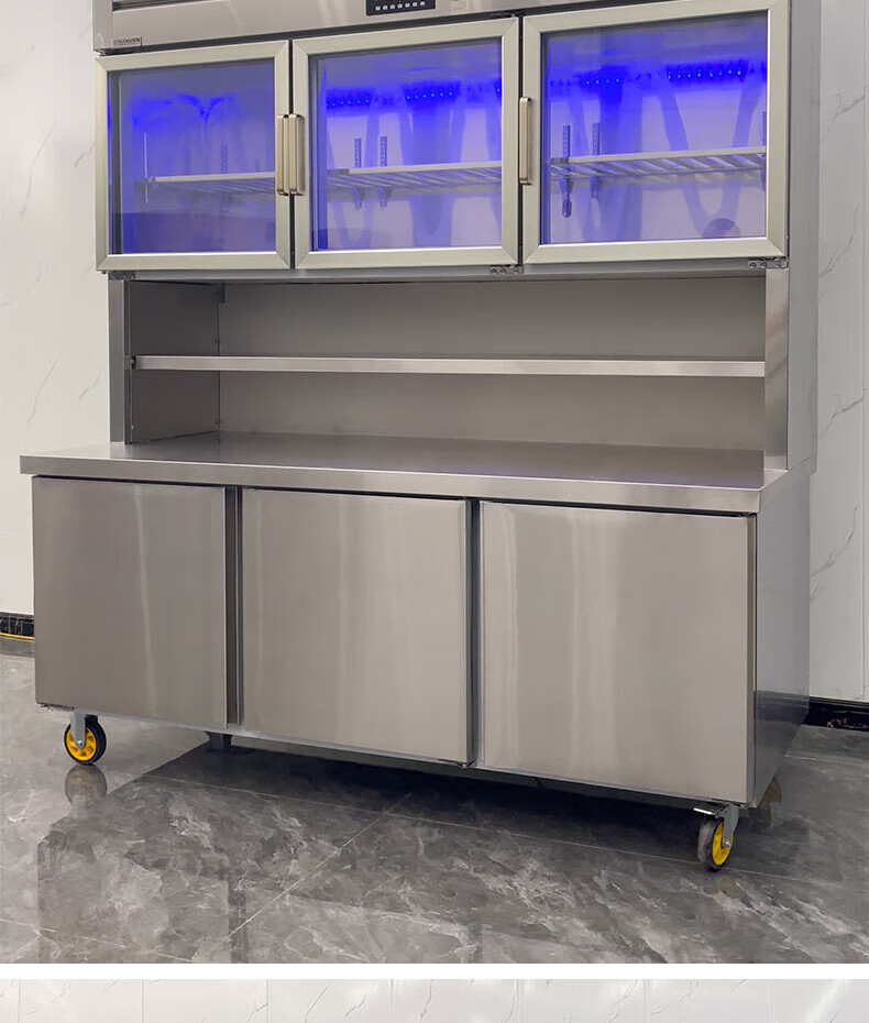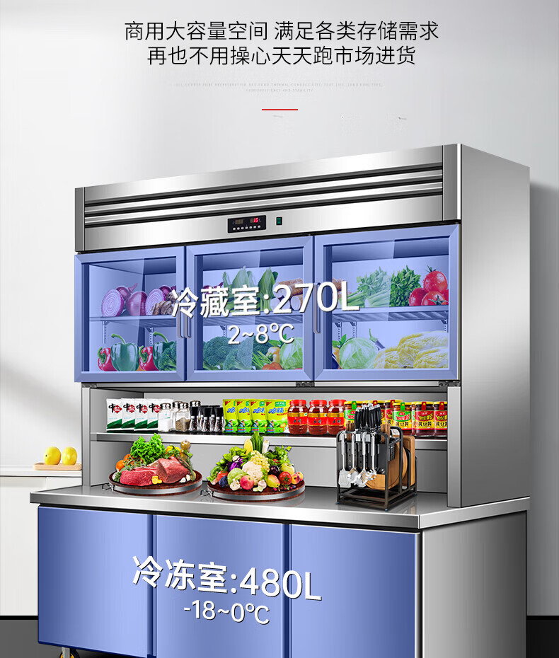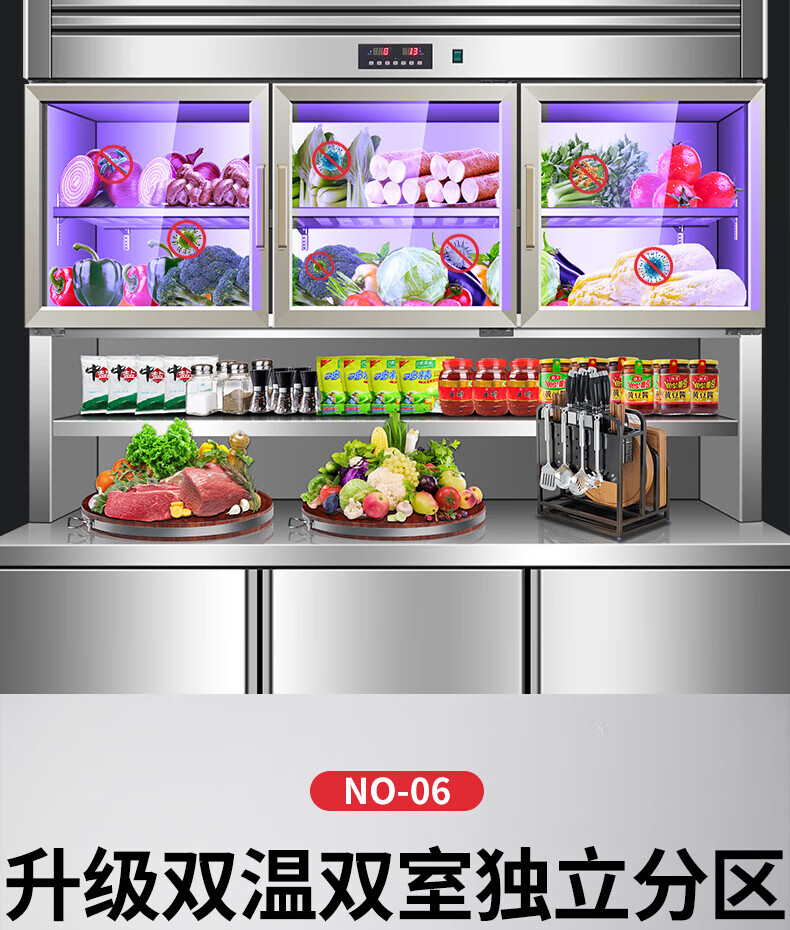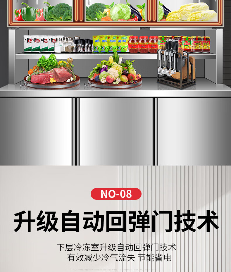能师傅子母柜冰箱商用风冷无霜冷藏冷冻双温一体餐饮饭店食堂奶茶店厨房专用多功能不锈钢立式操作台冰柜 1.8米蓝光款【上下双温】