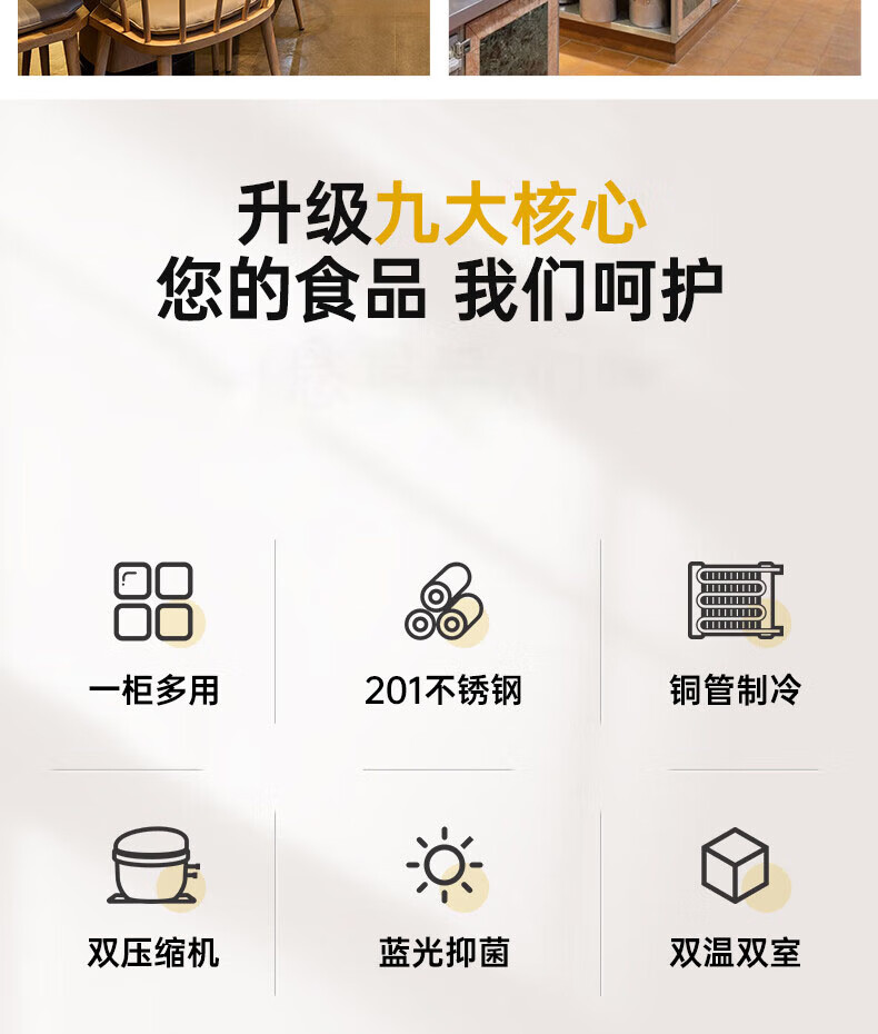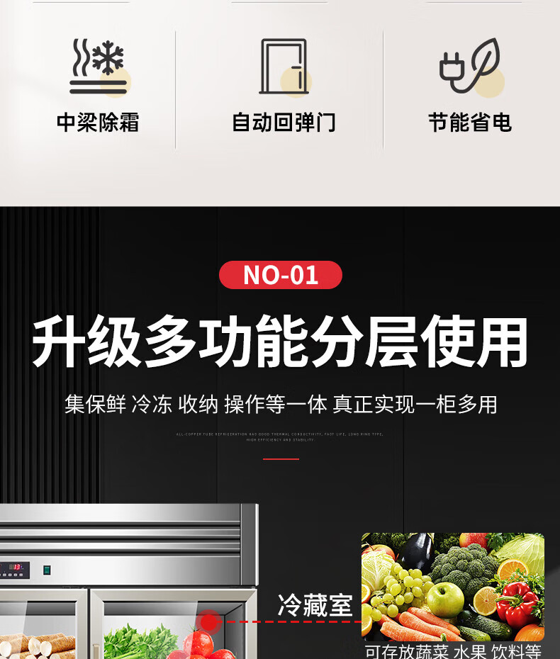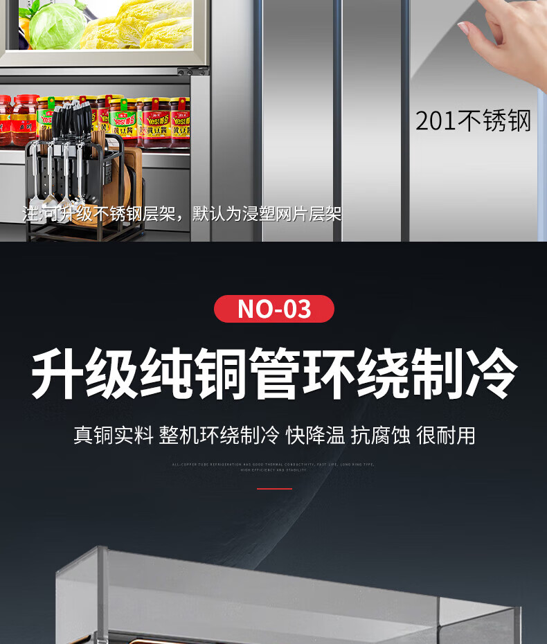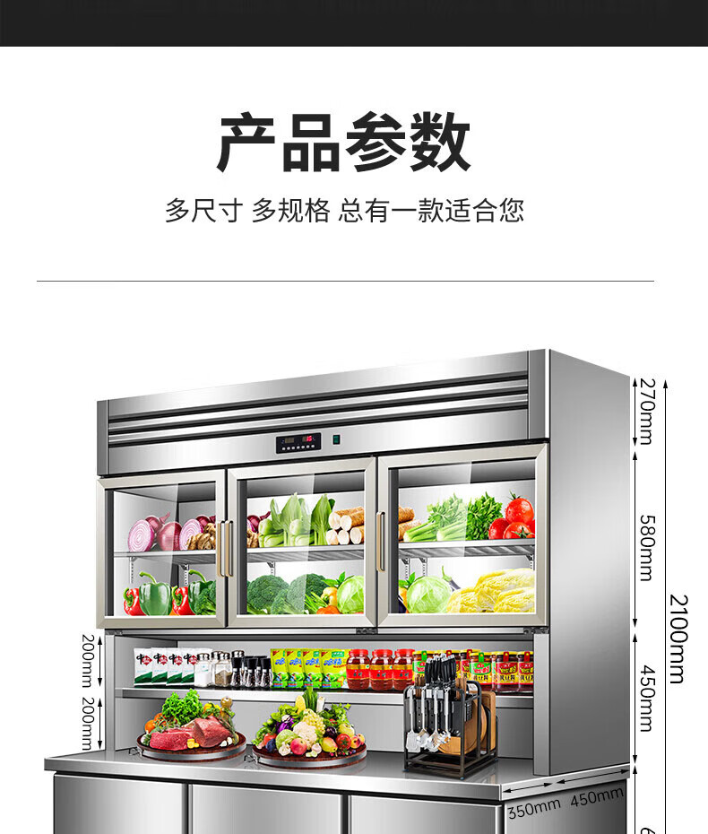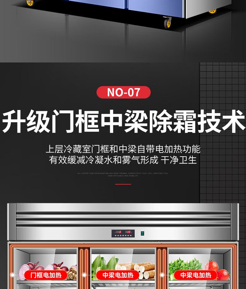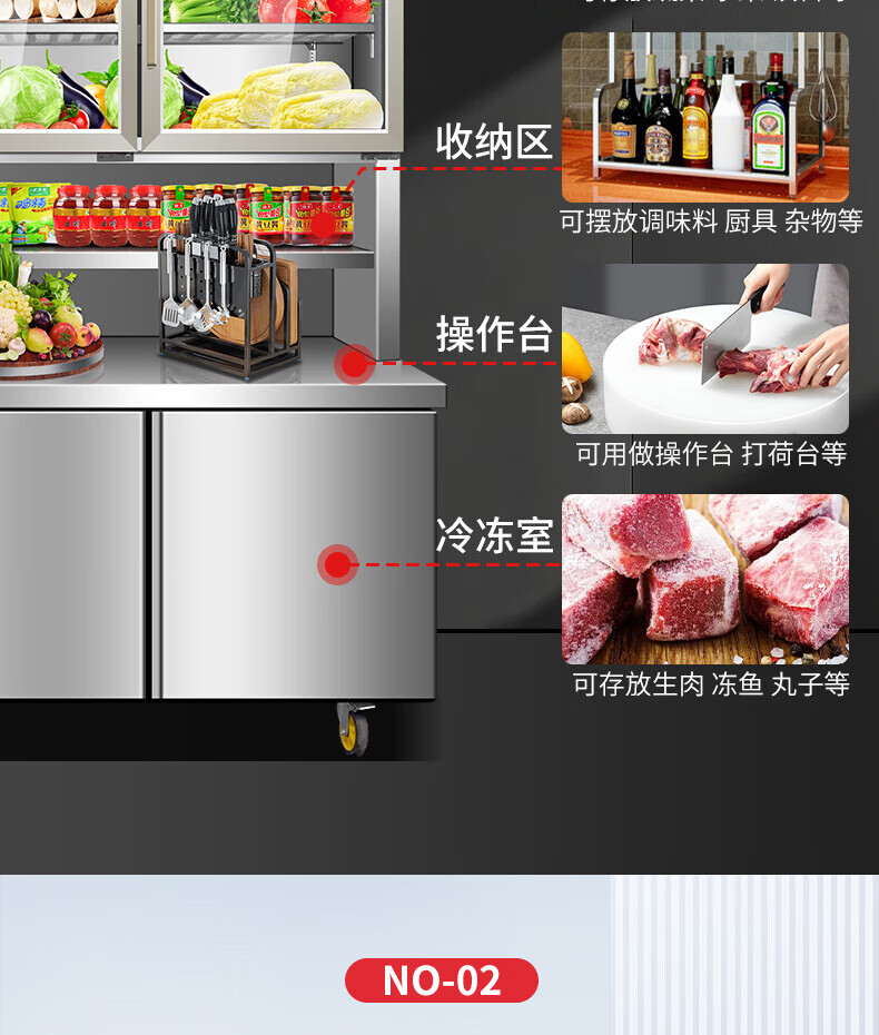 能师傅子母柜冰箱商用风冷无霜冷藏冷冻双温一体餐饮饭店食堂奶茶店厨房专用多功能不锈钢立式操作台冰柜 1.8米蓝光款【上下双温】
