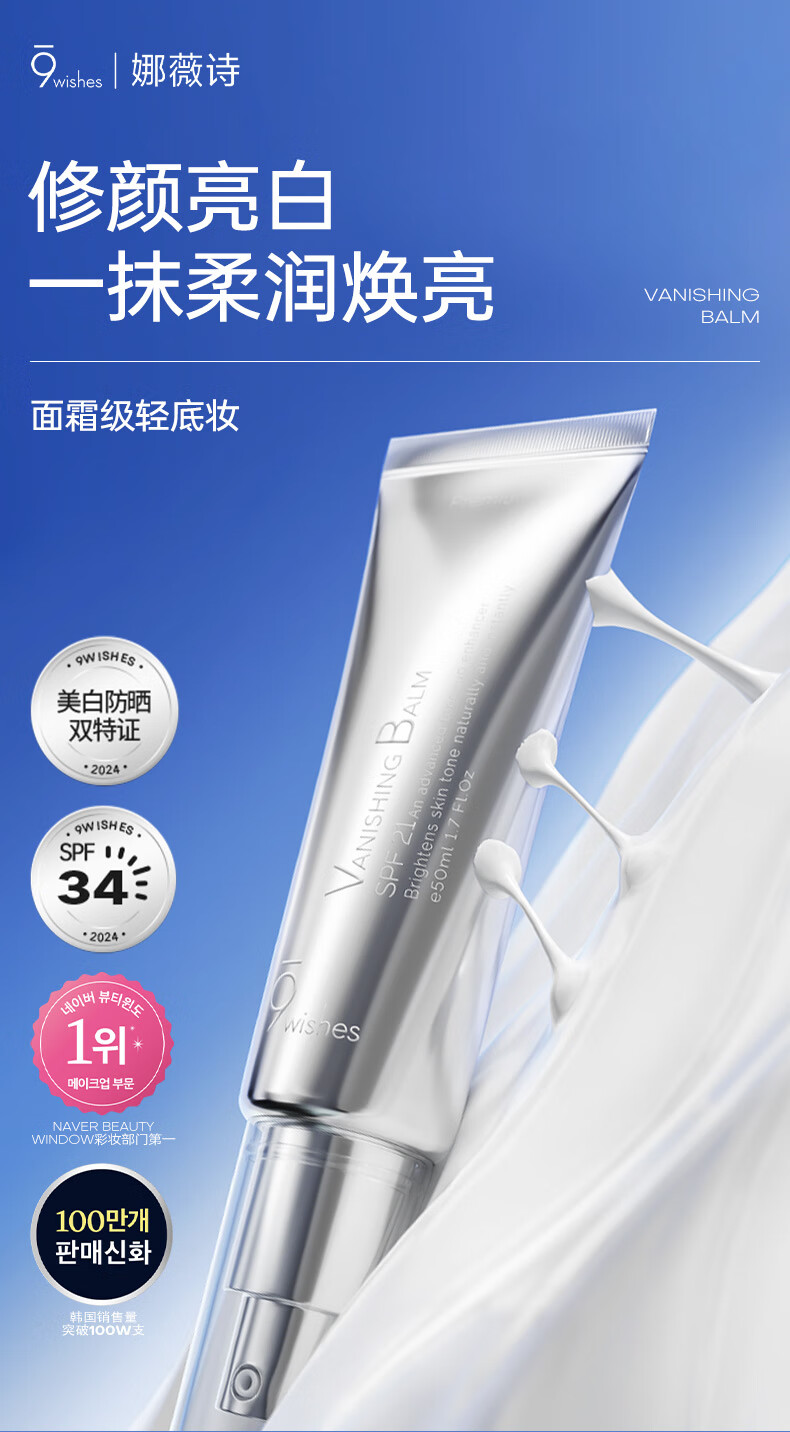 9wishes素颜霜美白防晒隔离懒人BB霜遮瑕防水轻美颜一支多效50ml伪素颜
