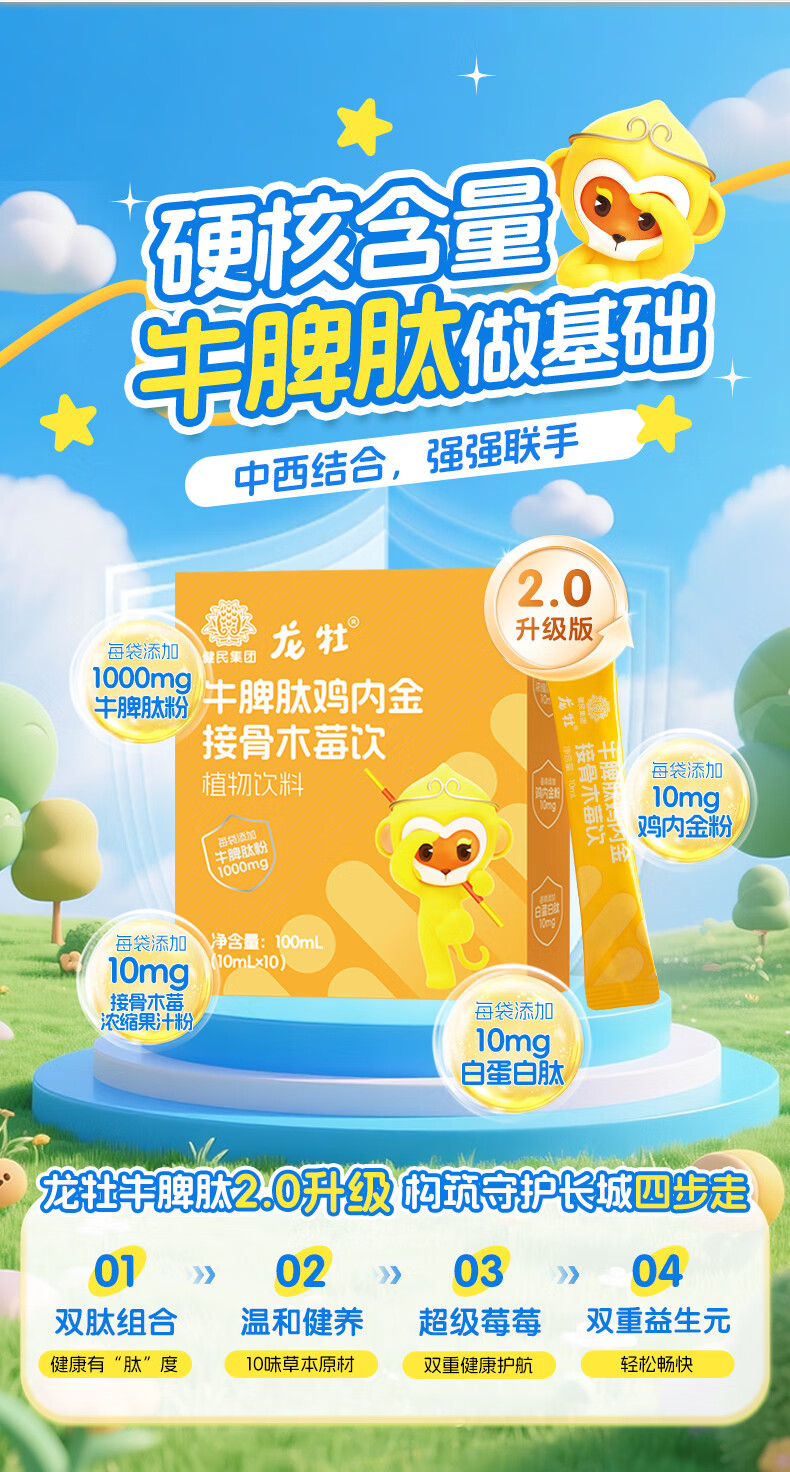 龙牡牛脾肽鸡内金接骨木莓饮儿童营养品小分子活性牛脾肽粉官方旗舰店 【3盒】轻度优惠装,1天1条,可喝30天