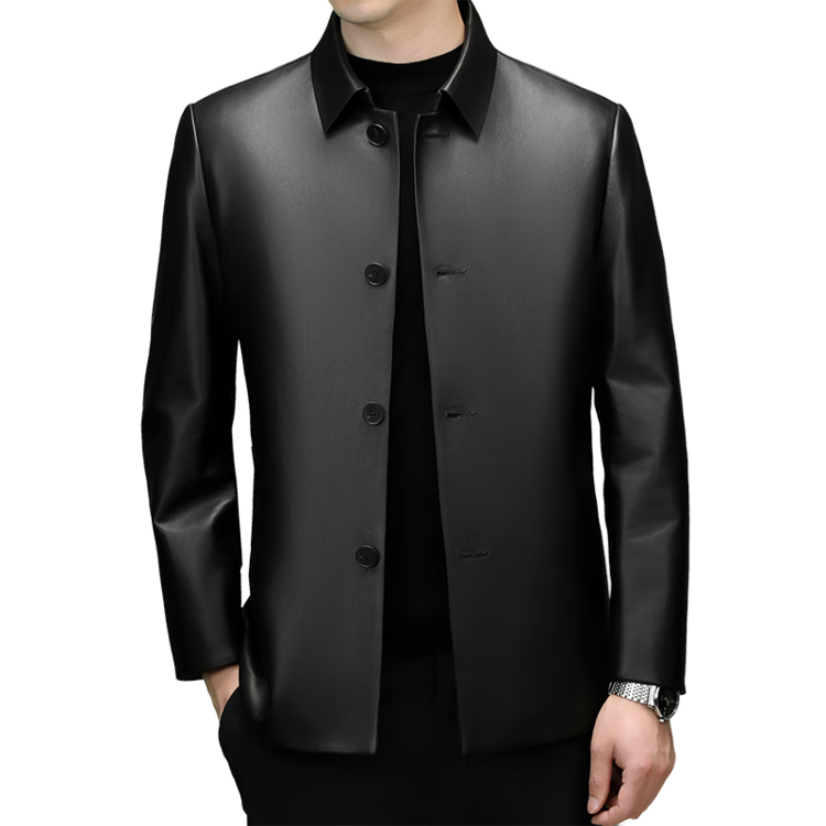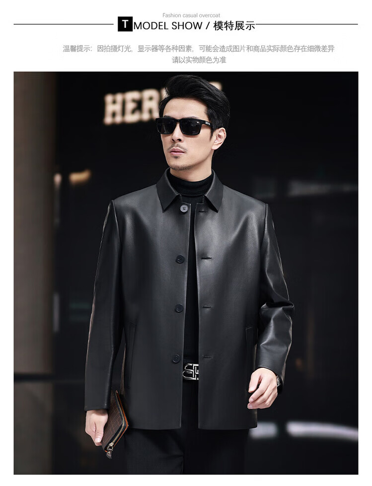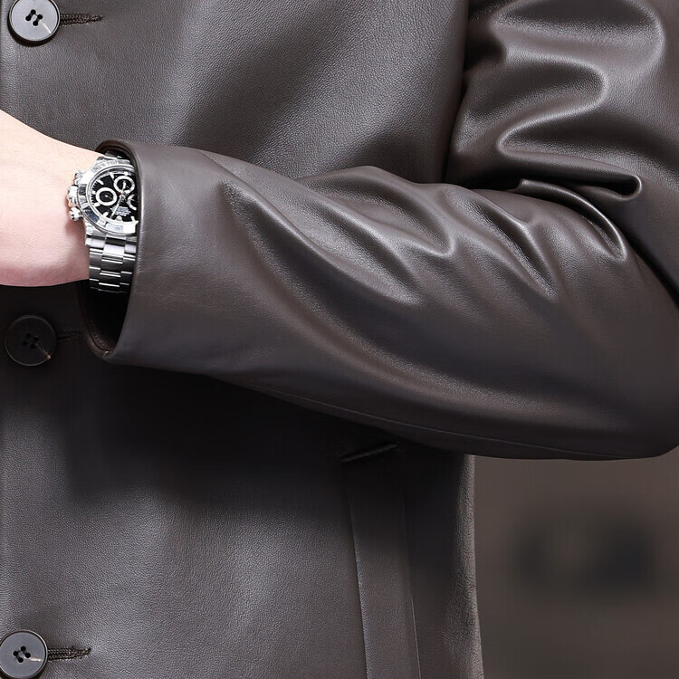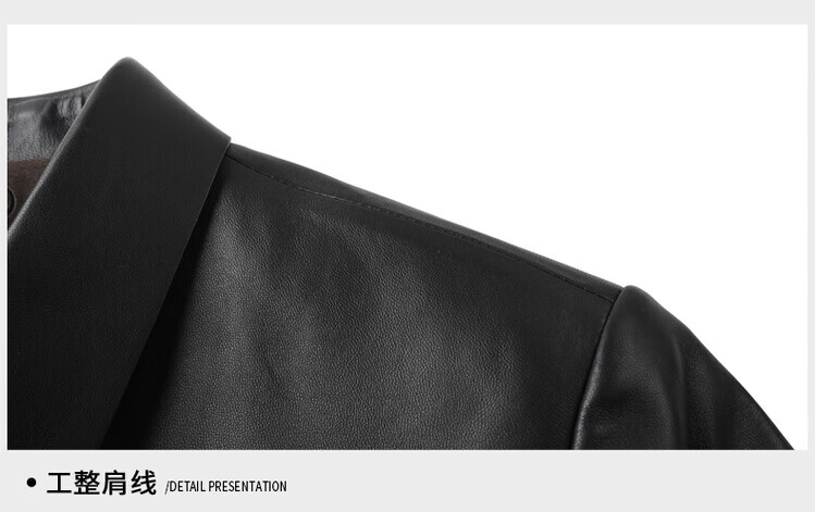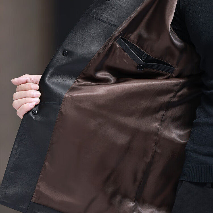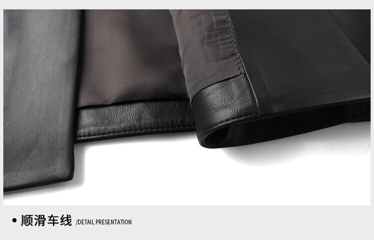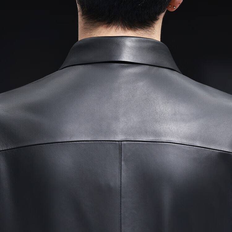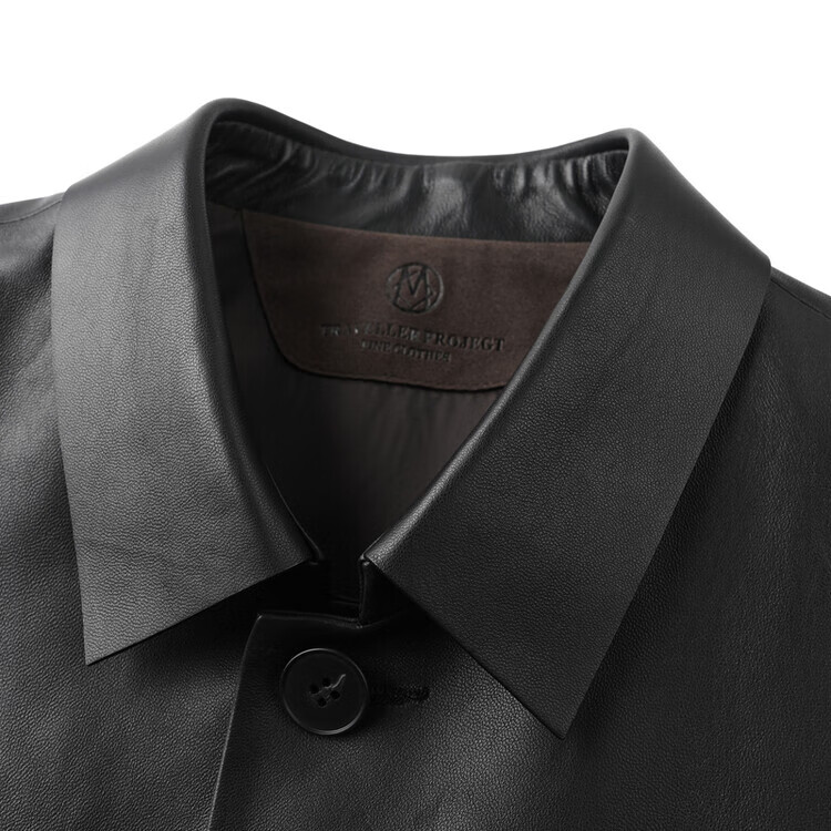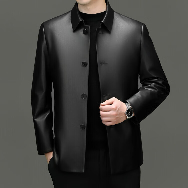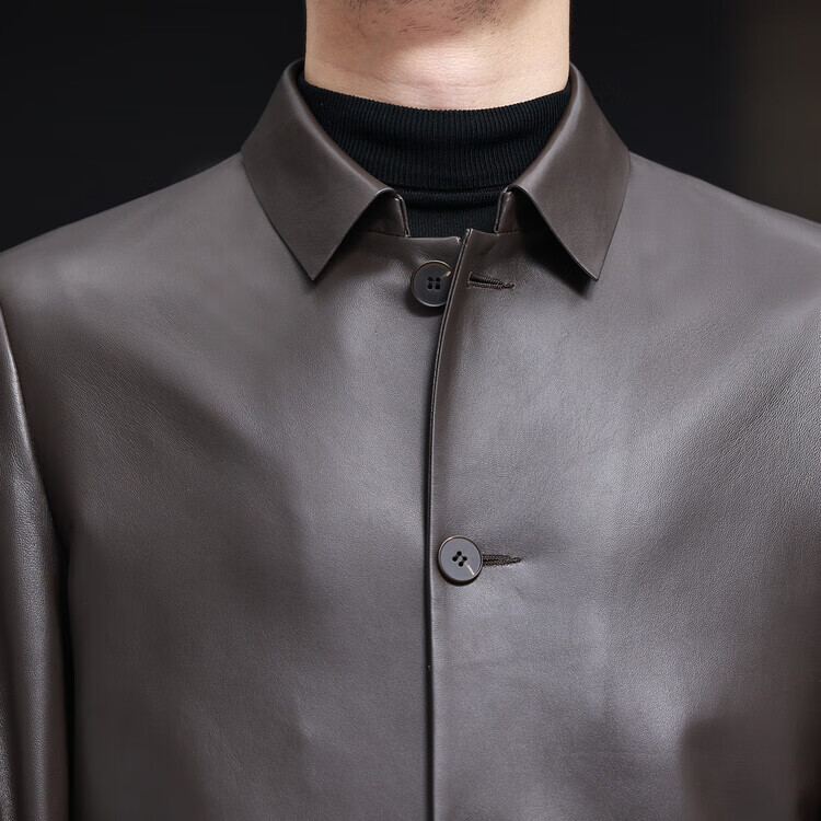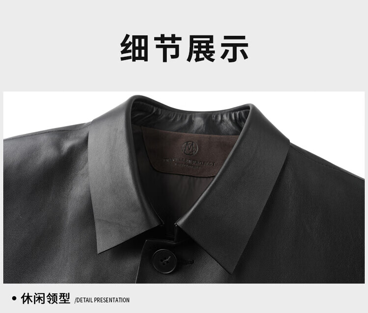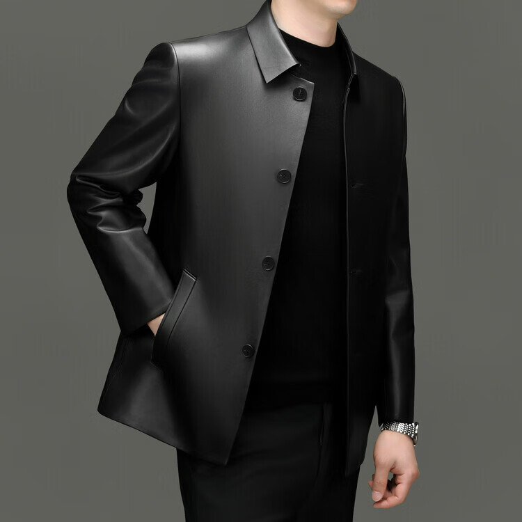 恒源祥春秋海宁真皮皮衣男皮夹克绵羊皮中长款外套薄款翻领风衣加绒加厚 黑色 XL 180