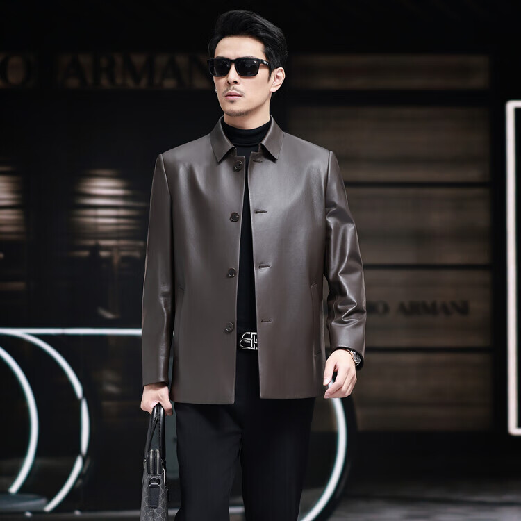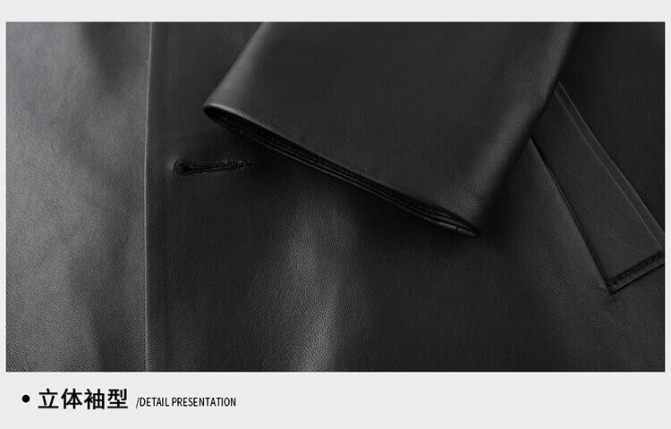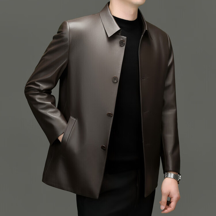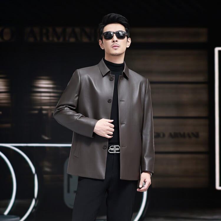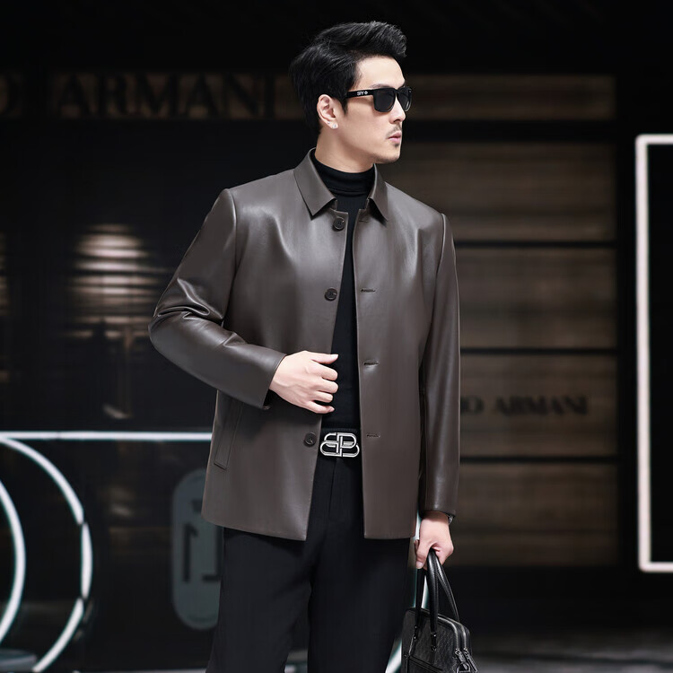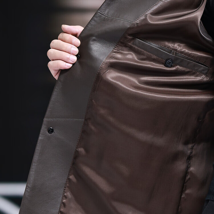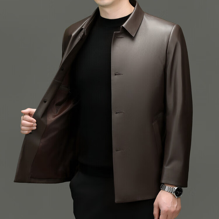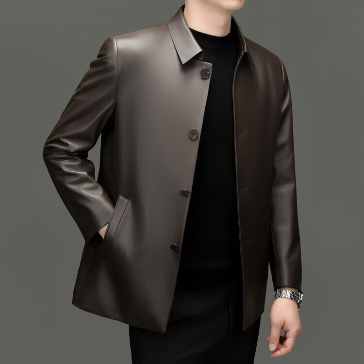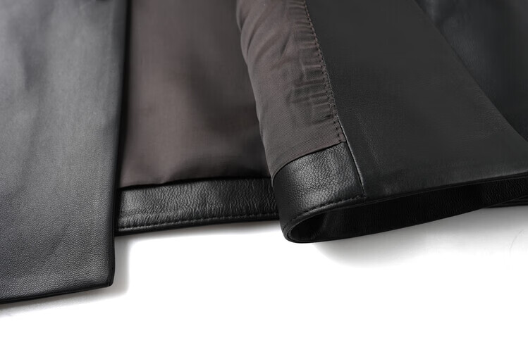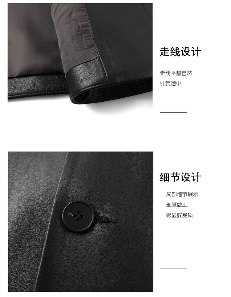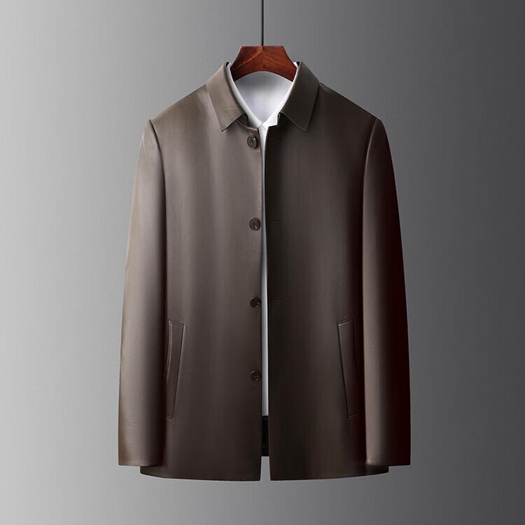 恒源祥春秋海宁真皮皮衣男皮夹克绵羊皮中长款外套薄款翻领风衣加绒加厚 黑色 XL 180