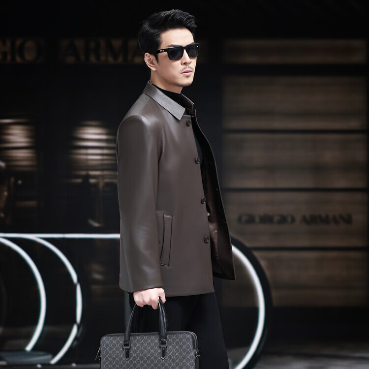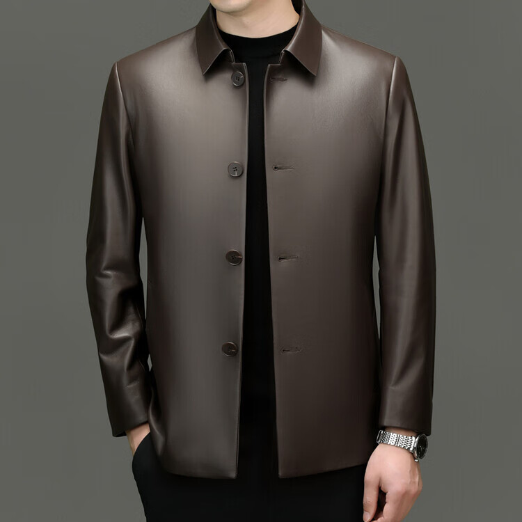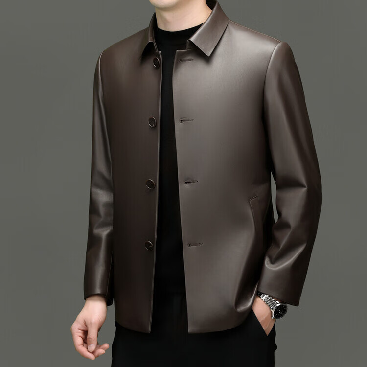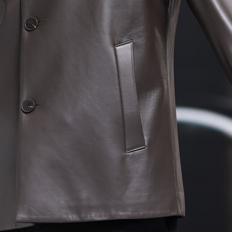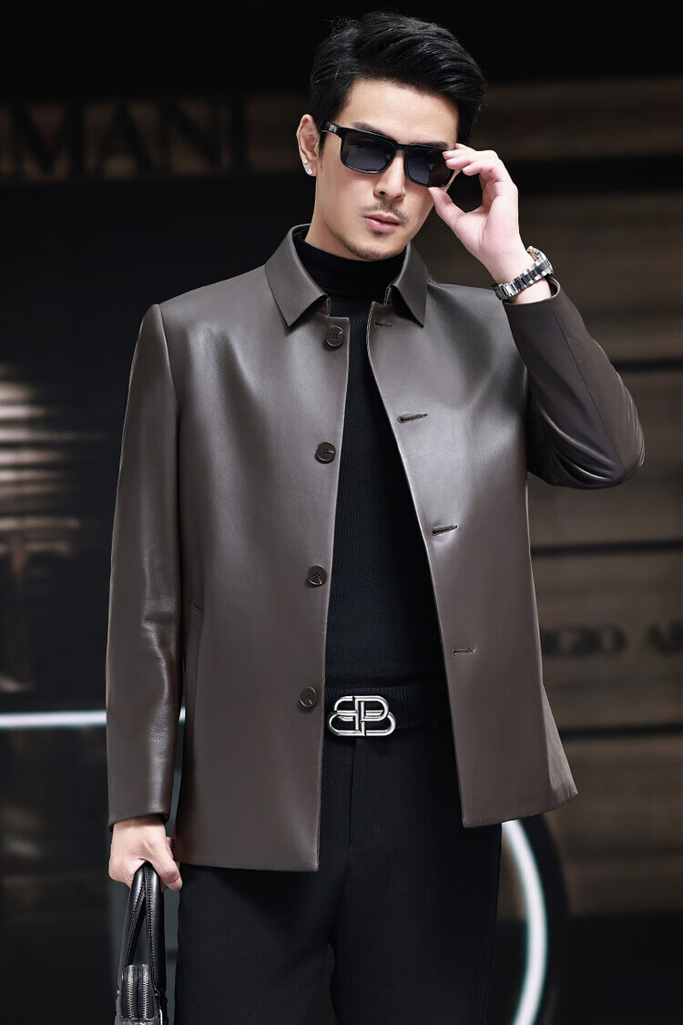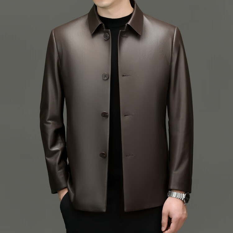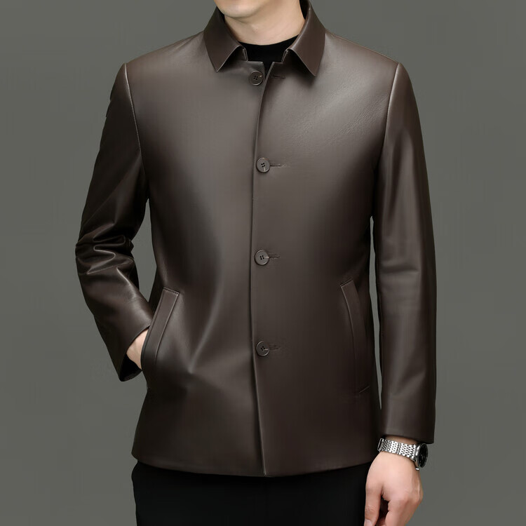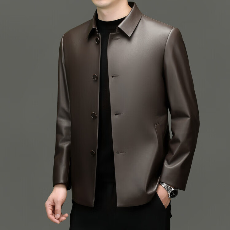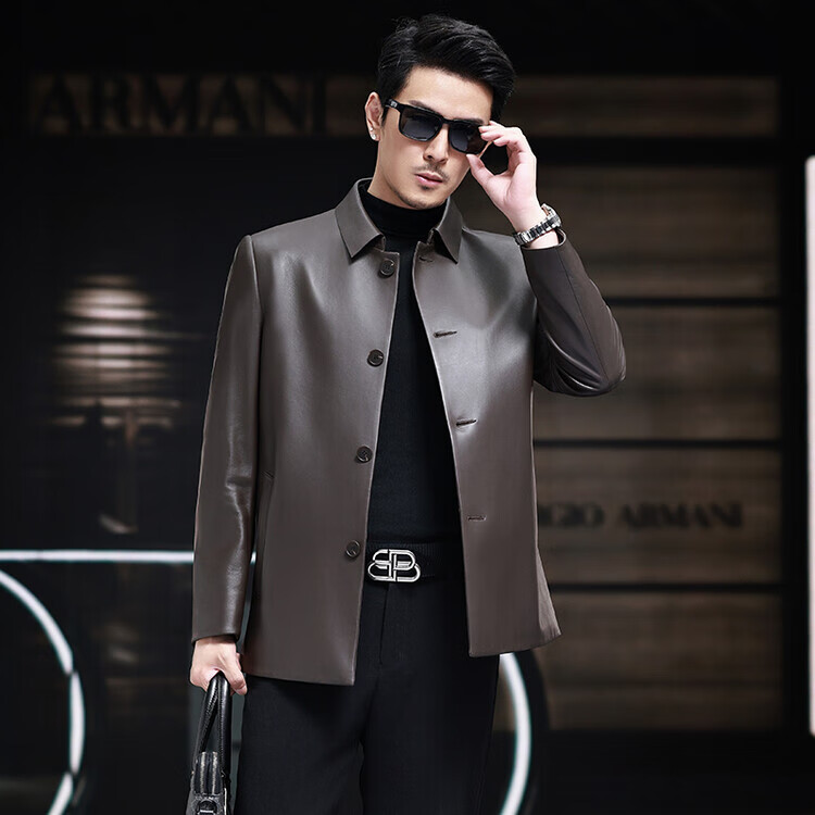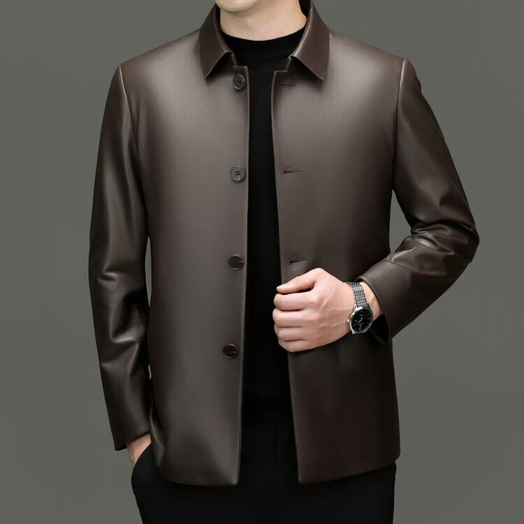恒源祥春秋海宁真皮皮衣男皮夹克绵羊皮中长款外套薄款翻领风衣加绒加厚 黑色 XL 180