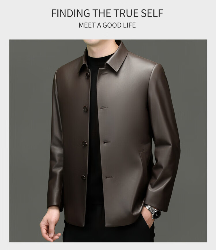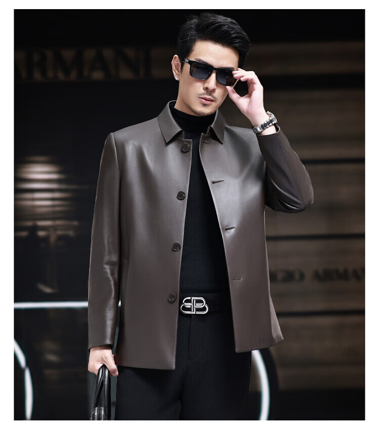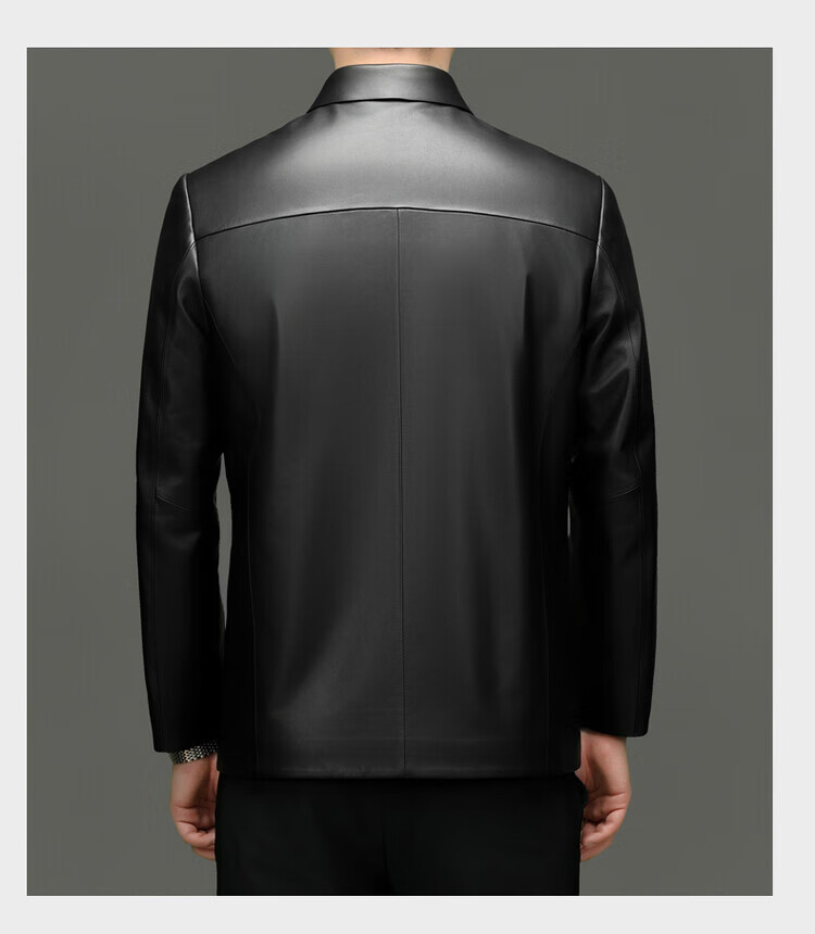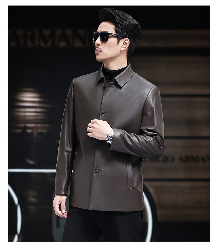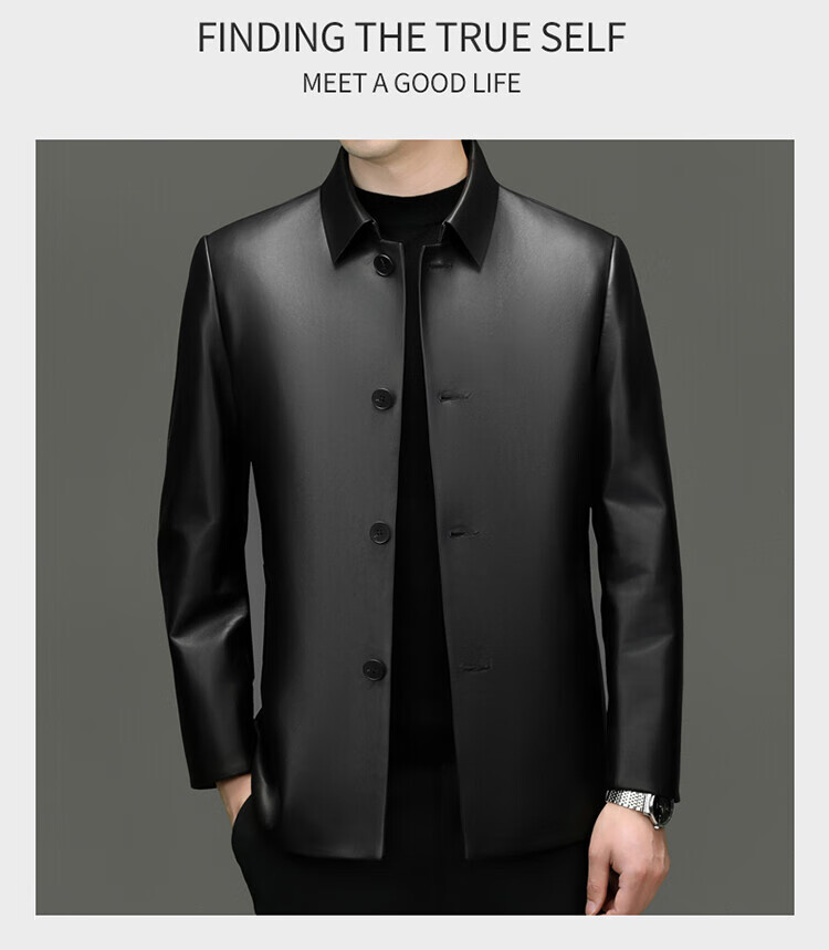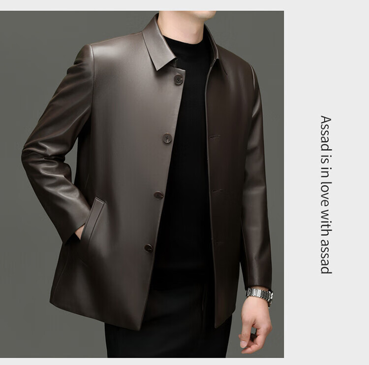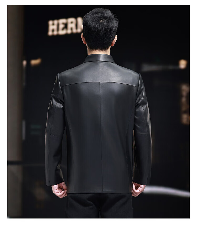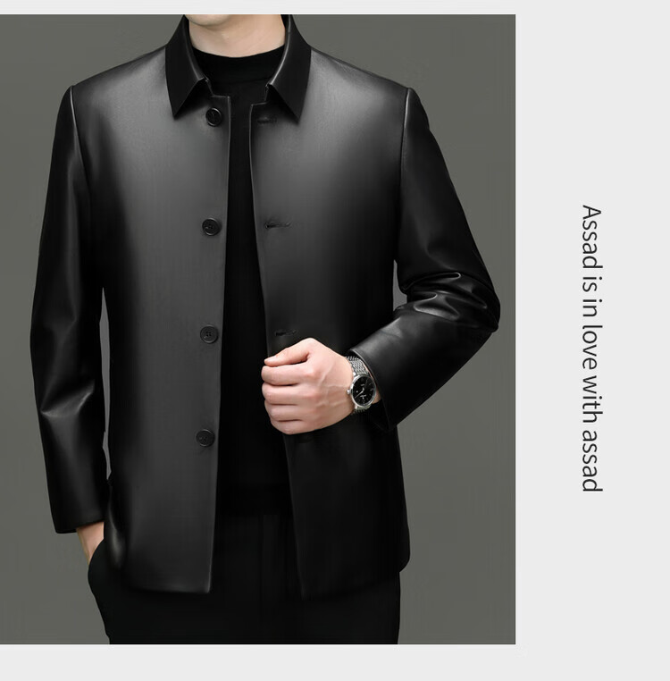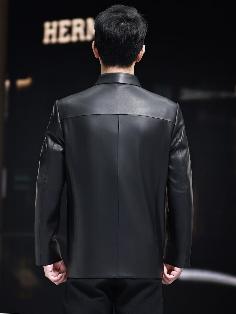 恒源祥春秋海宁真皮皮衣男皮夹克绵羊皮中长款外套薄款翻领风衣加绒加厚 黑色 XL 180