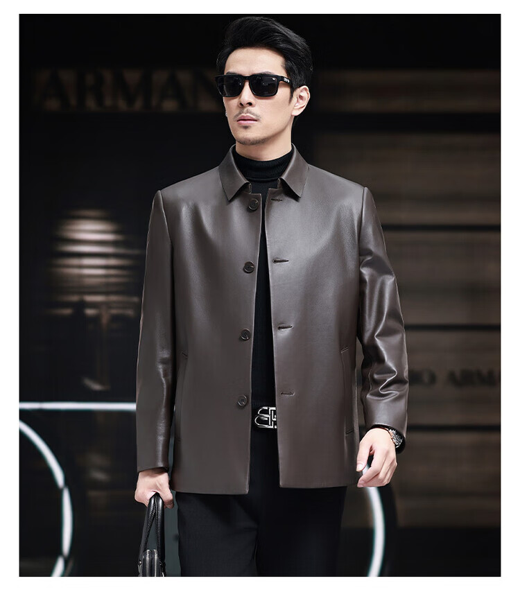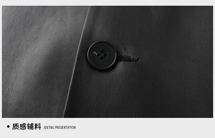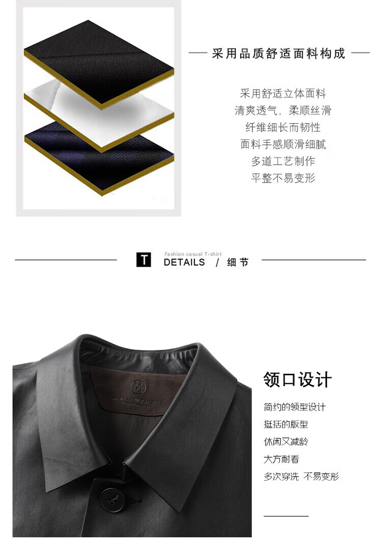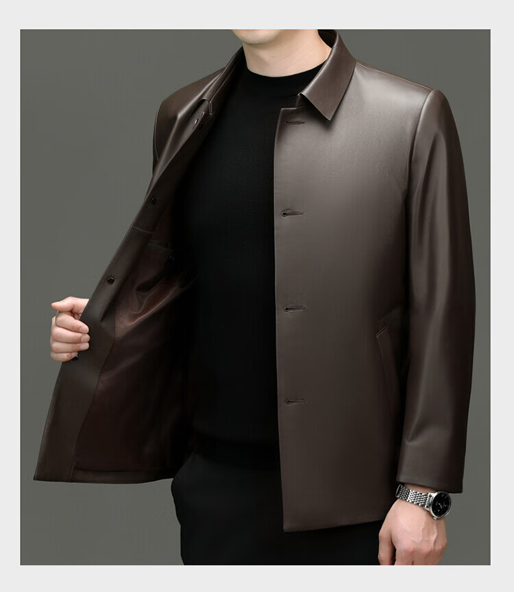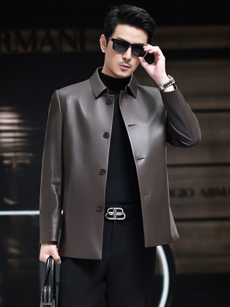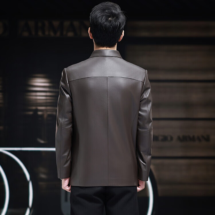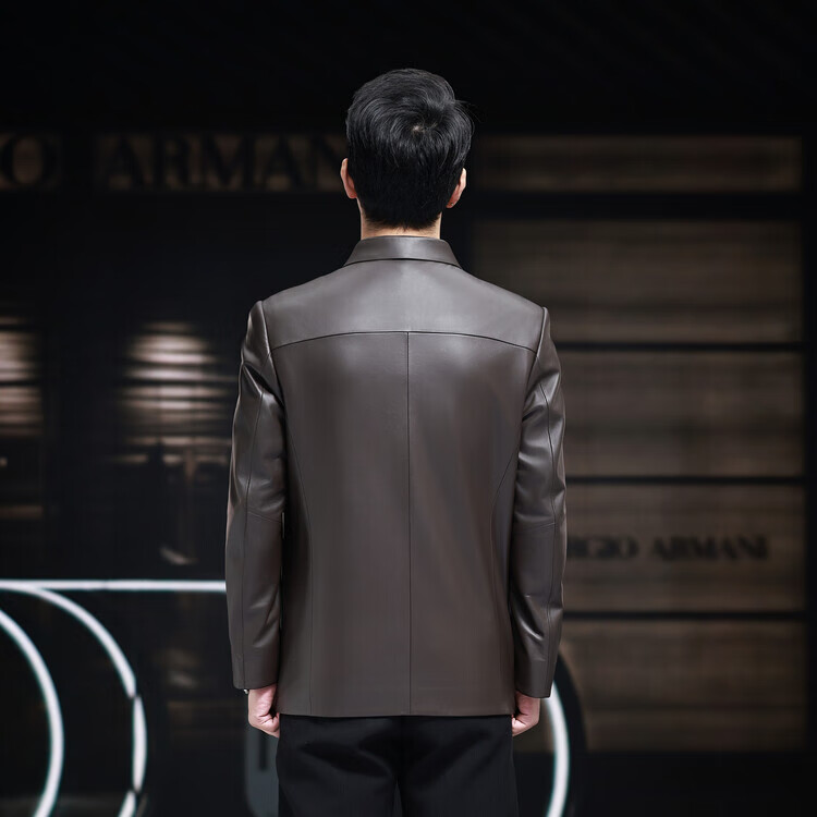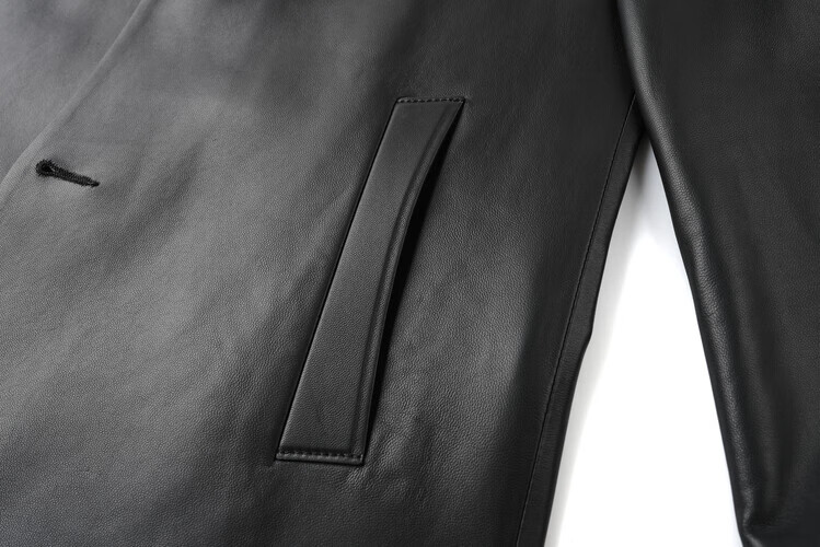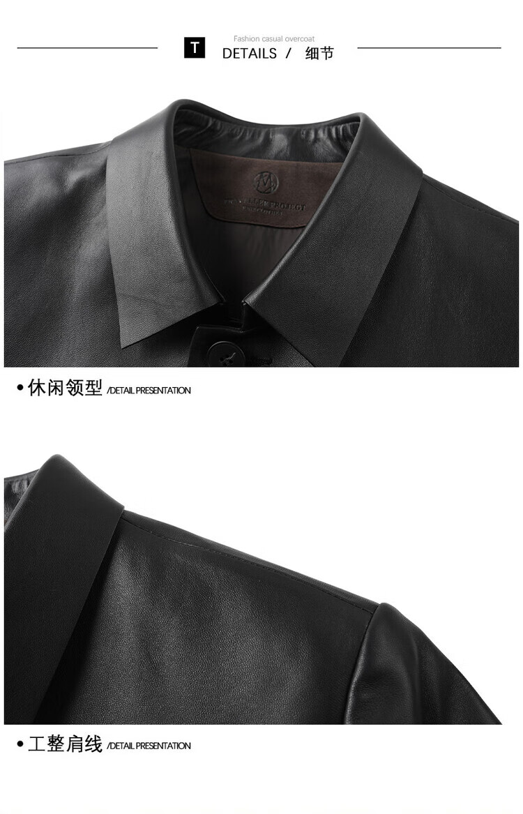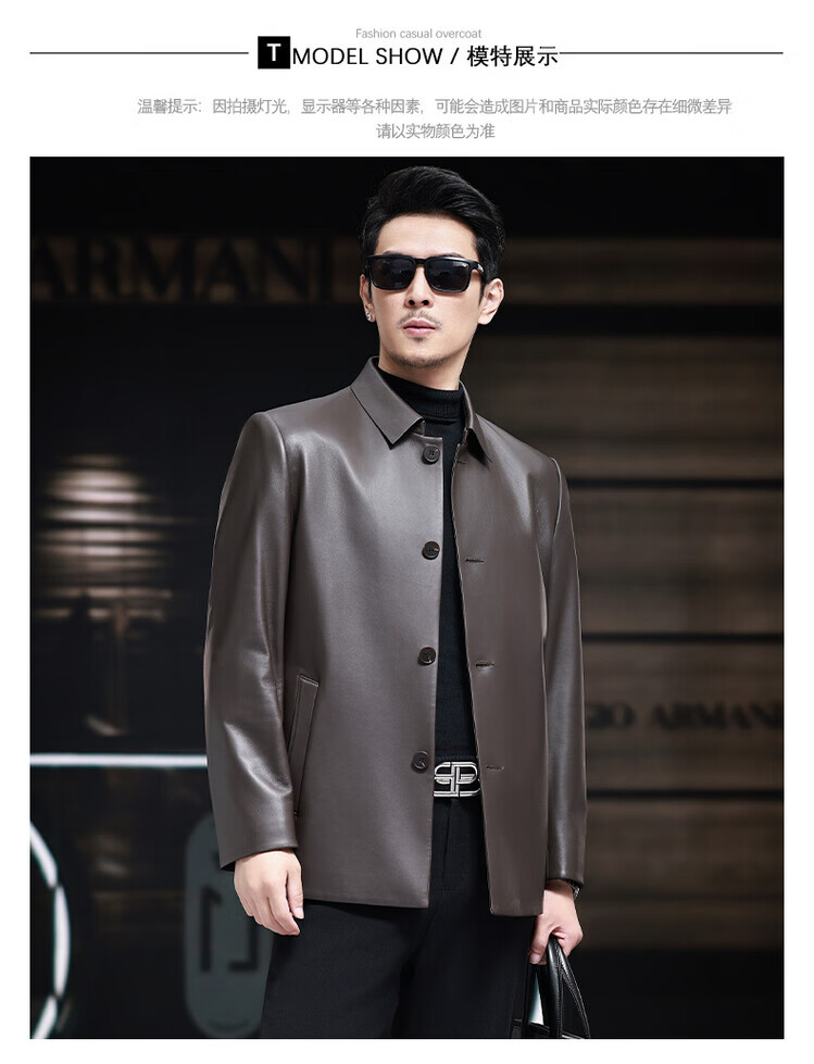 恒源祥春秋海宁真皮皮衣男皮夹克绵羊皮中长款外套薄款翻领风衣加绒加厚 黑色 XL 180